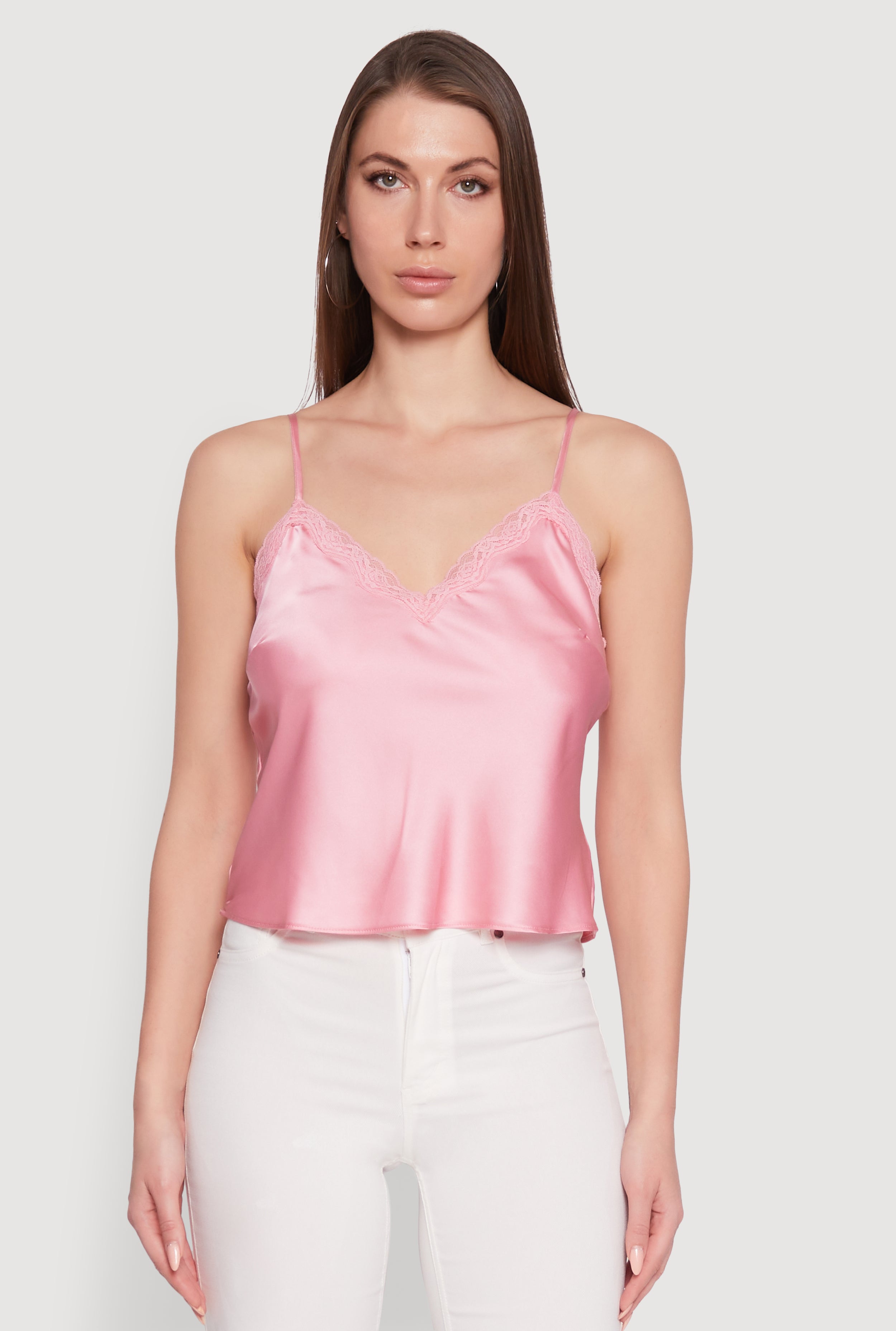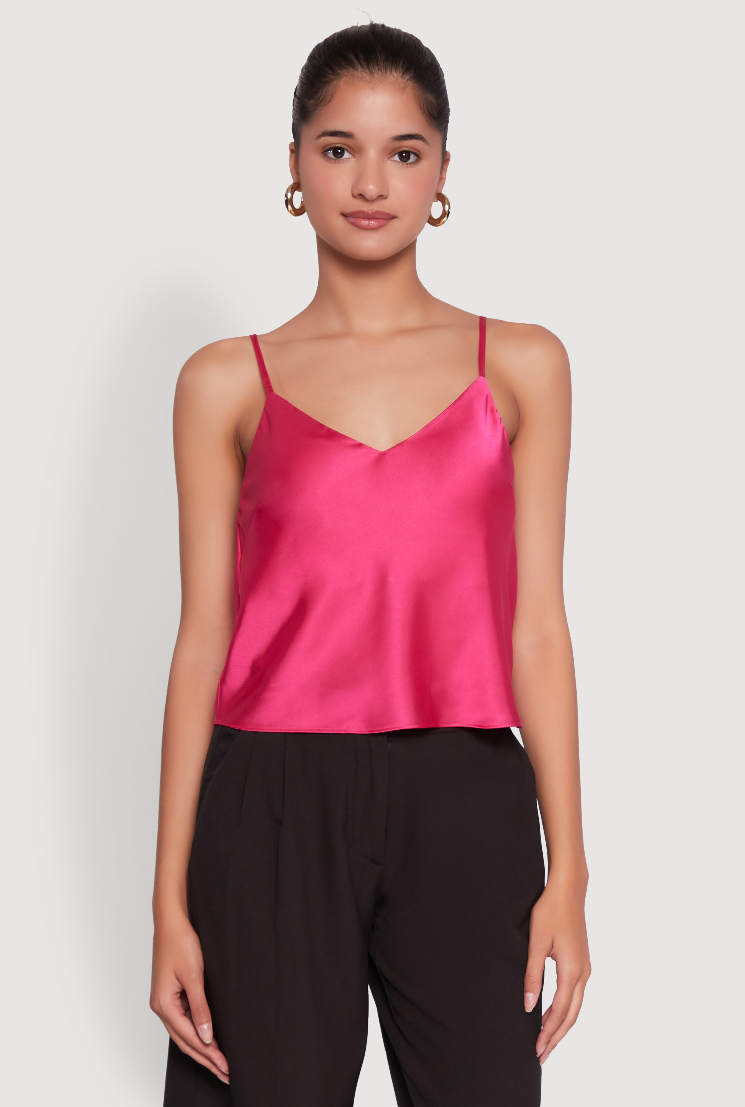 Satin V-Neck Cropped Cami with Adjustable Straps