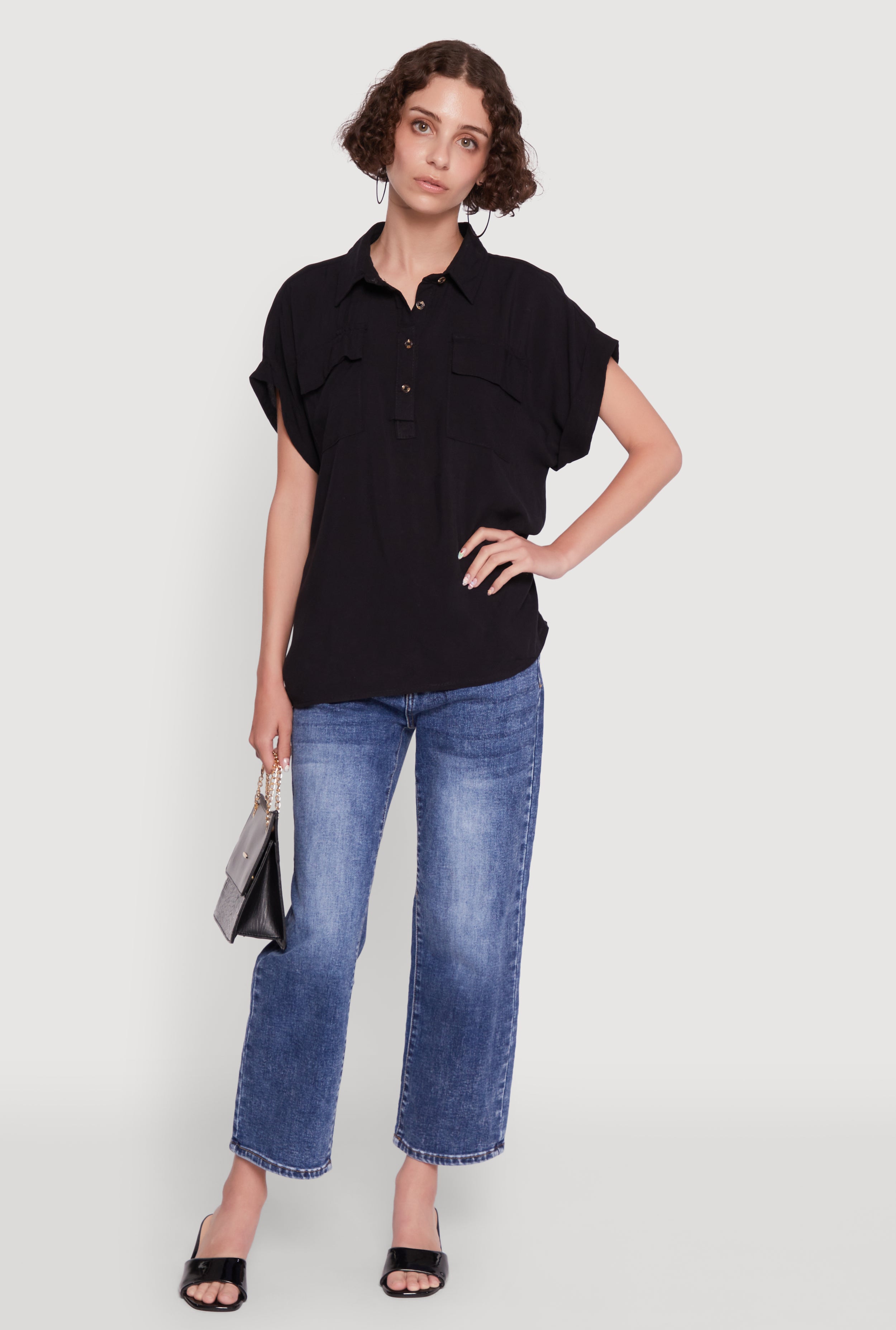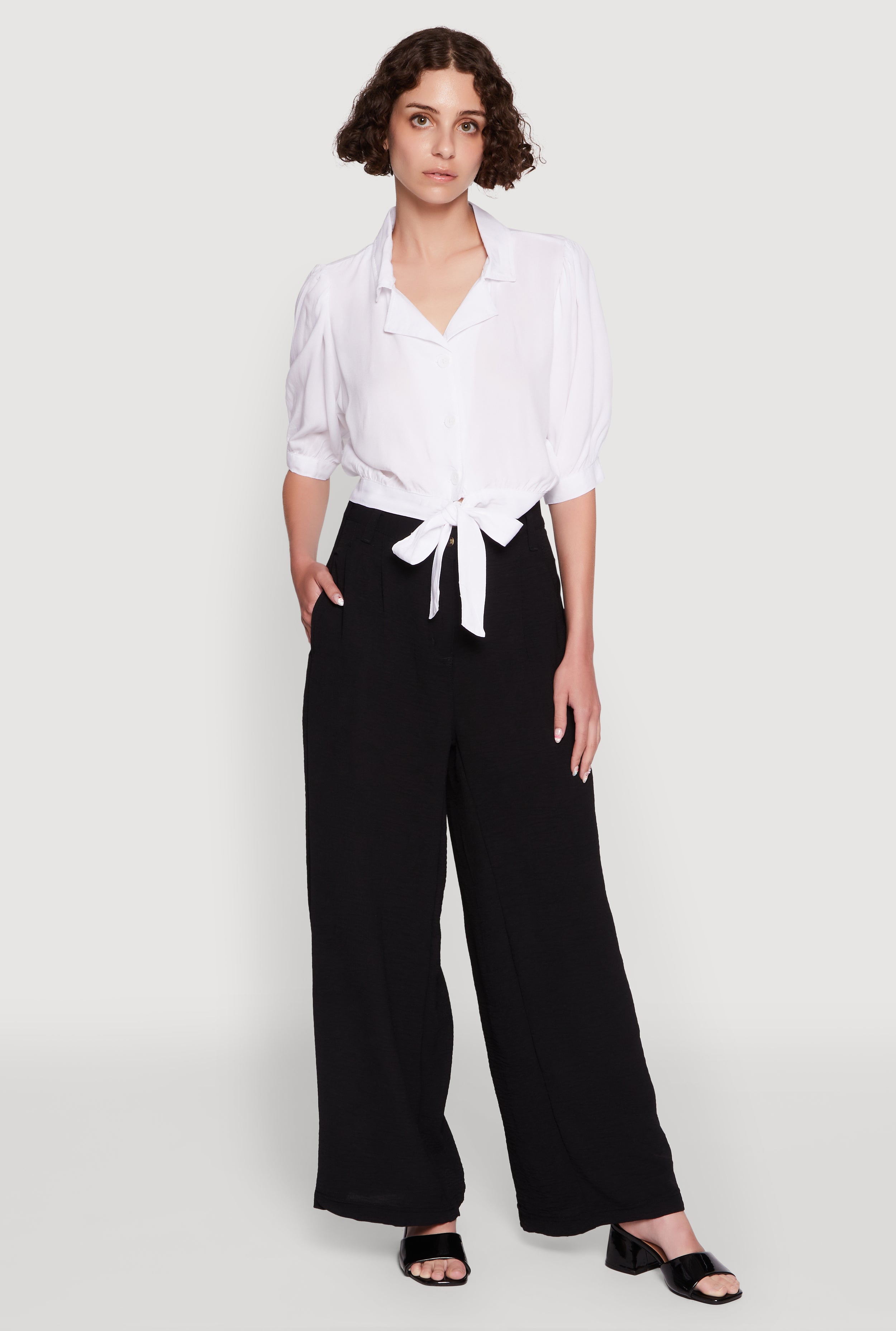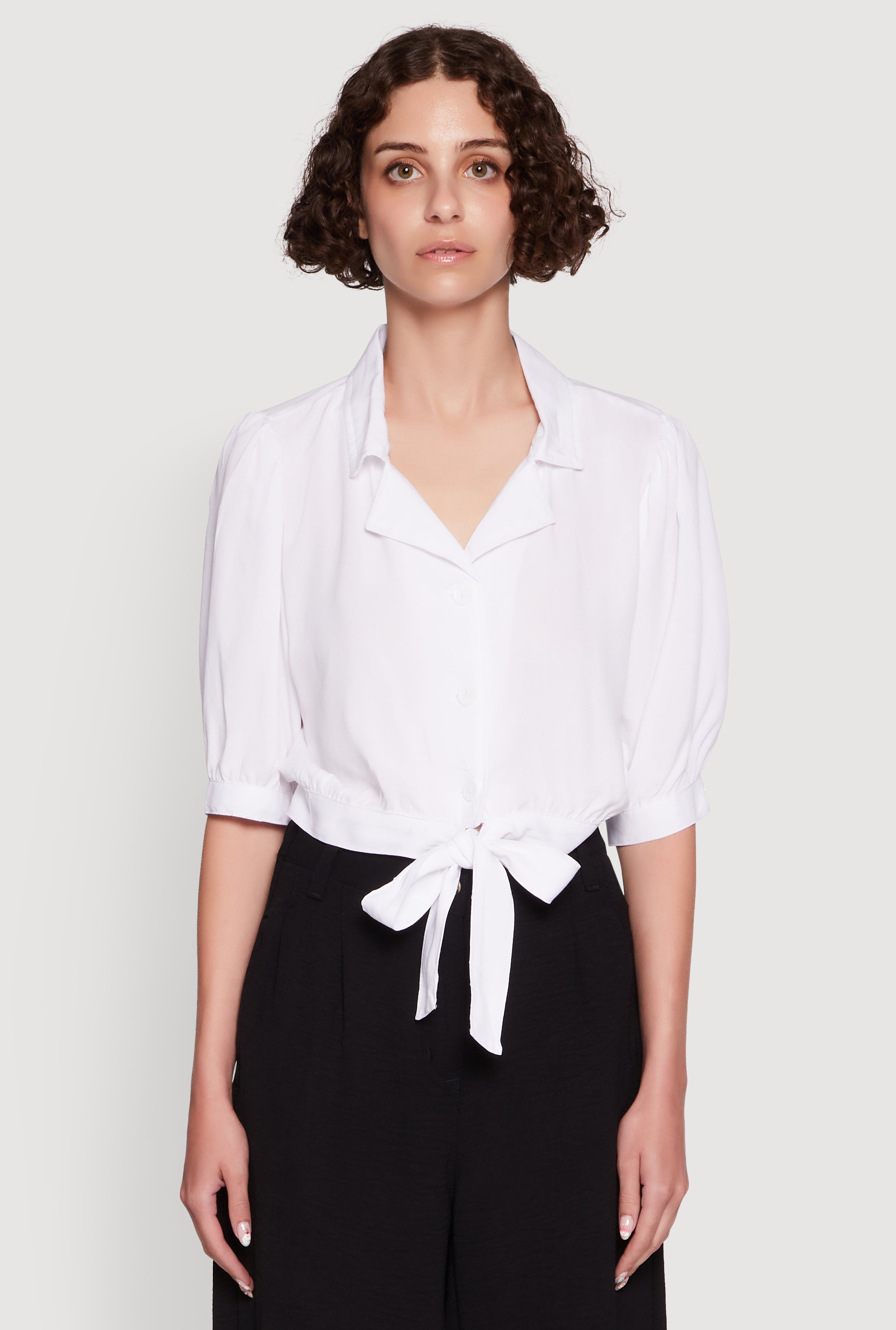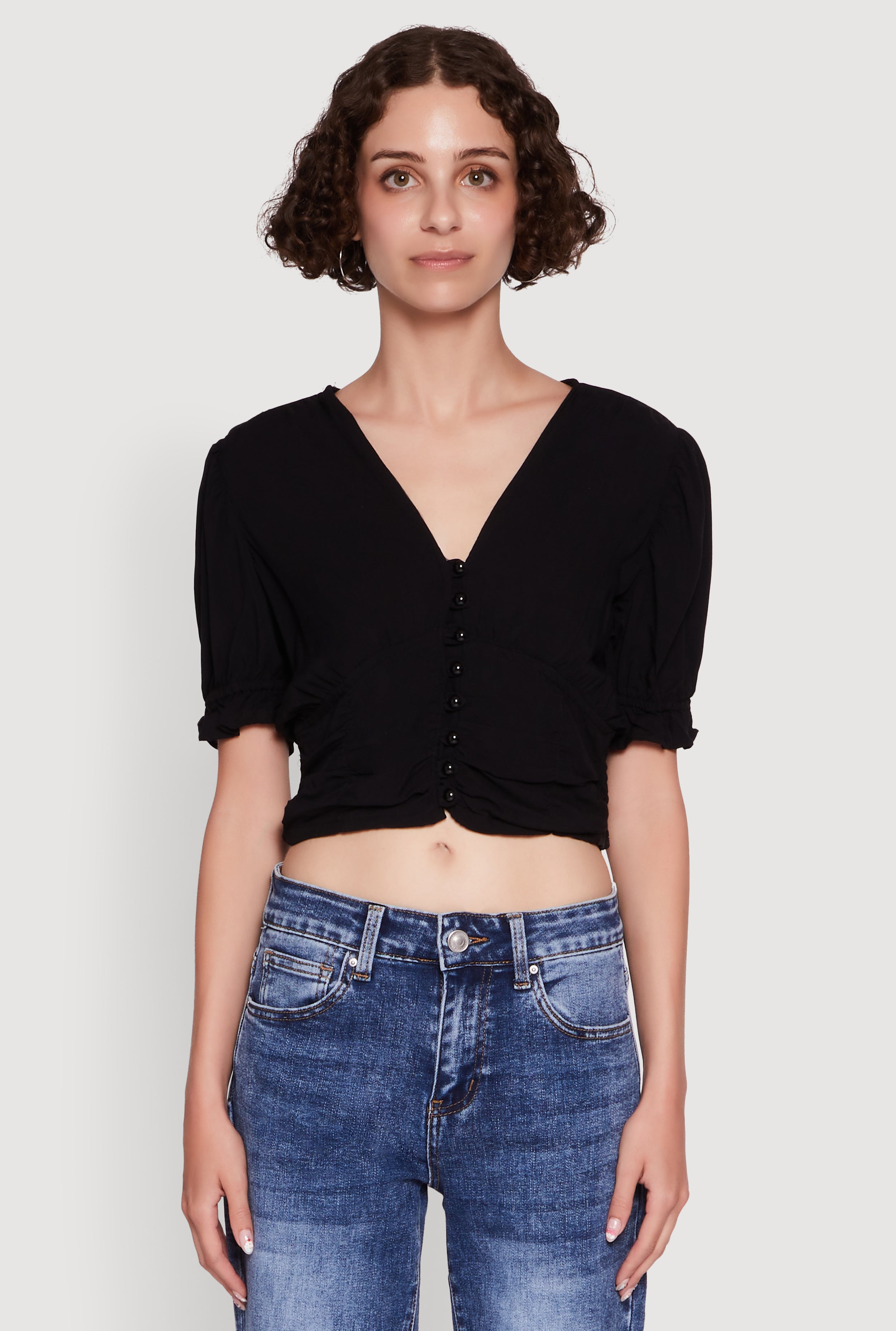 Trendy Puff Sleeve Button Front Peasant Crop Top