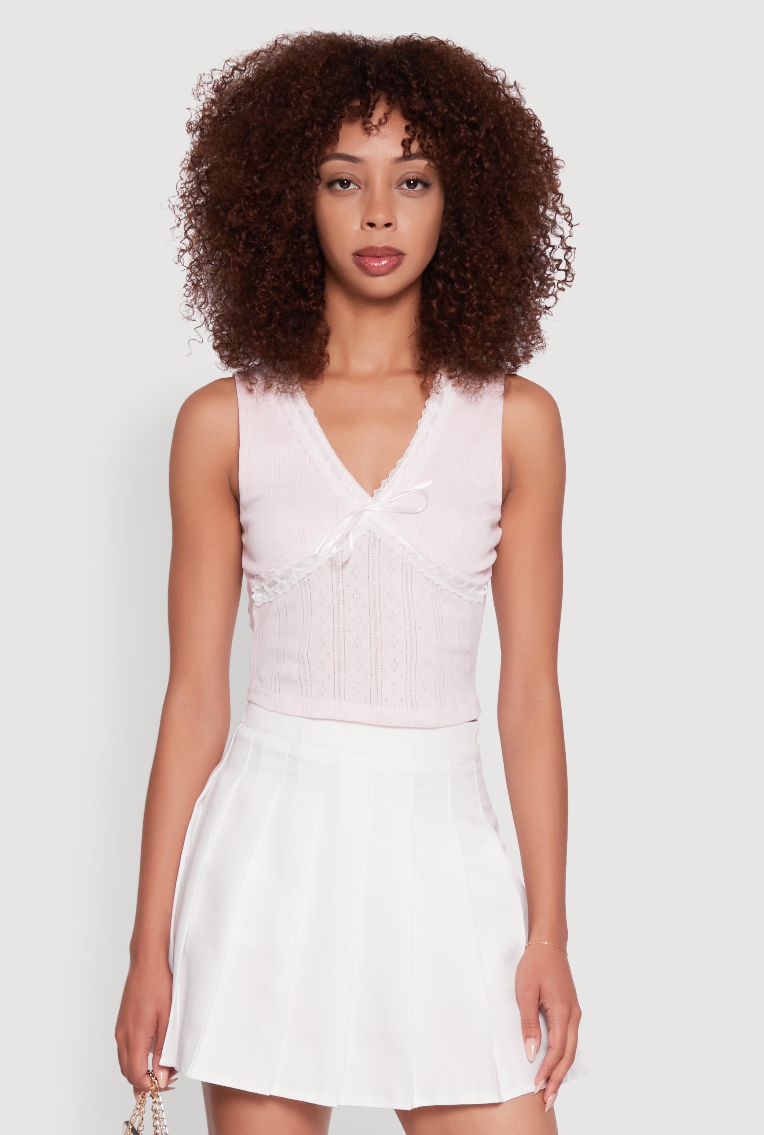 Blashe Ribbon Lace Trim V-Neck Tank Top