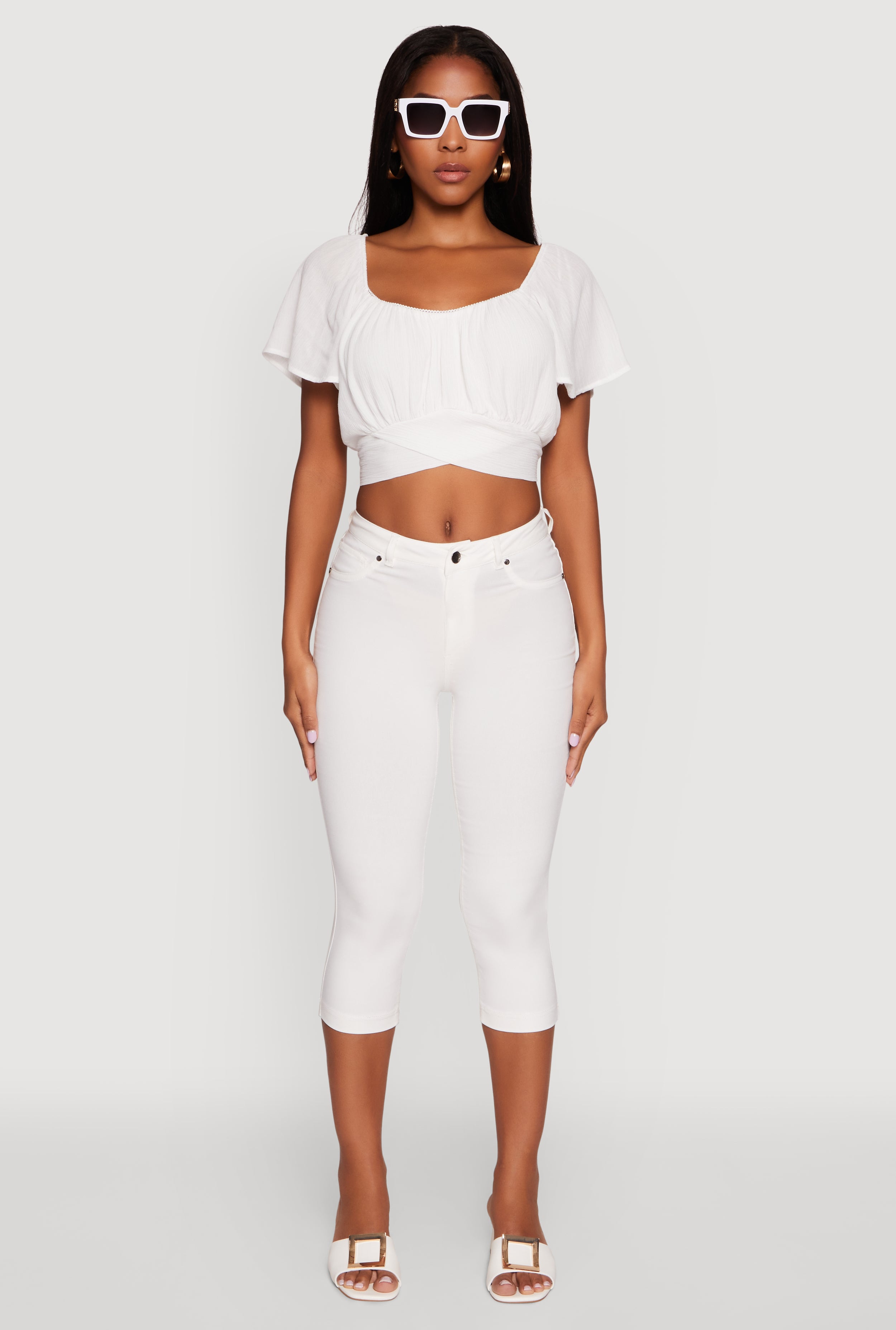 Classic Fit Scoop Neck Flutter Sleeve Crop Top