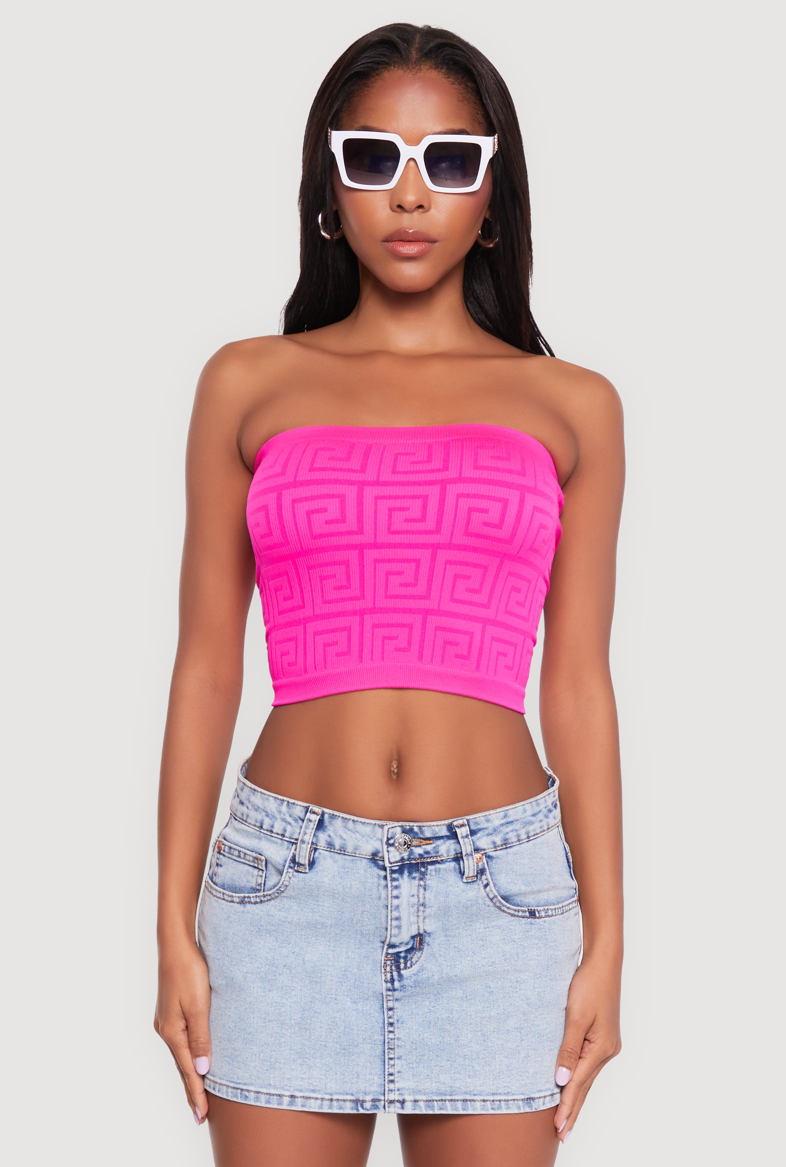 Trendy Greek Key Rib Knit Cropped Tube Top