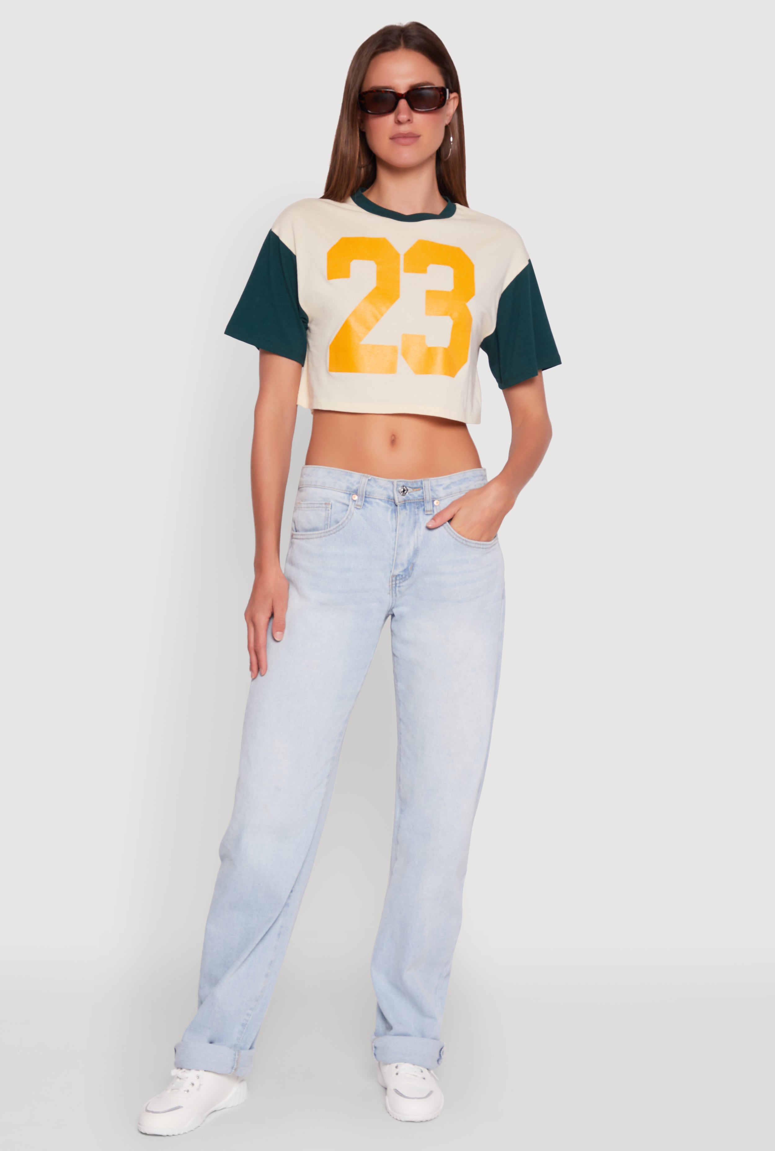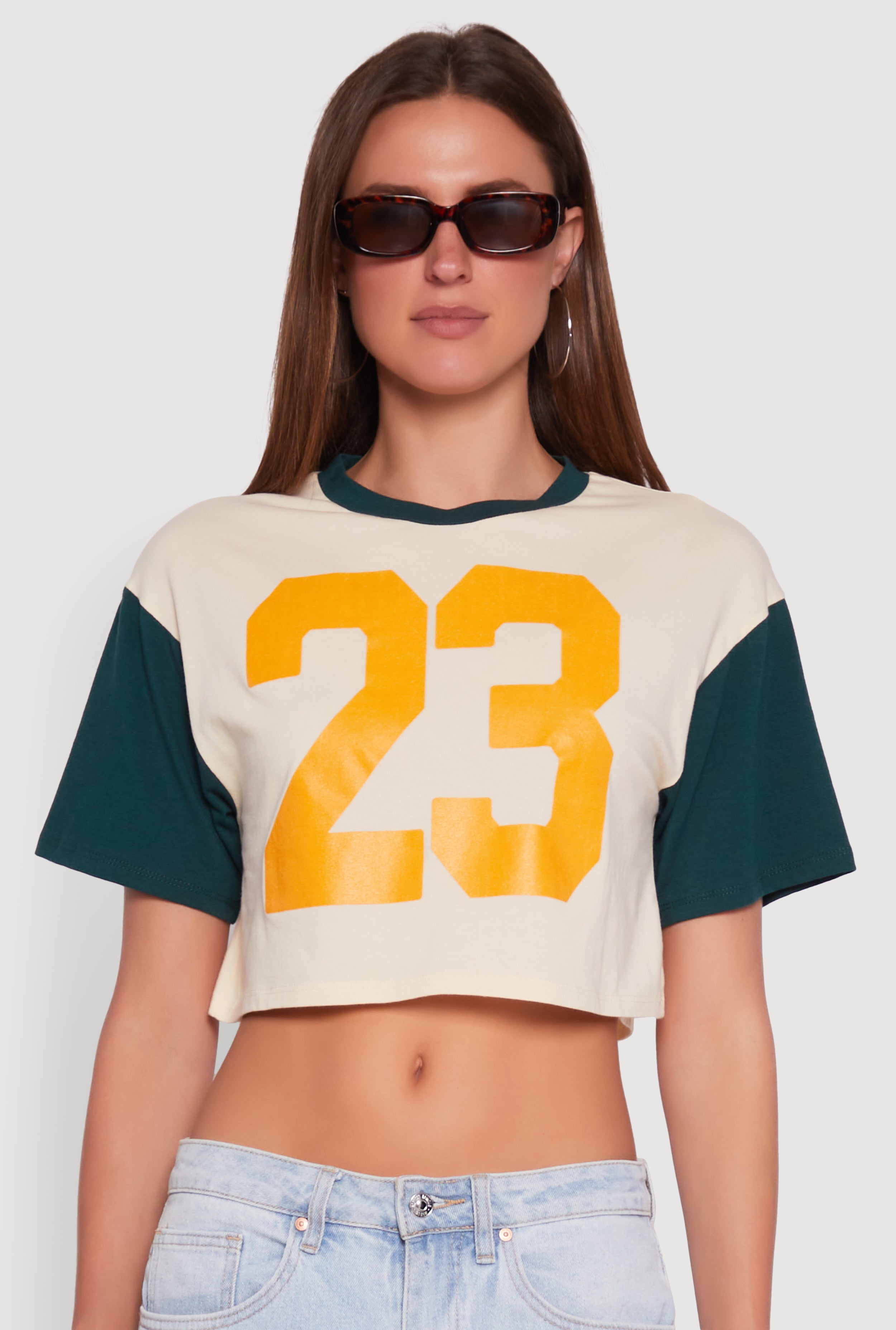 Trendy 23 Graphic Crew Neck Cropped Baseball Tee