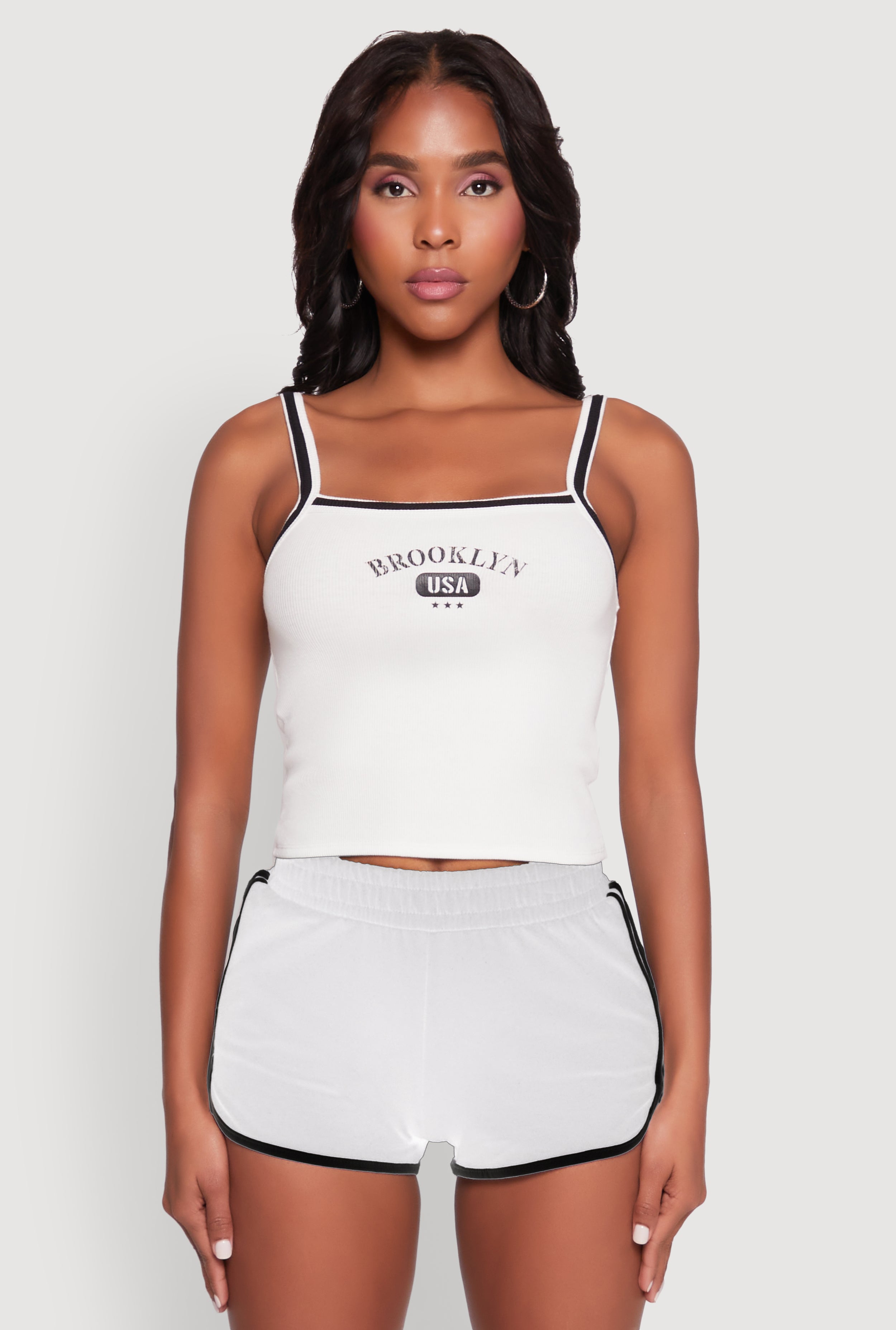 Almost Famous Contrast Trim Graphic Print Crop Cami