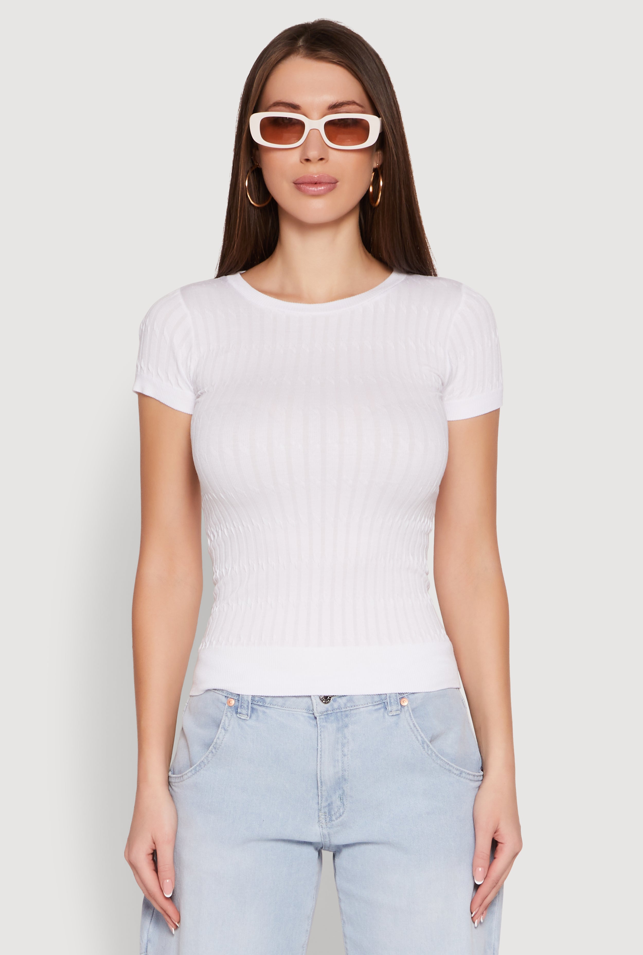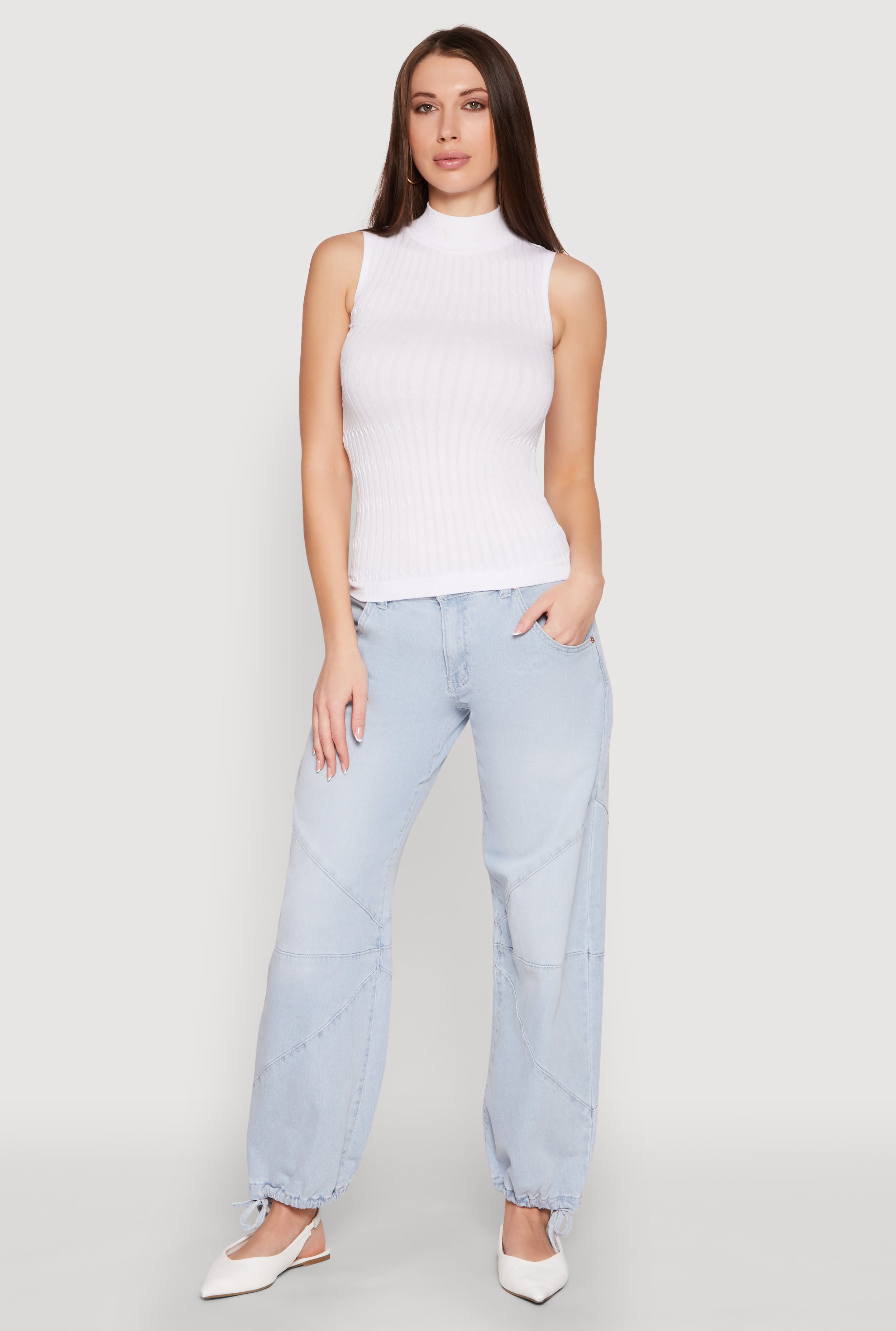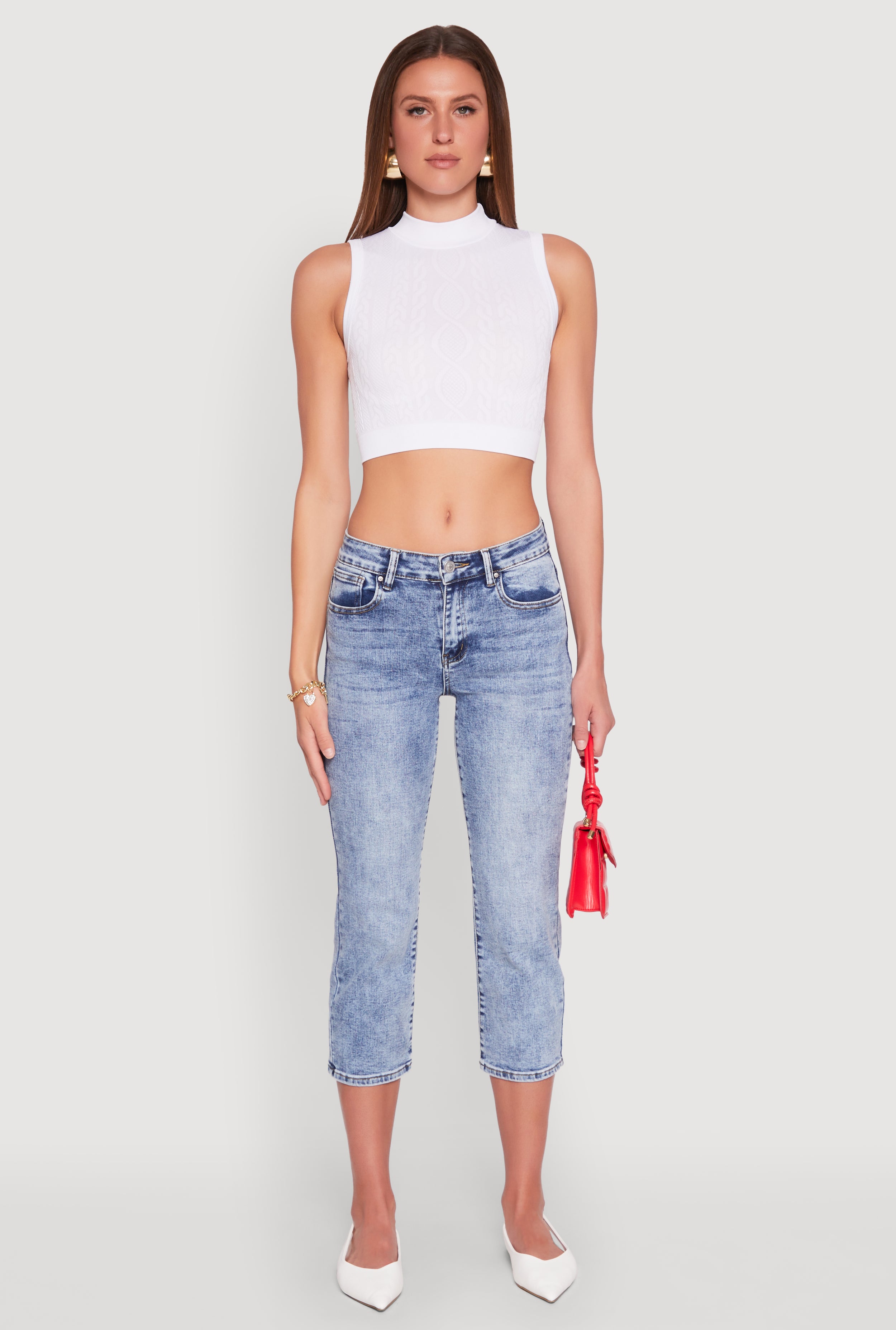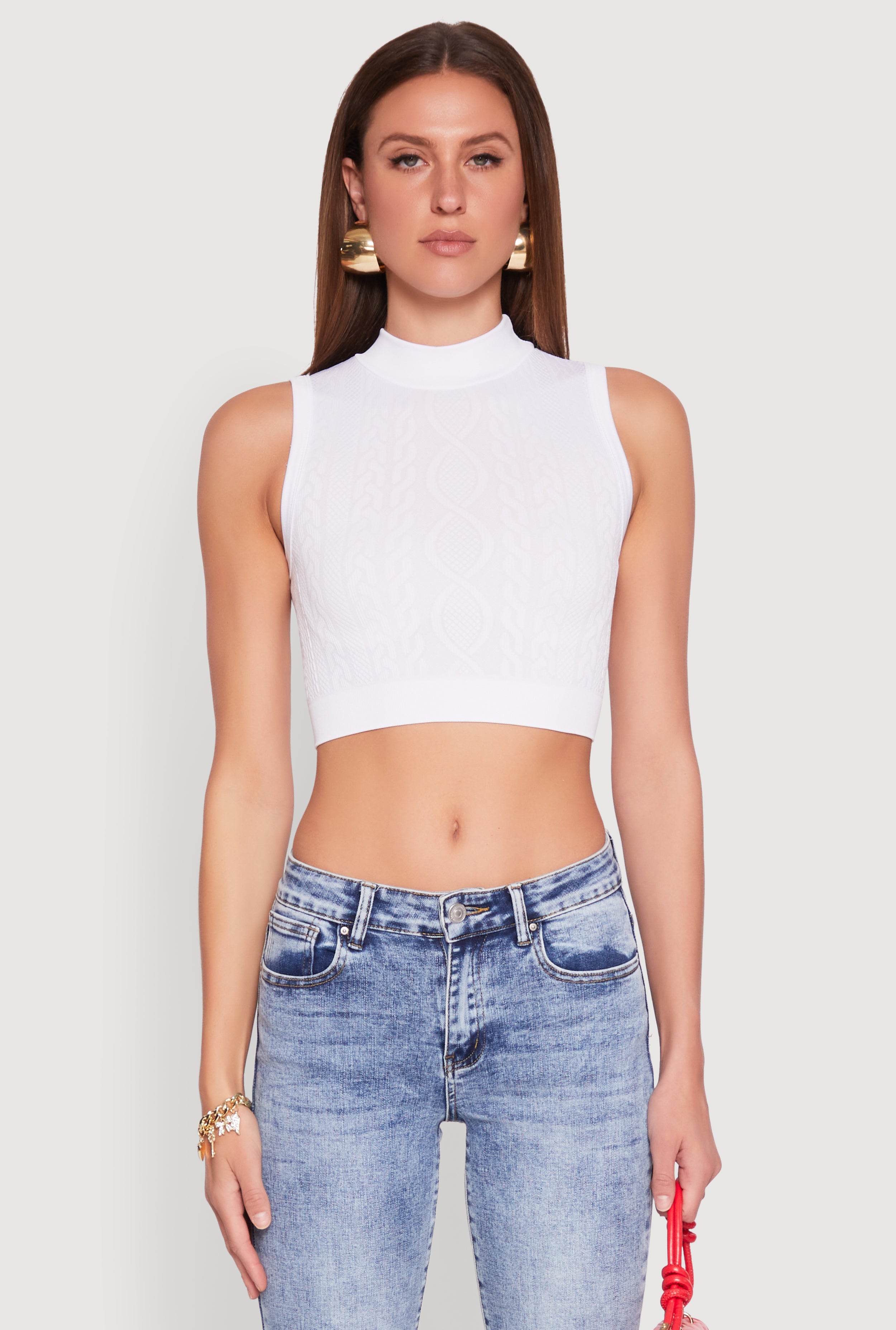 Seamless Cable Knit Mock Neck Cropped Tank Top