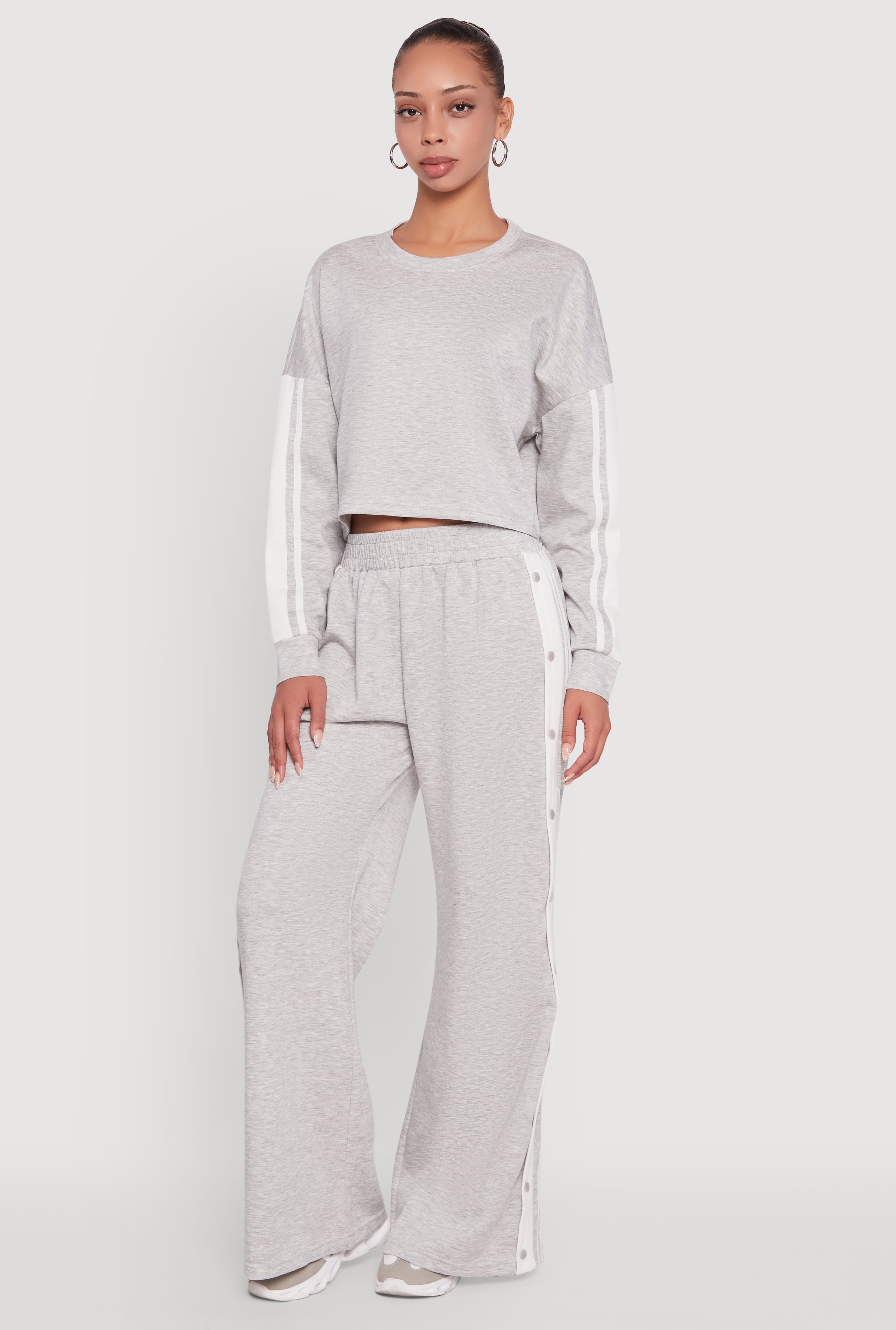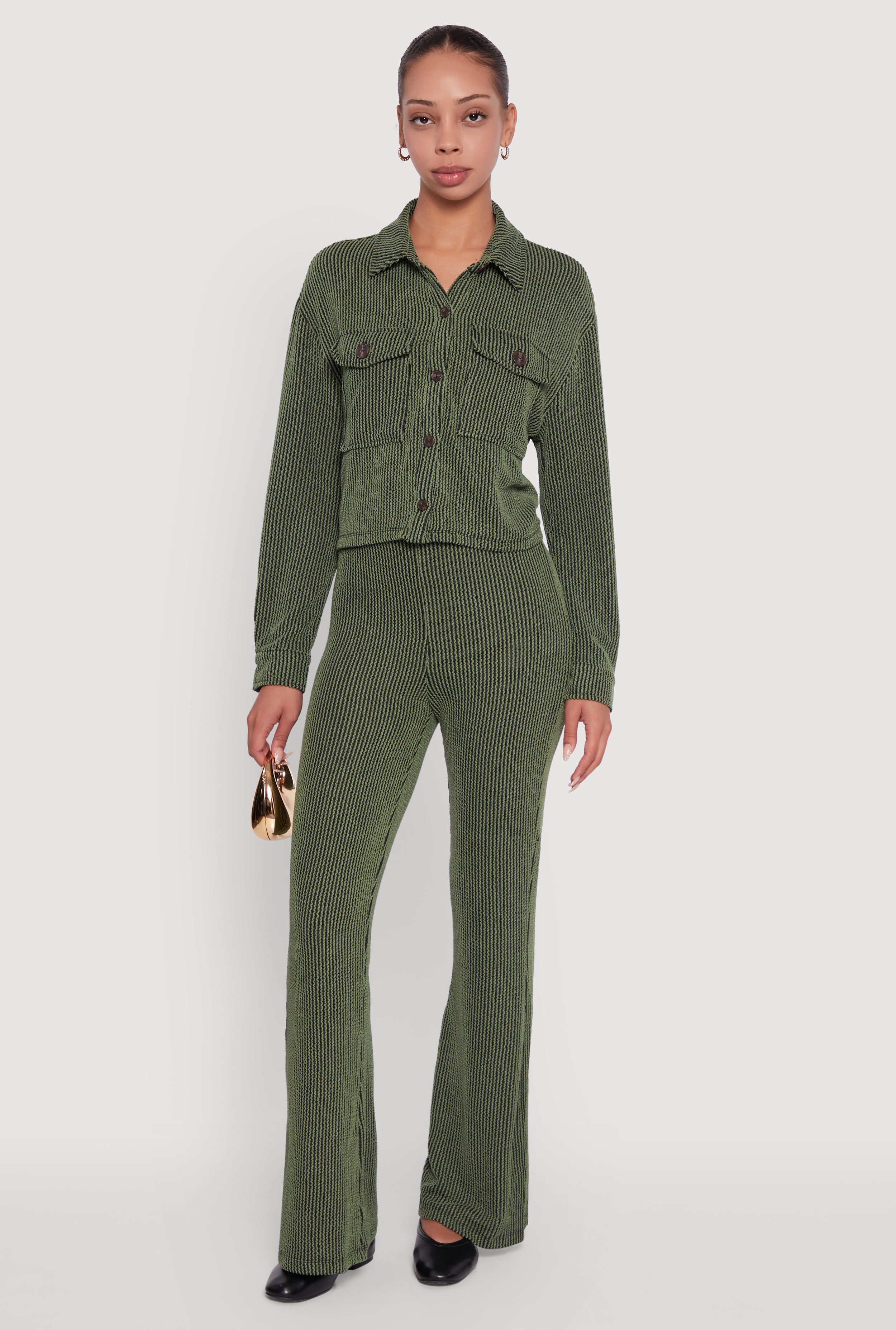 Rib Knit Shadow Stripe Button Front Cropped Shirt