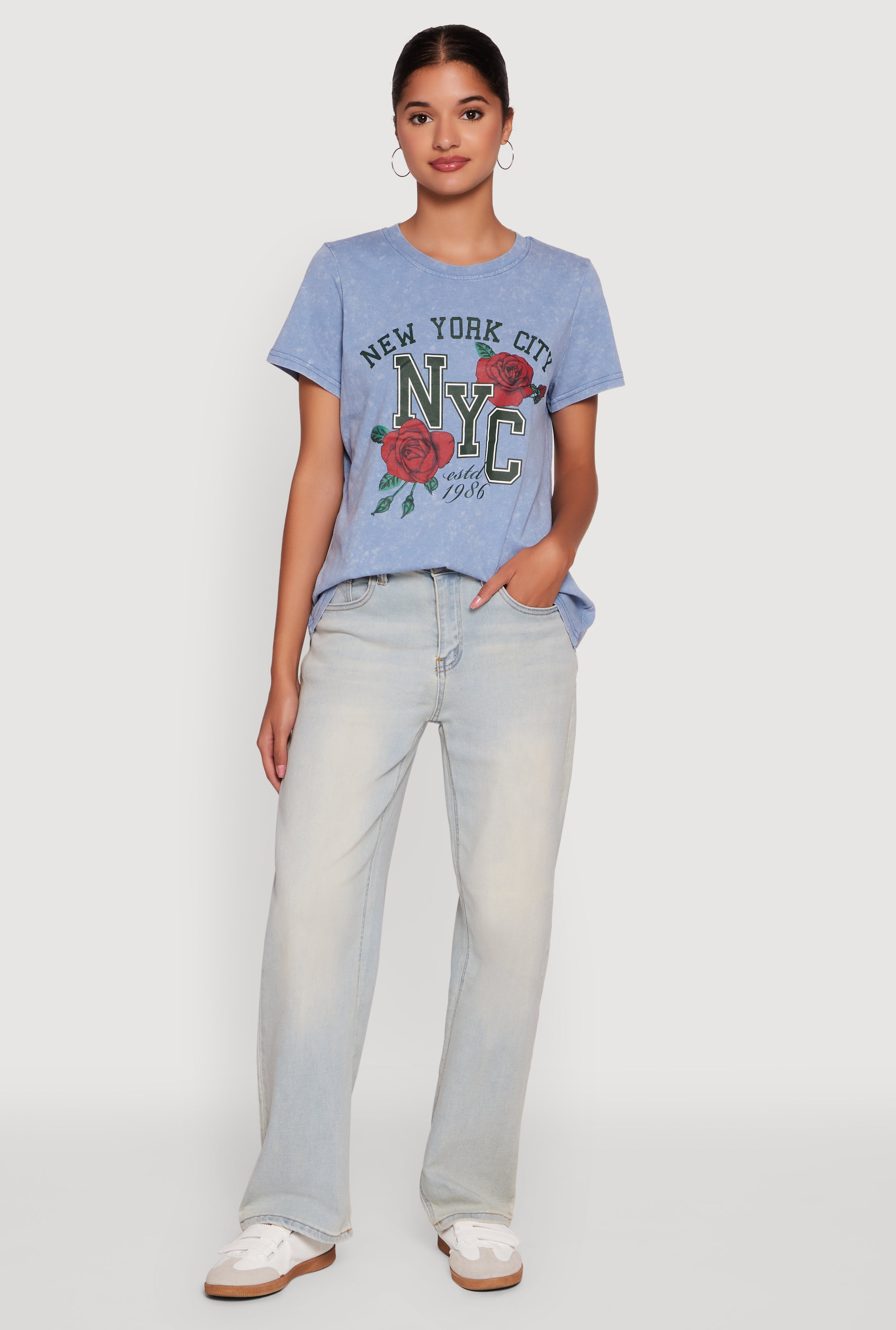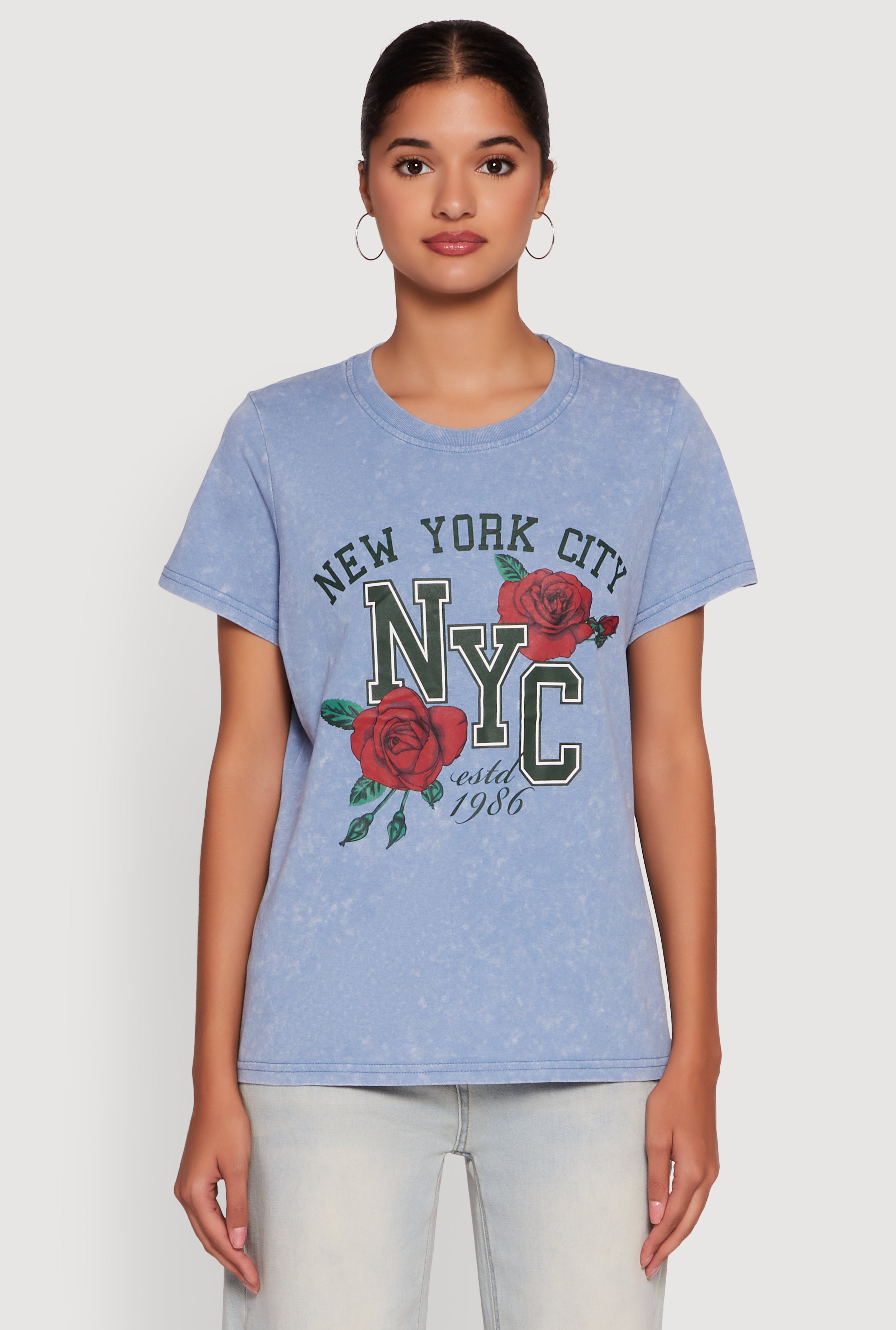 NYC Graphic Rose Print Acid Wash Classic Tee
