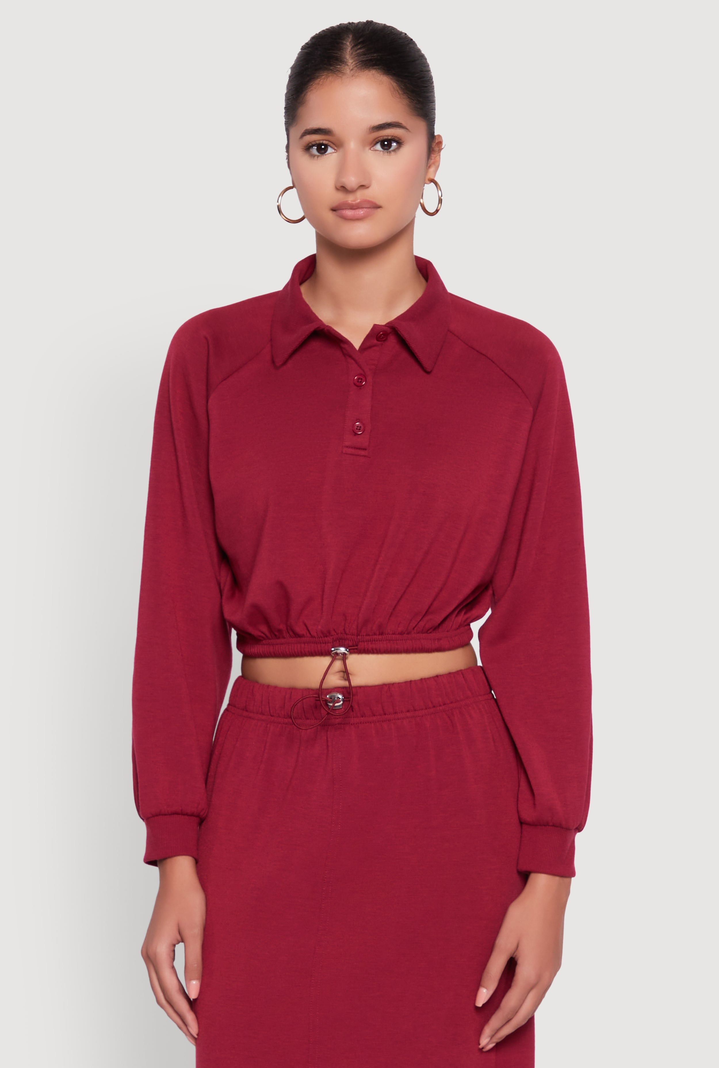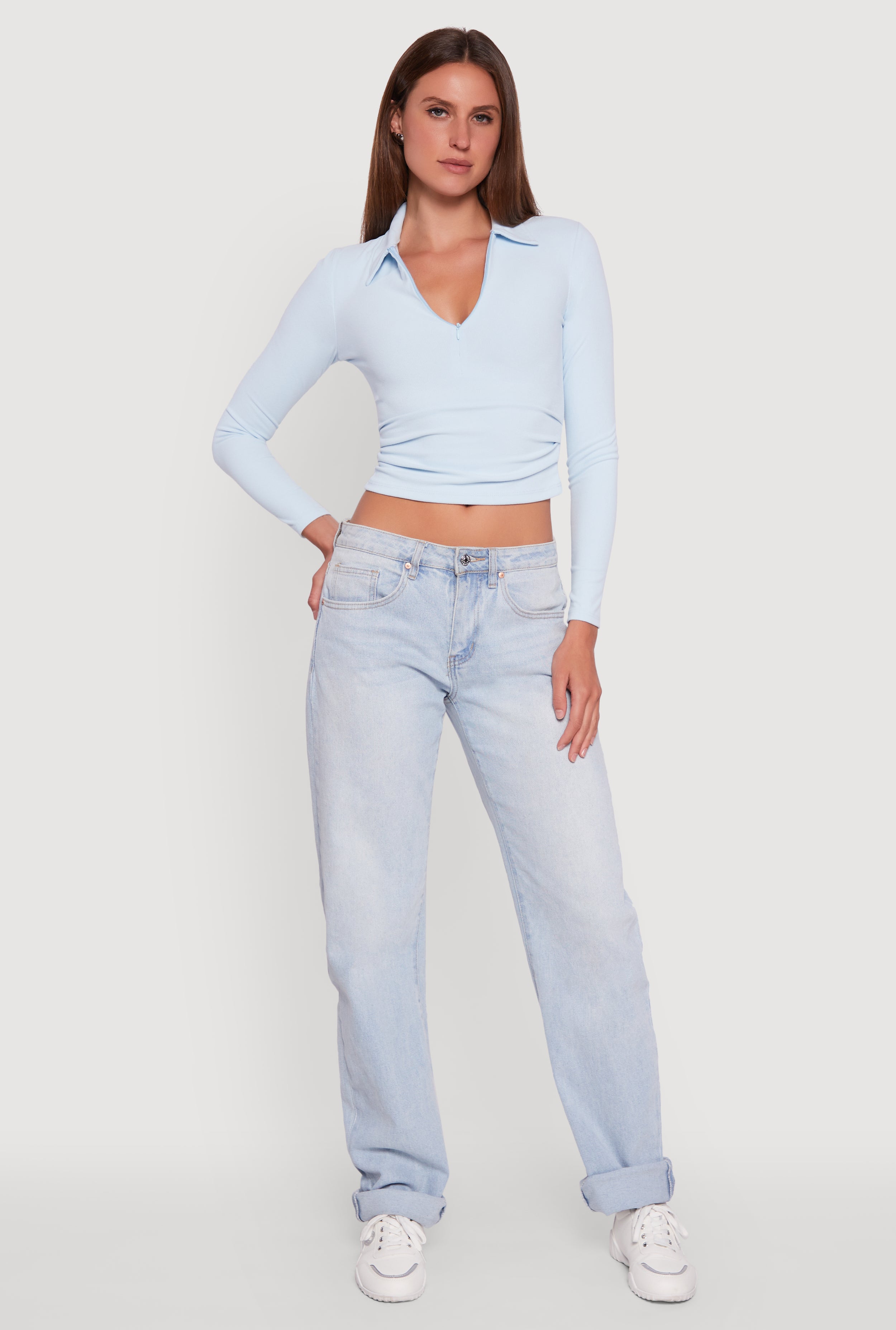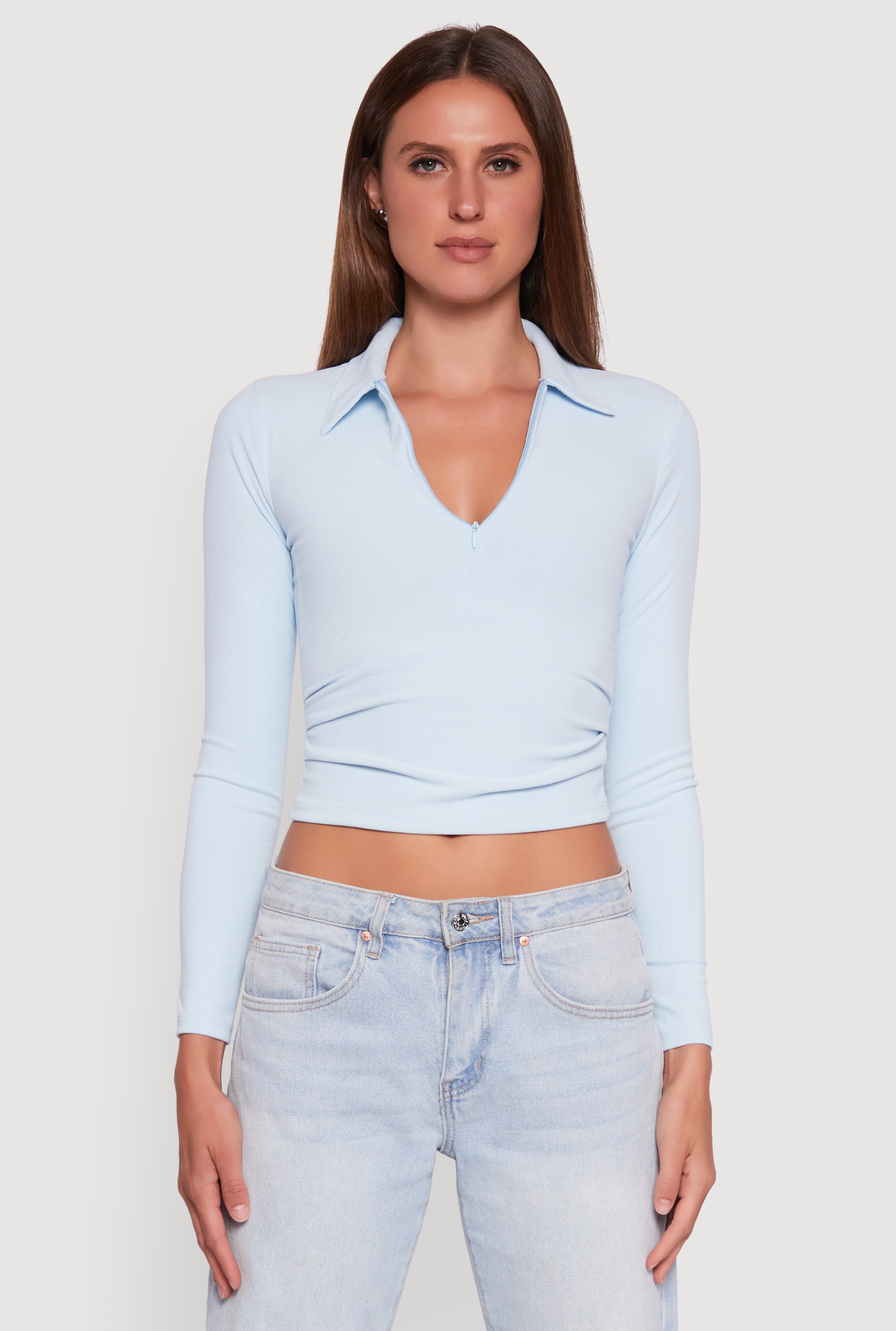 Long Sleeve Half Zip Cropped Polo Shirt