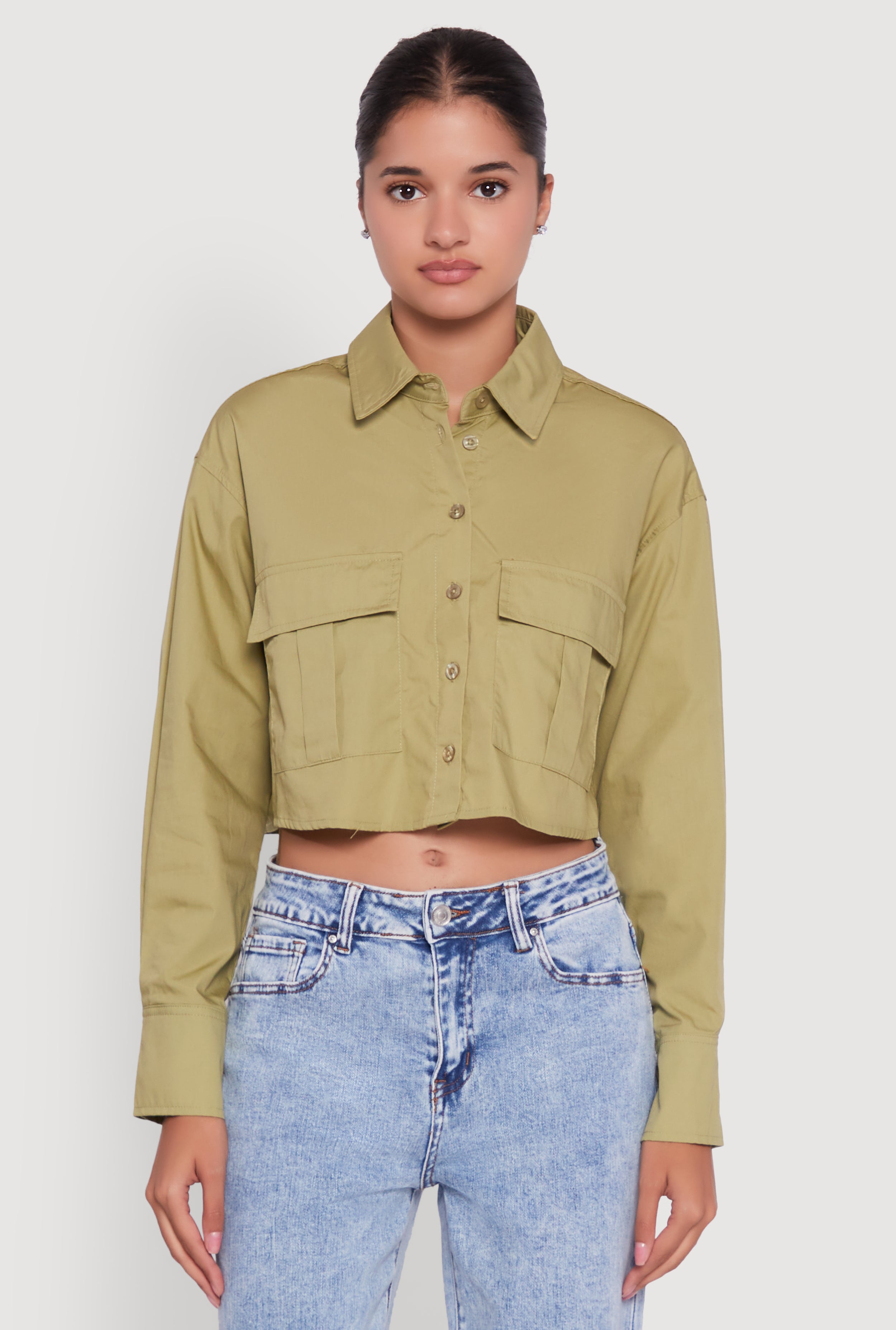 Poplin Flap Pocket Boxy Cropped Shirt