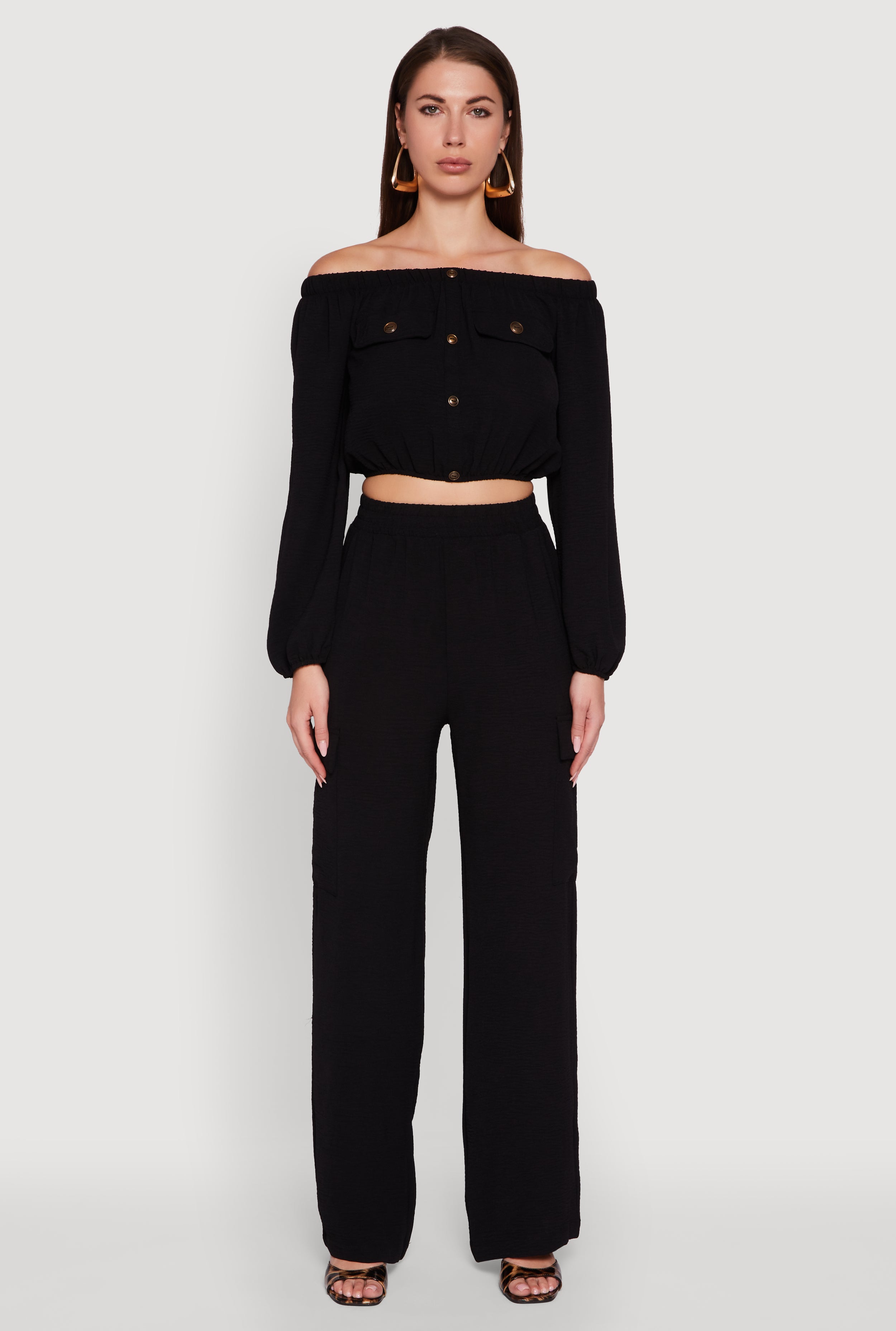 Crepe Knit Bubble Sleeve Off The Shoulder Crop Top