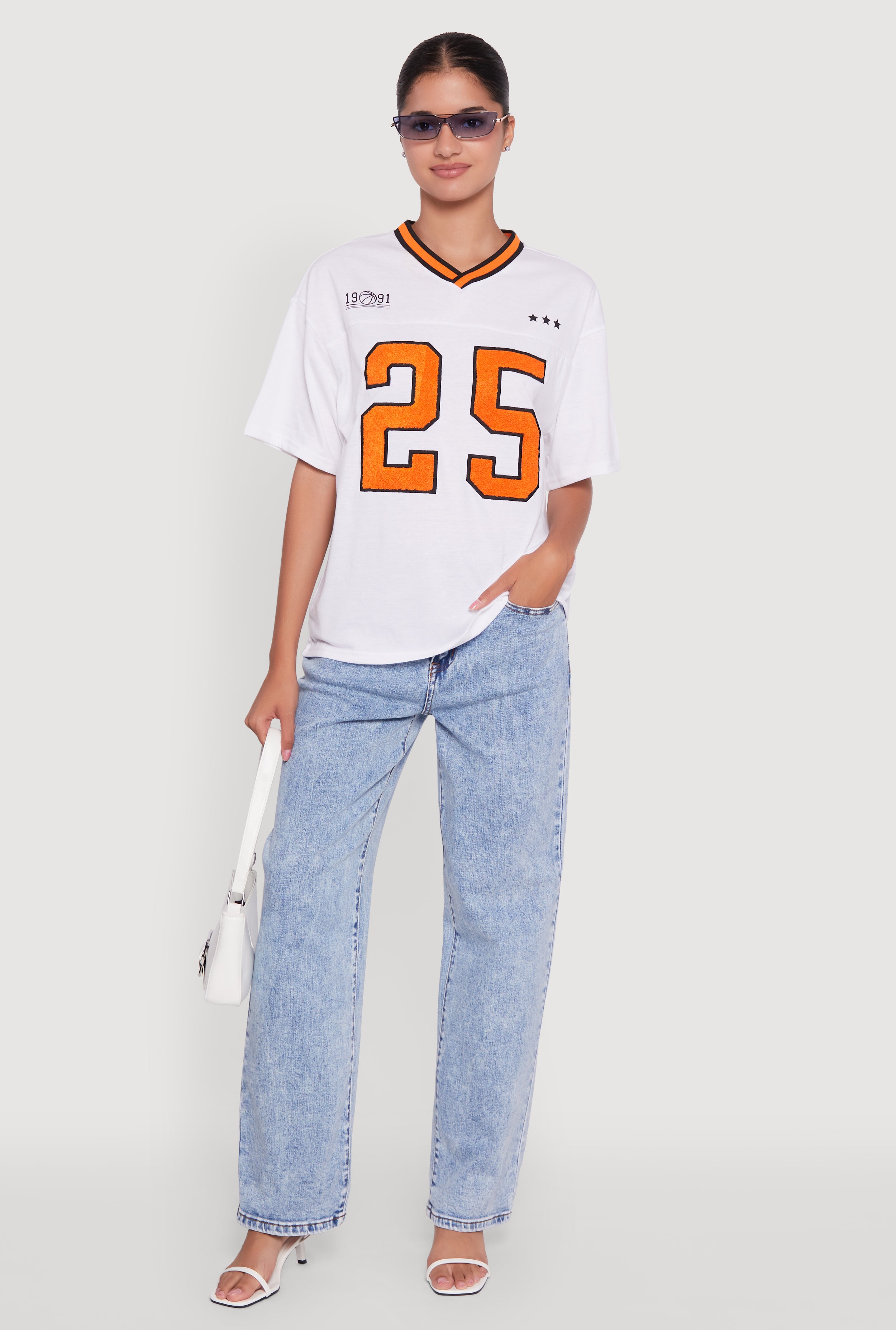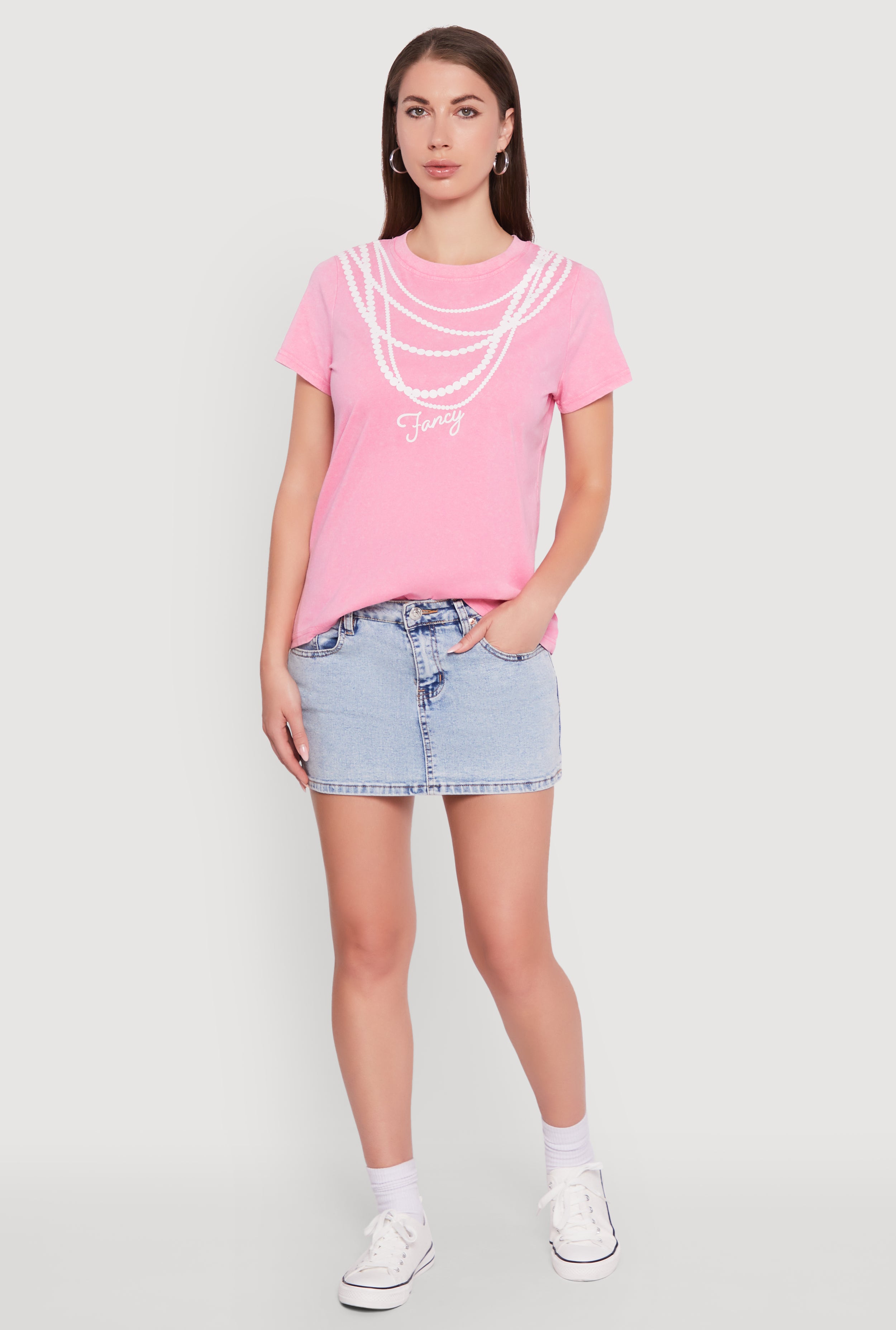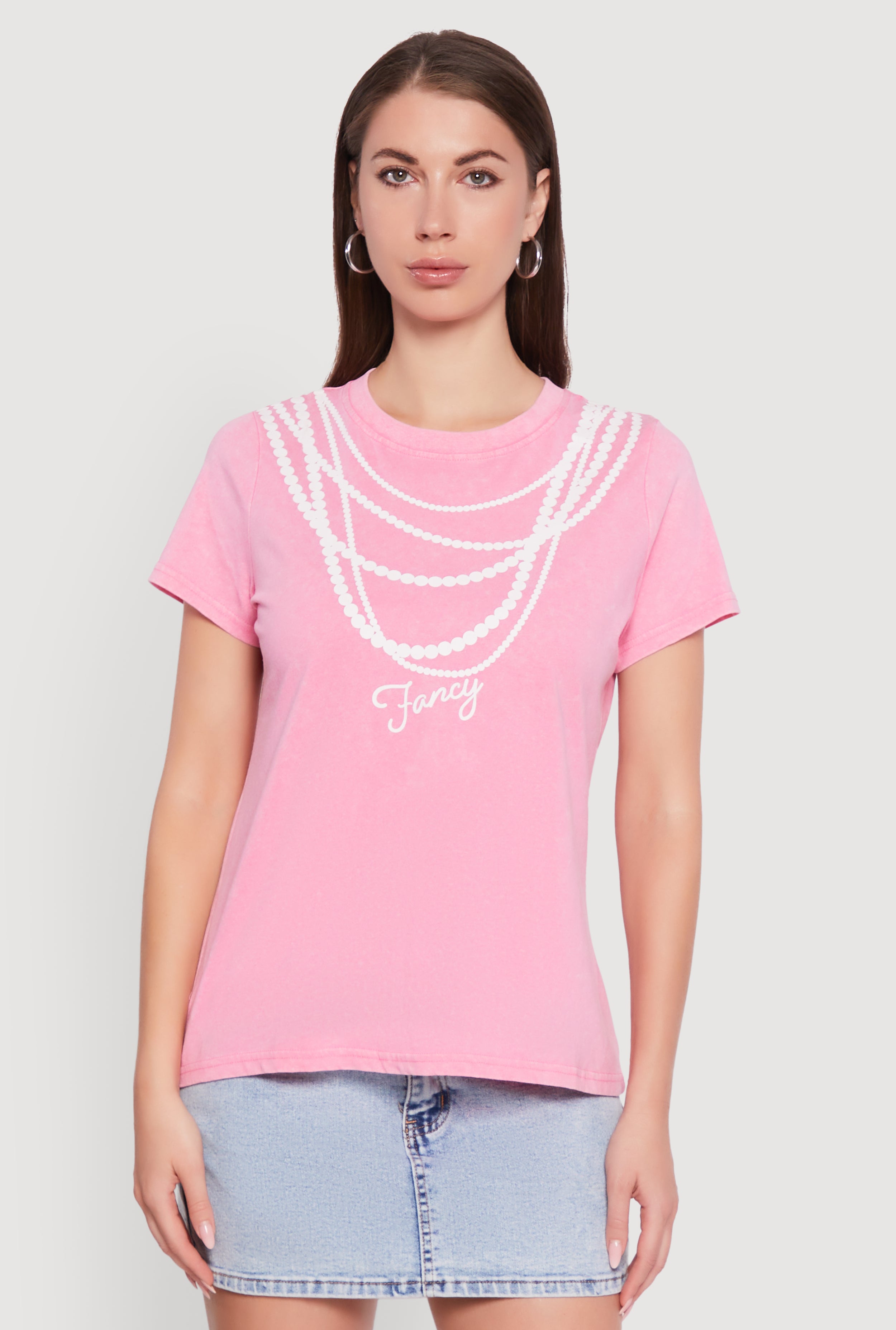 Acid Wash Fancy String Pearl Graphic Tee