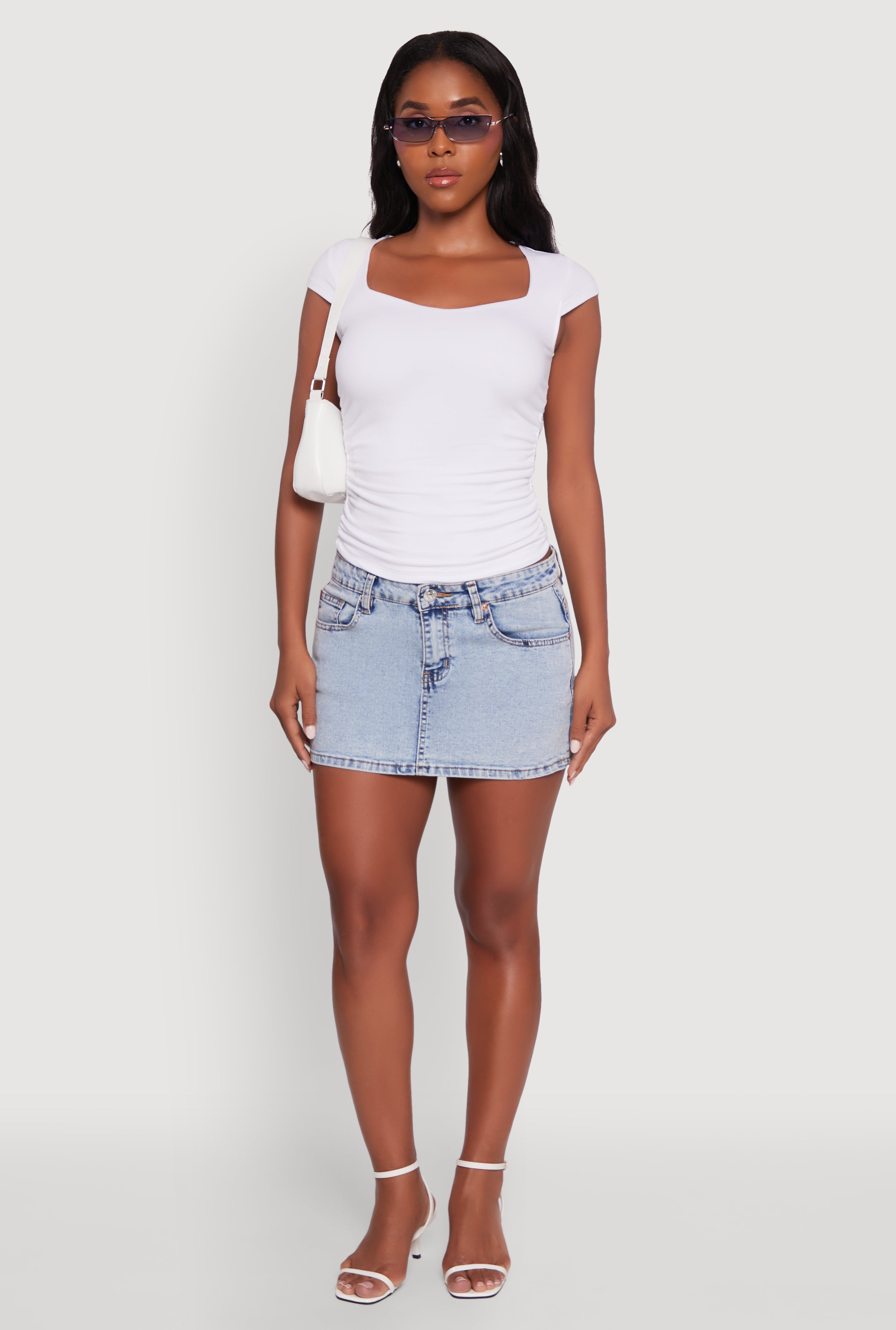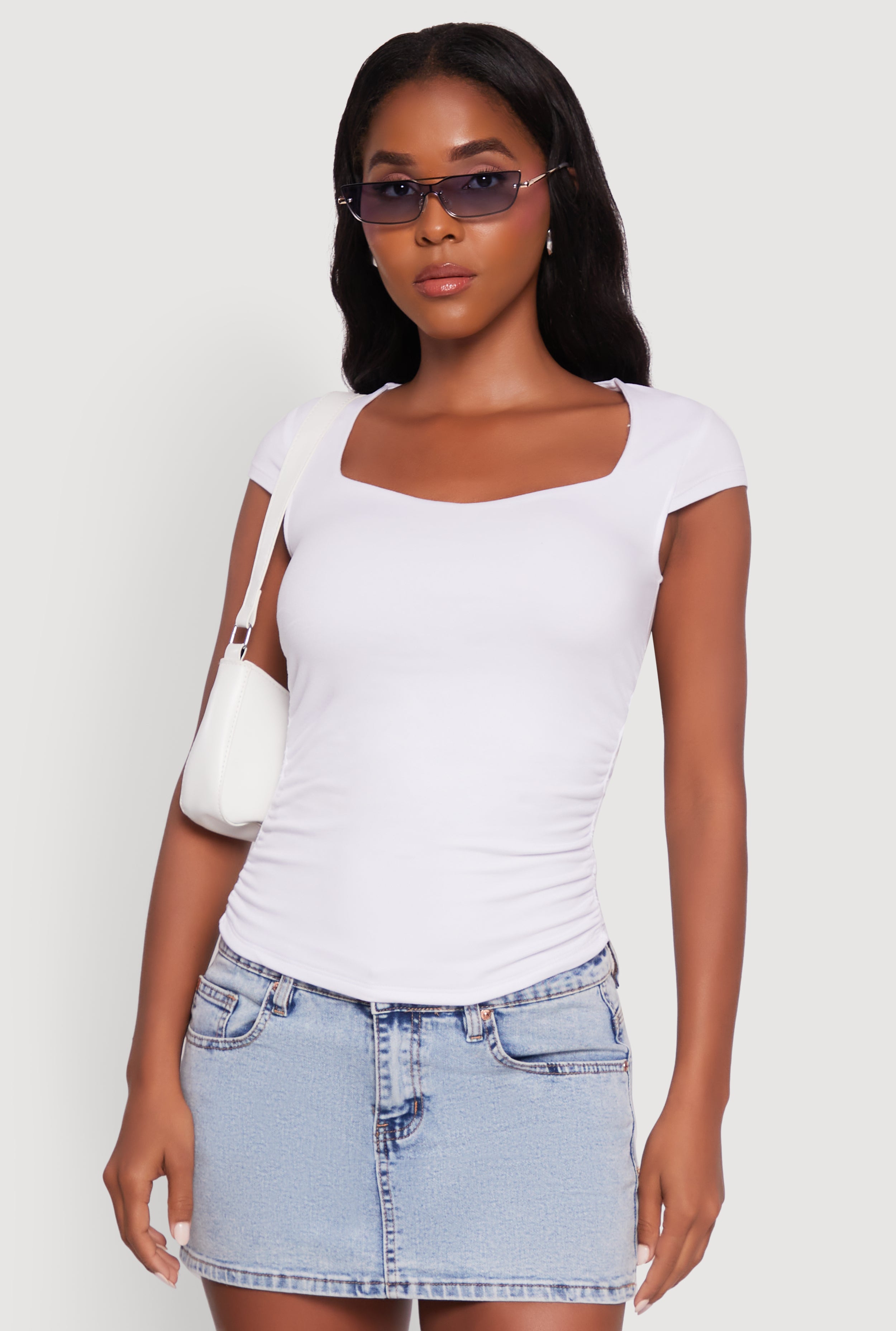 Ruched Side Cap Sleeve Crop Top