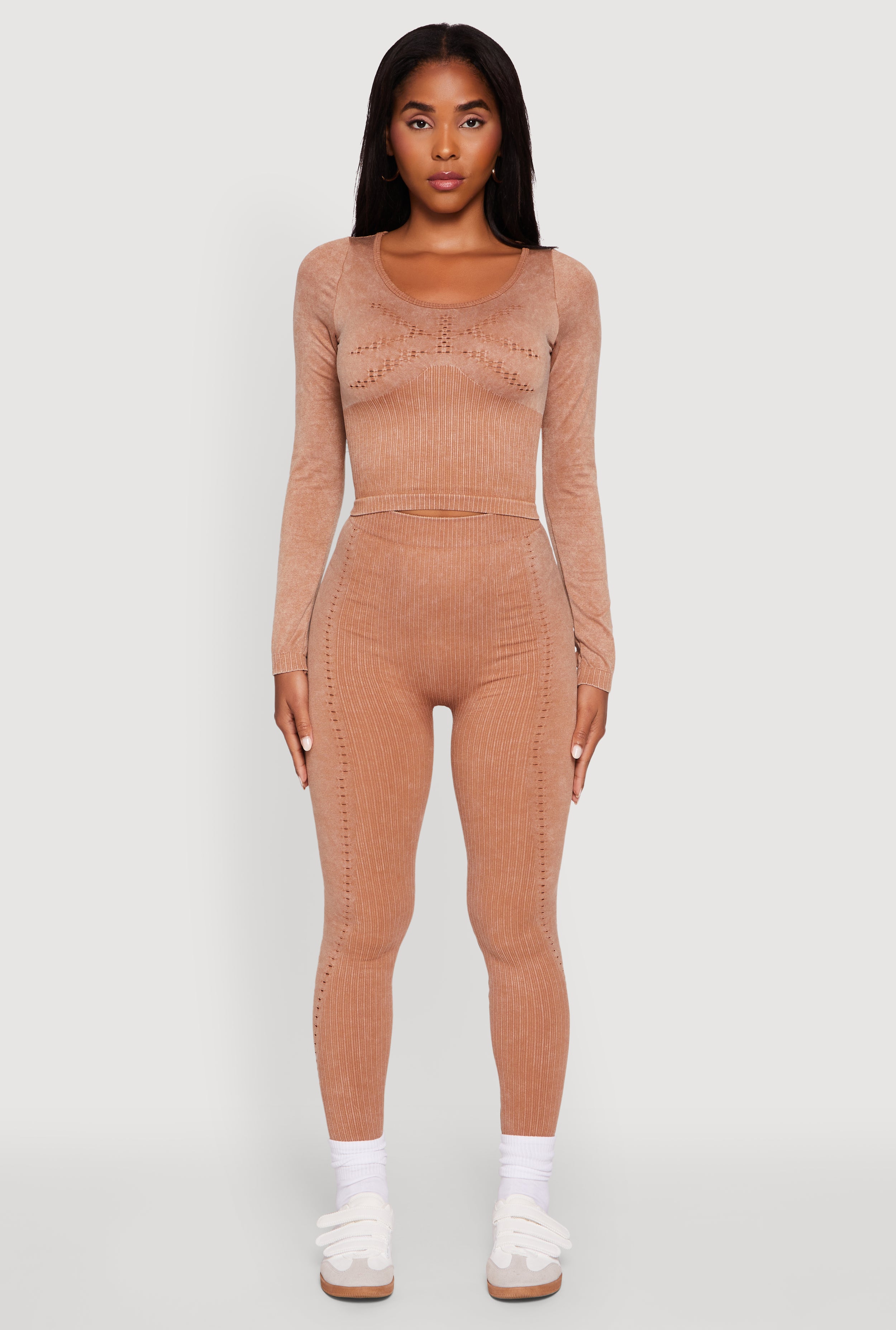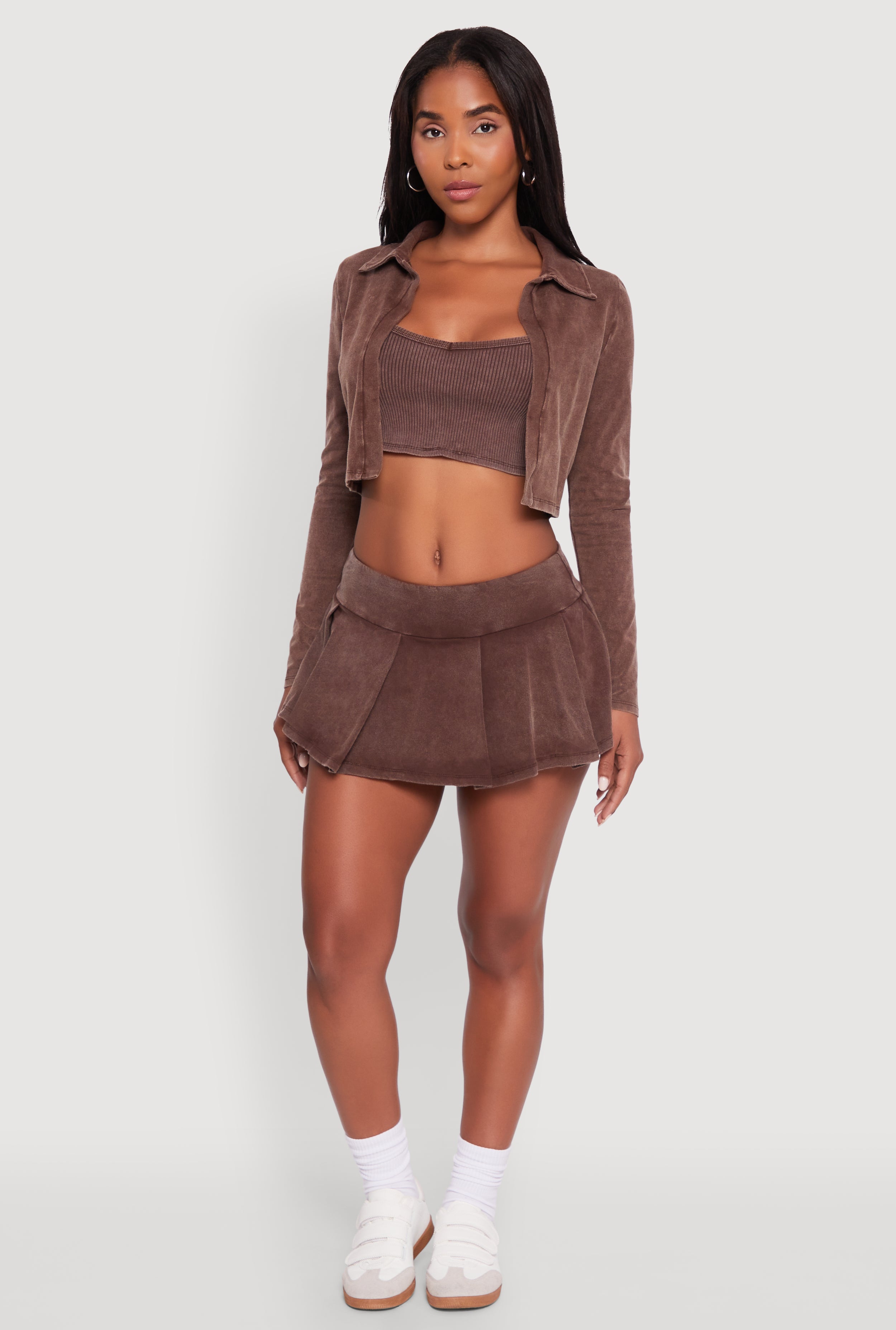Acid Wash Cropped Rib Knit Cami with Long Sleeve Jacket
