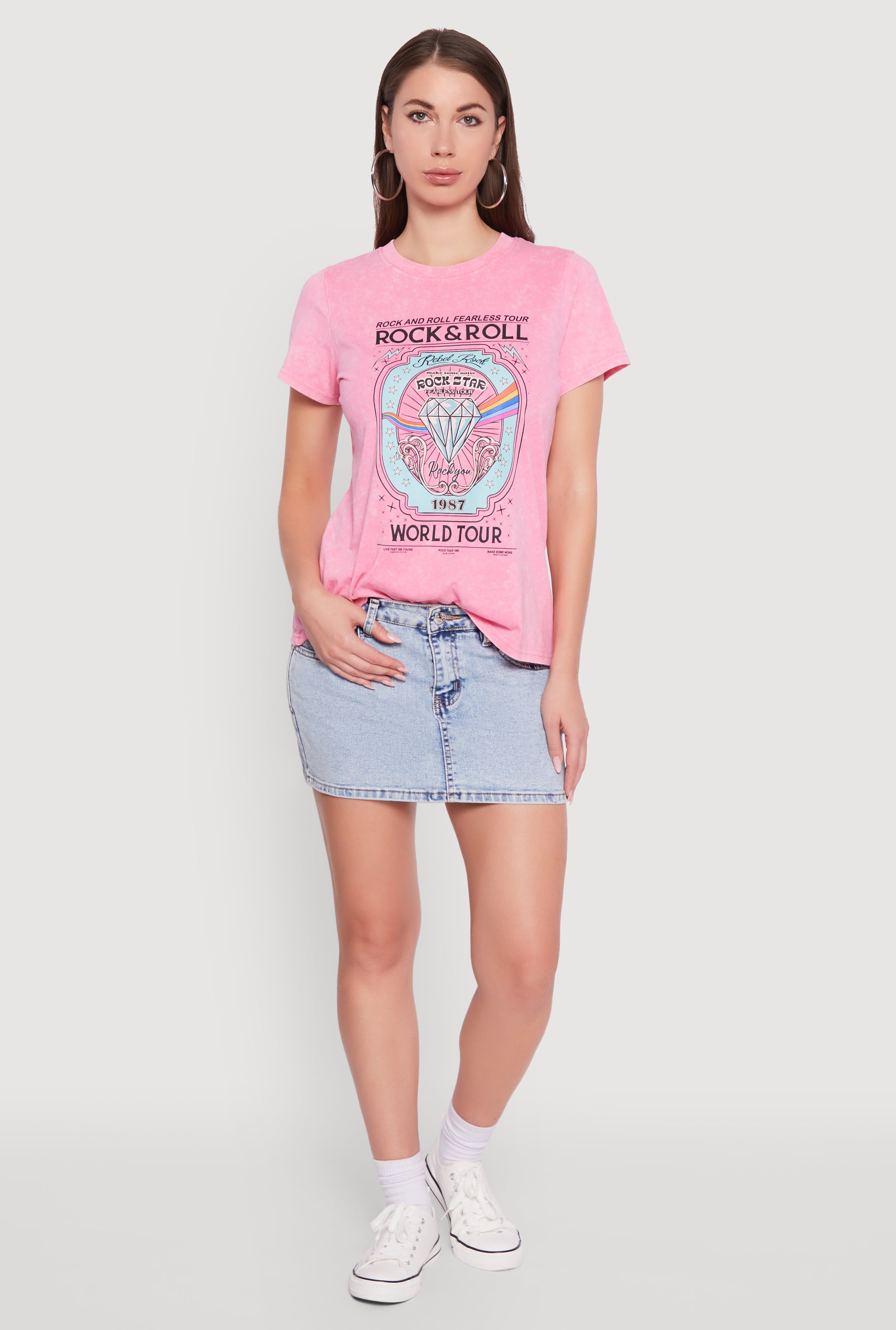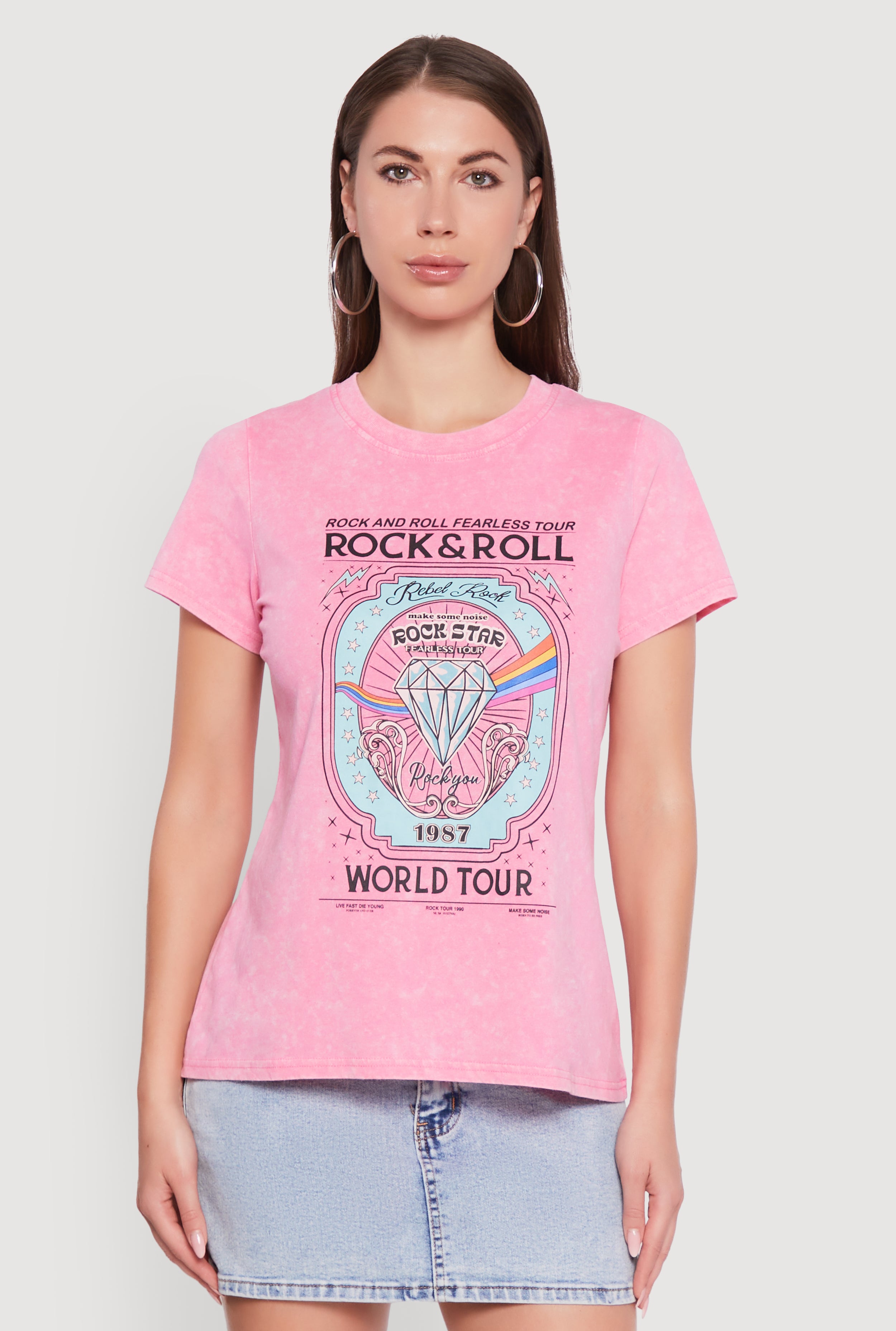 Acid Wash Graphic Rock and Roll Fearless Tour T-Shirt