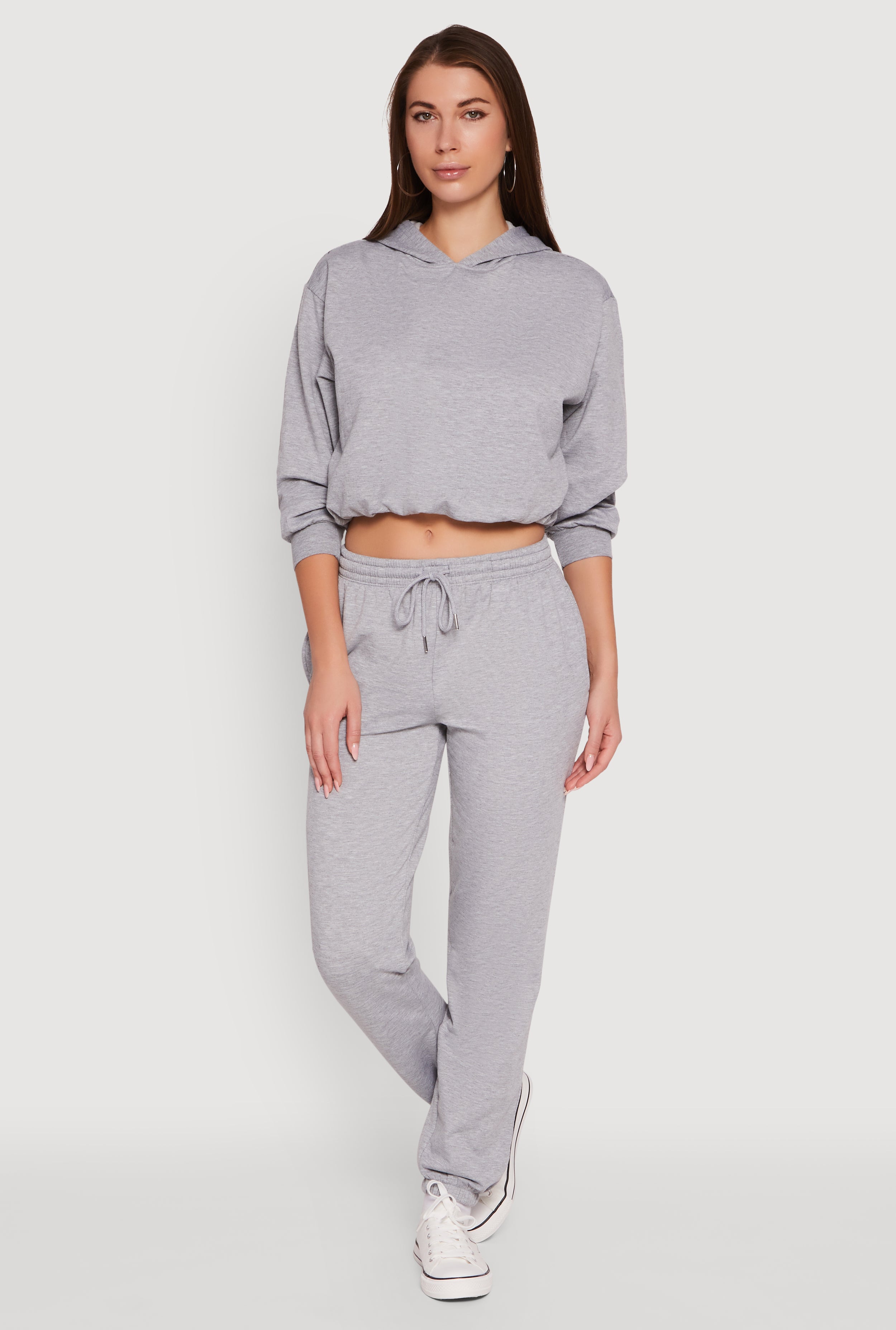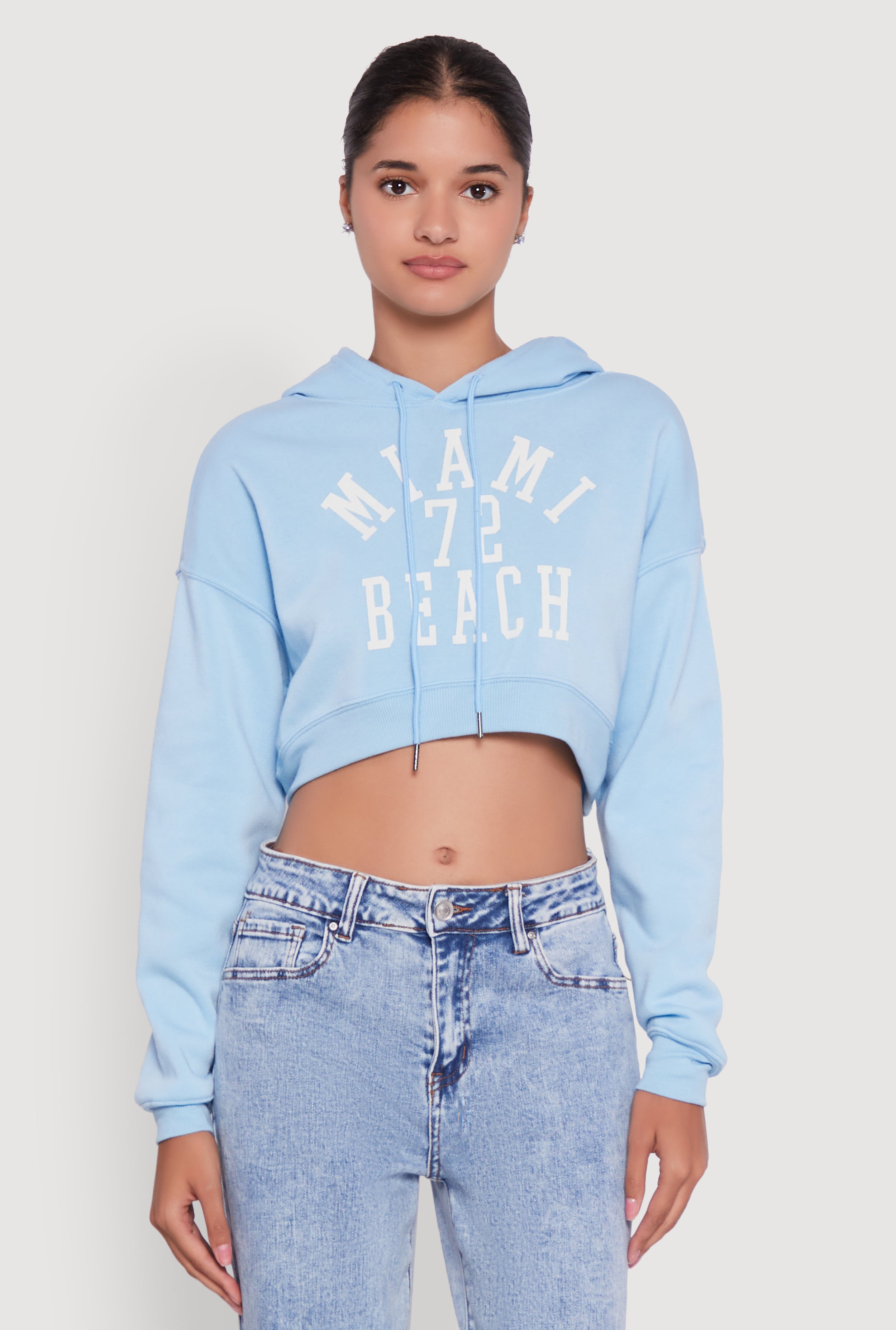 Bubble Hem Fleece Lined Hooded Crop Sweatshirt