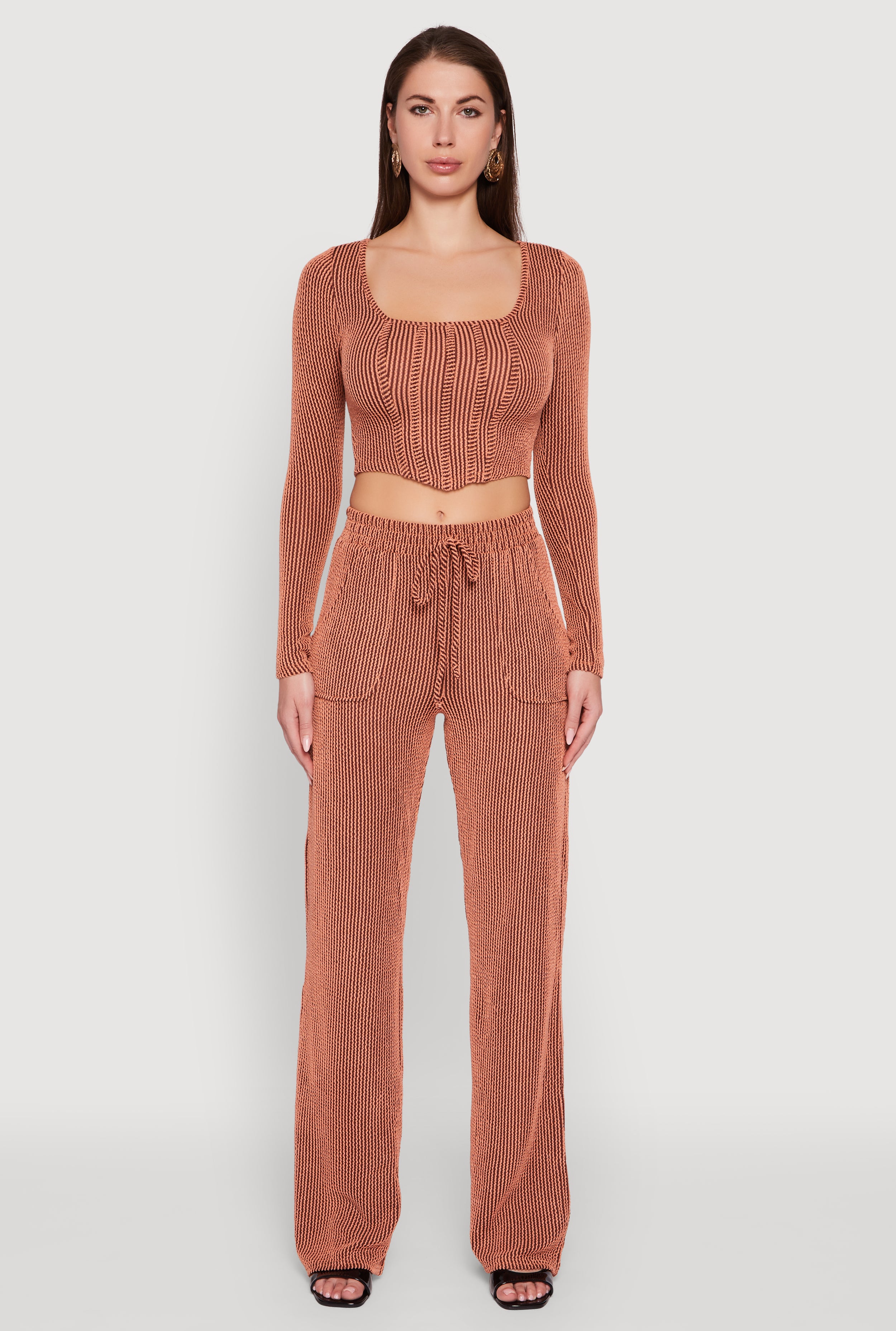 Rib Knit Shadow Stripe Corset Detail Crop Top