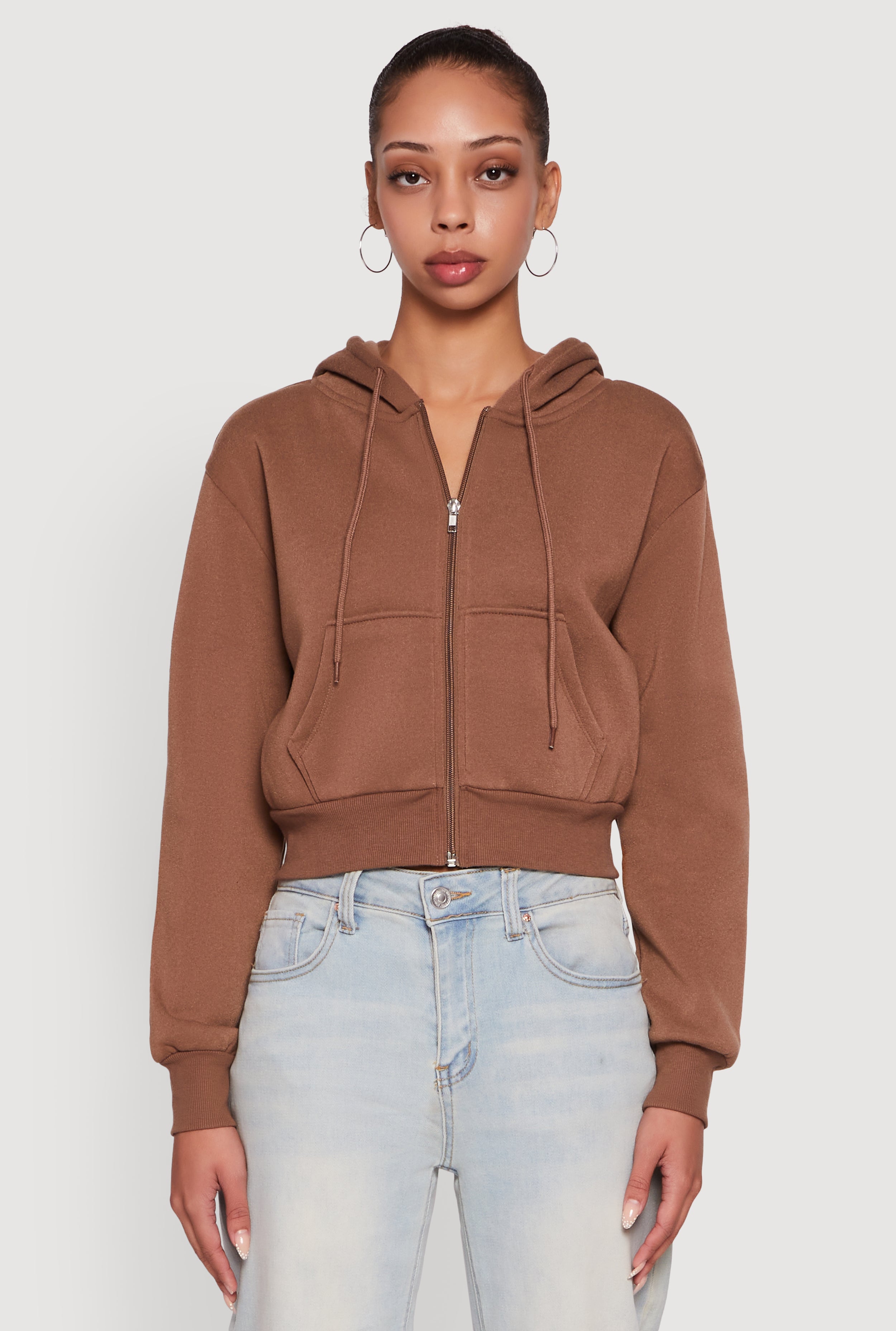 Long Sleeve Fleece Zip Front Hoodie