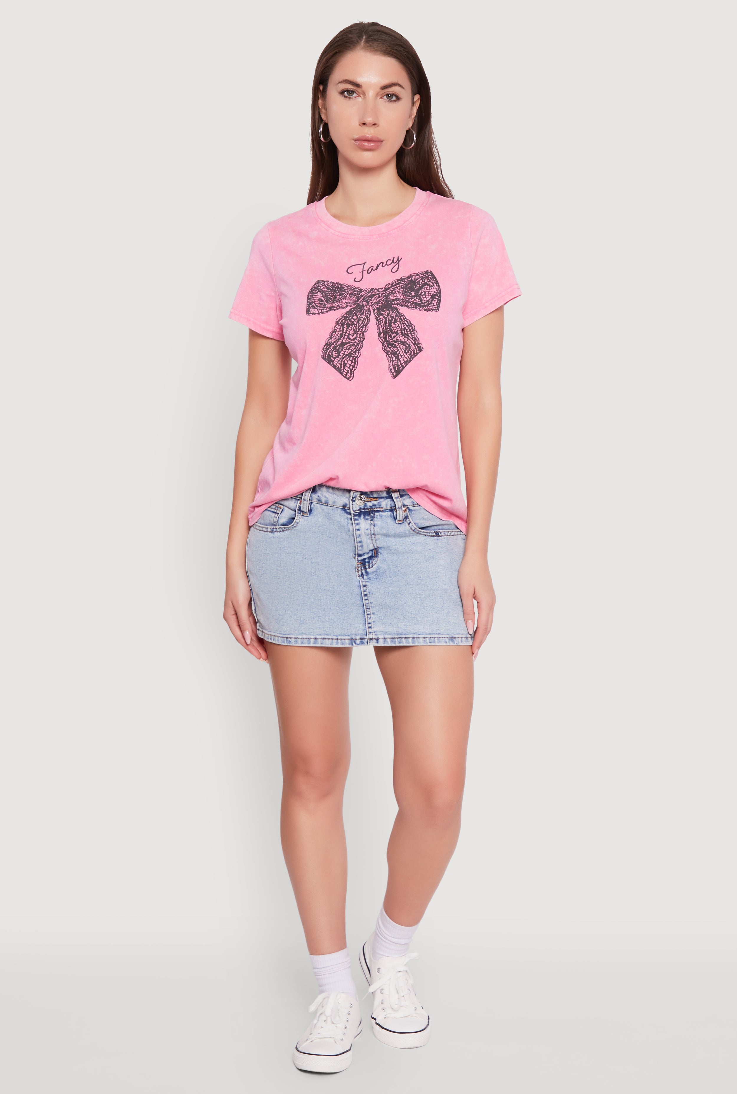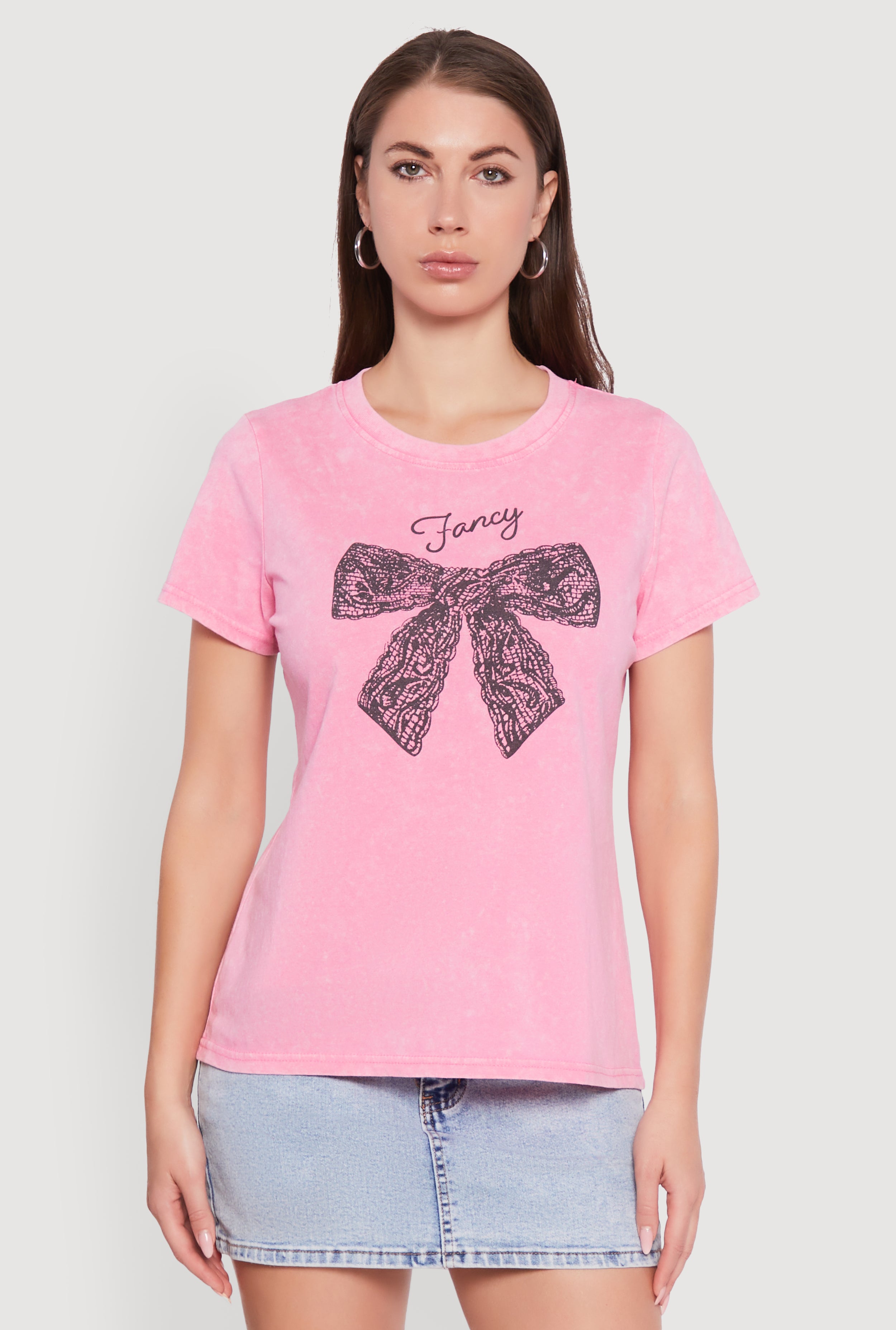 Acid Wash Fancy Bow Graphic Tee