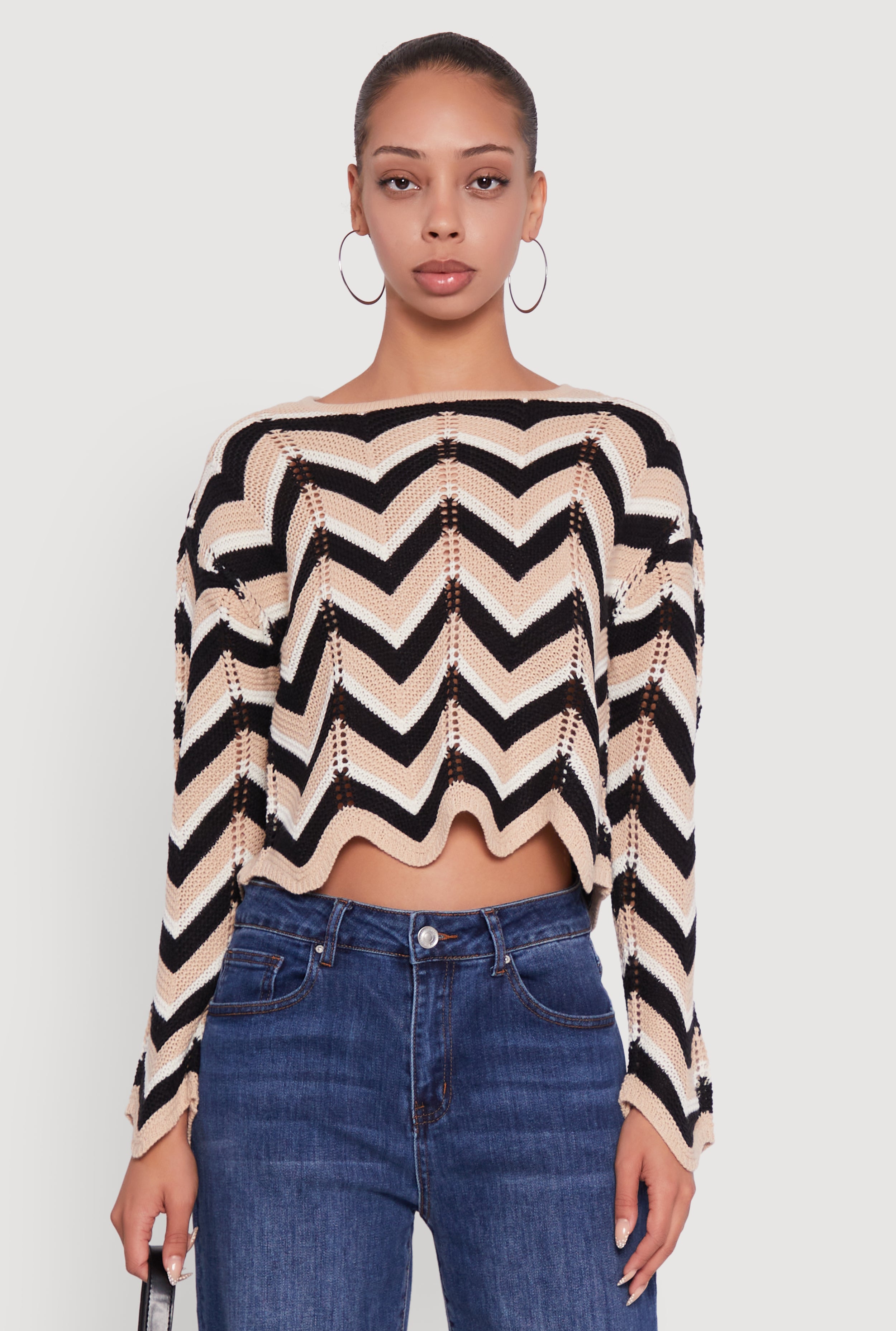 Chevron Crochet Cropped Sweater