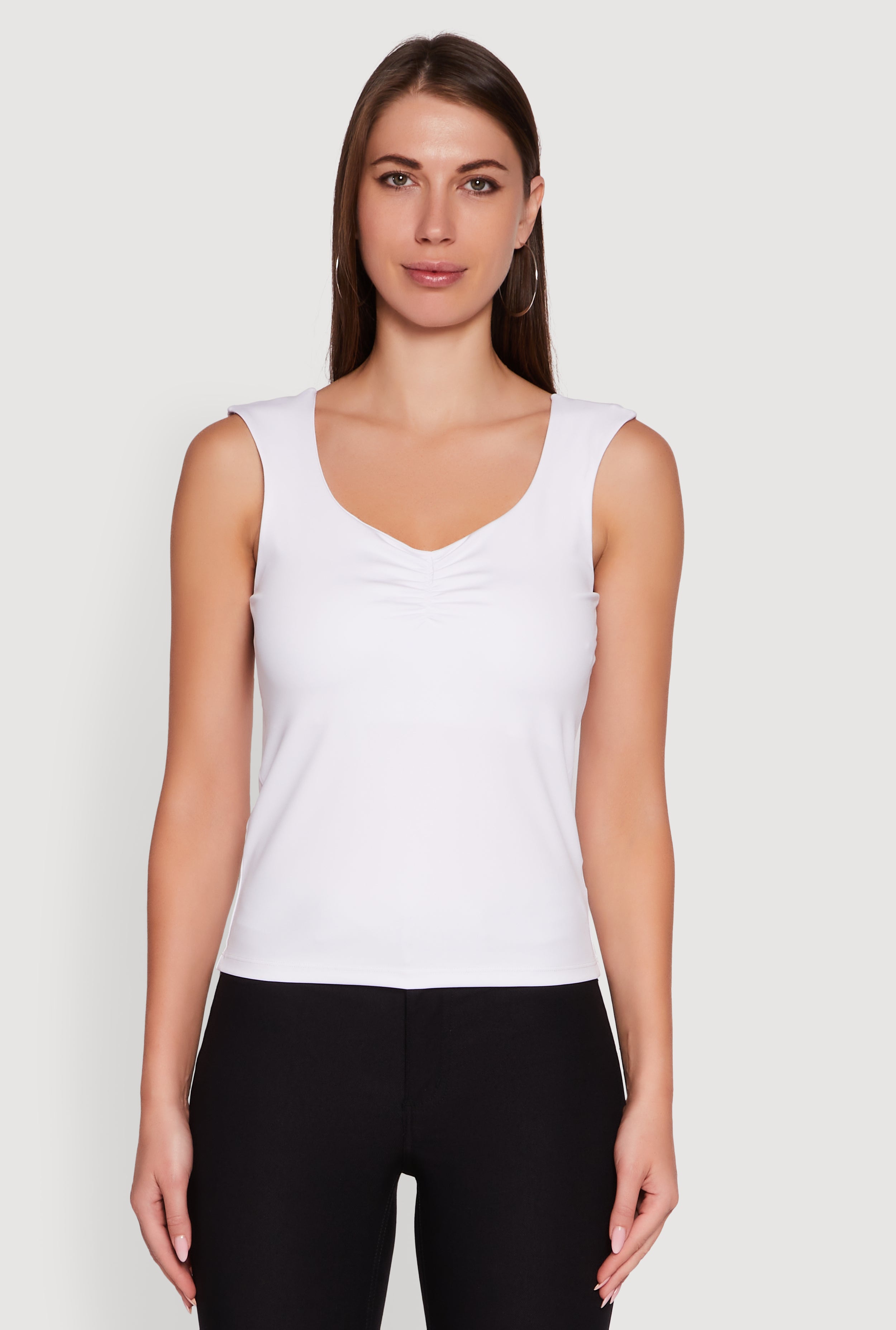 Ruched V Neck Tank Top with Shelf Bra