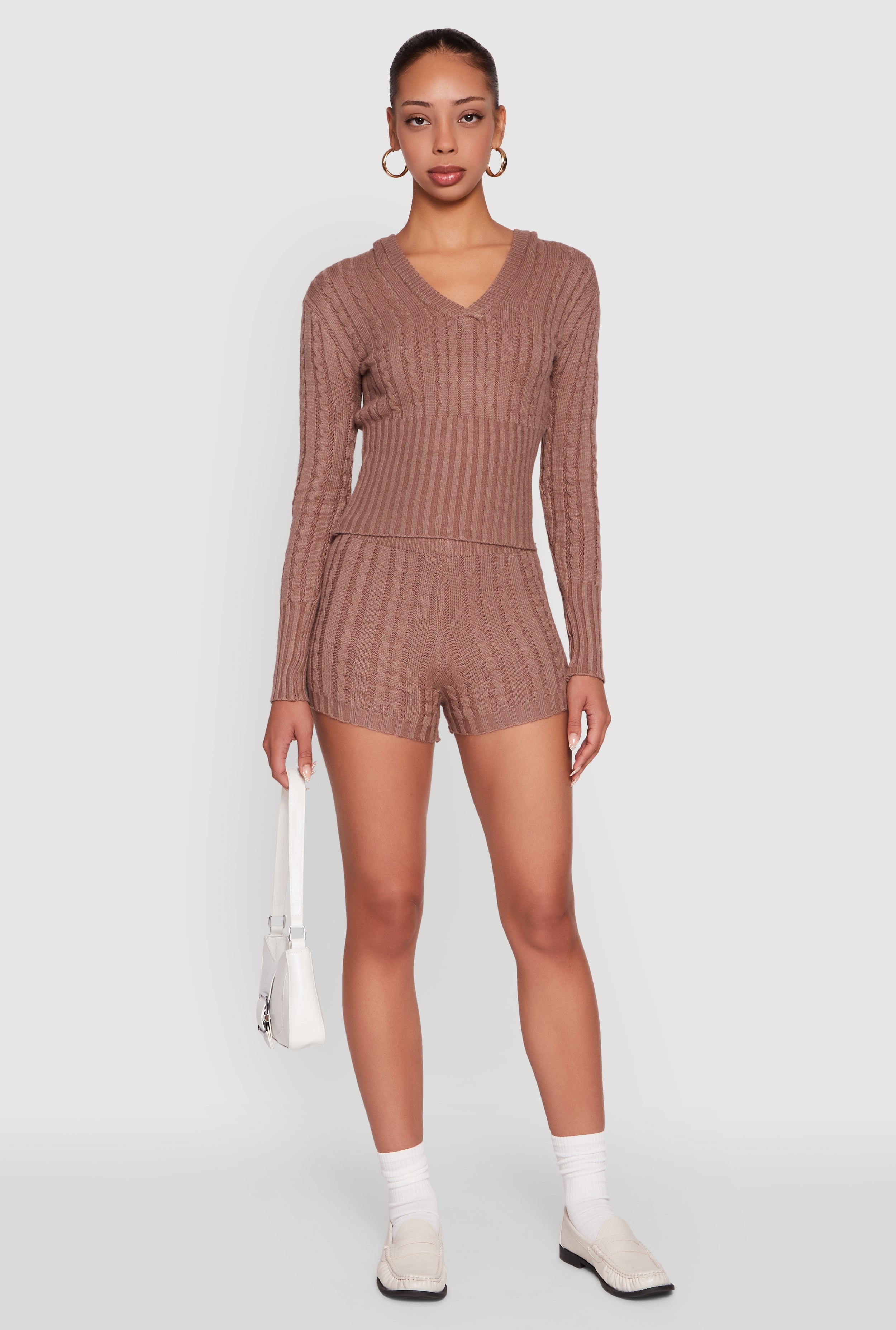 Cable Knit V Neck Hooded Sweater