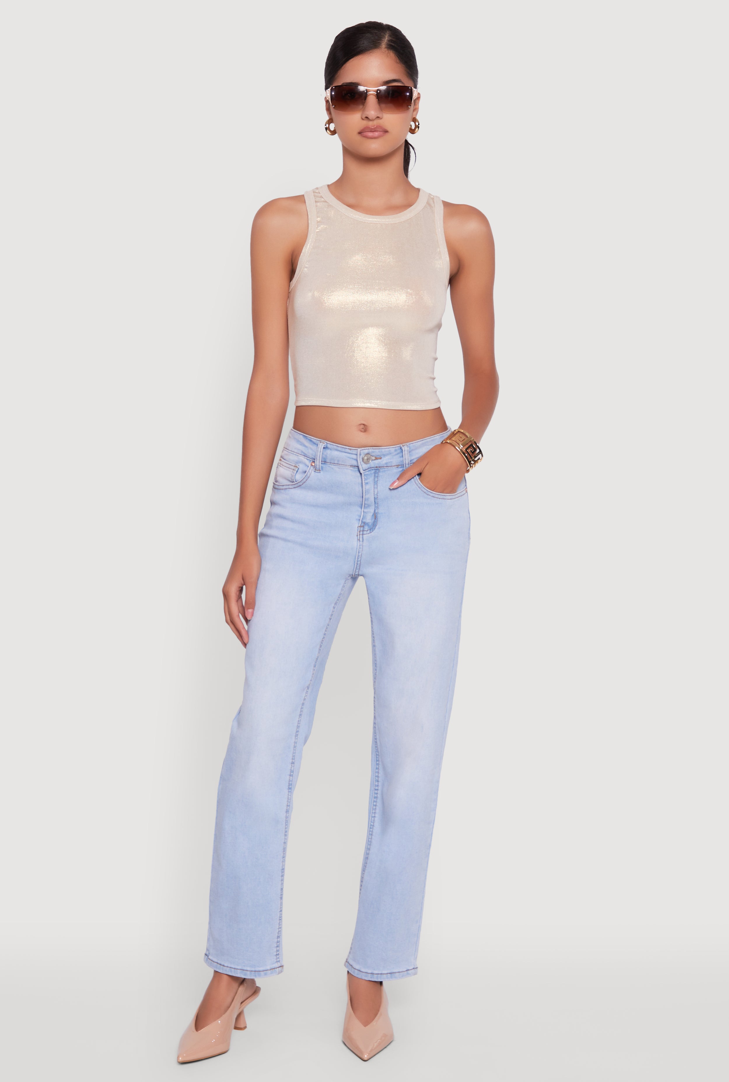 Metallic Sleeveless Crop Top