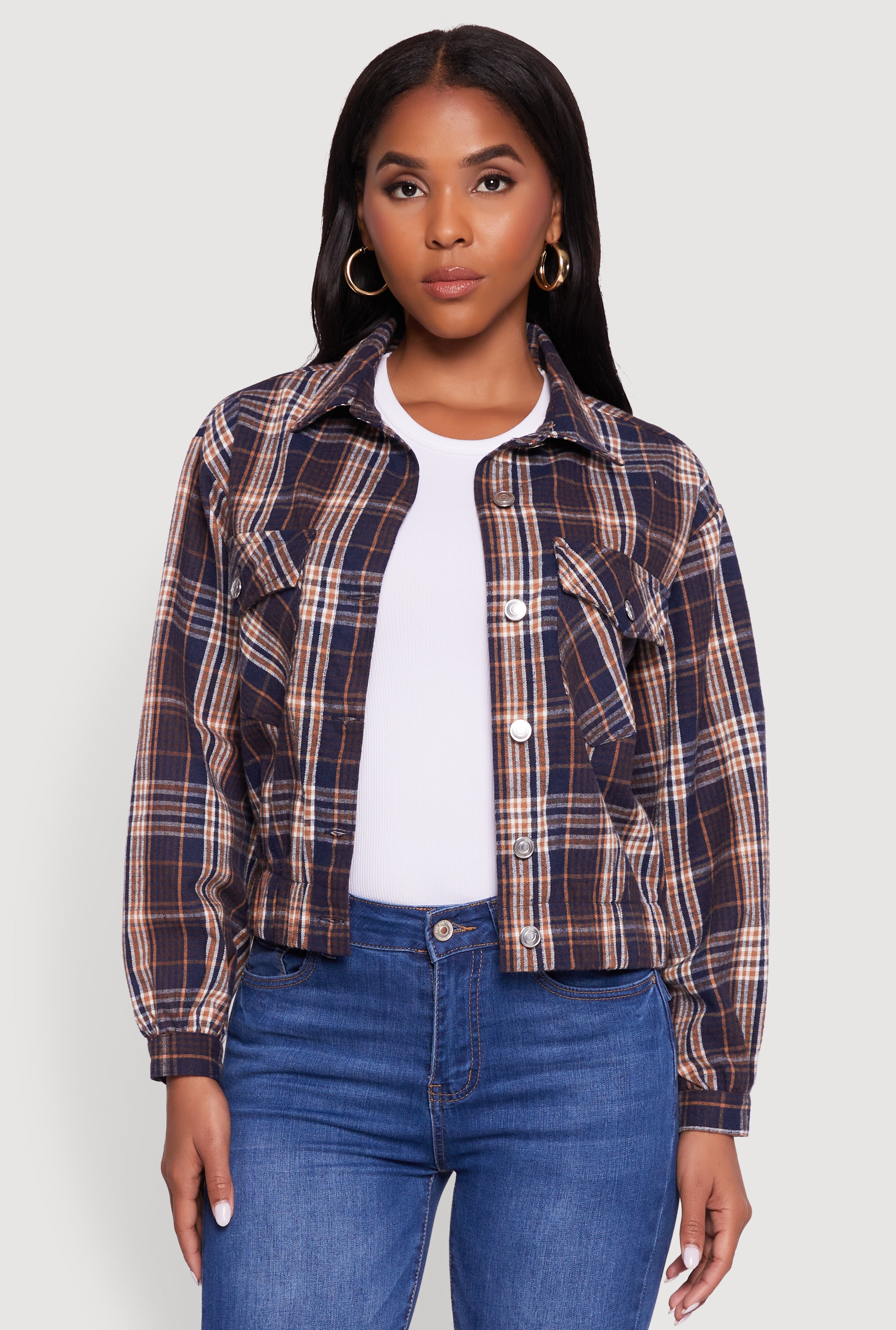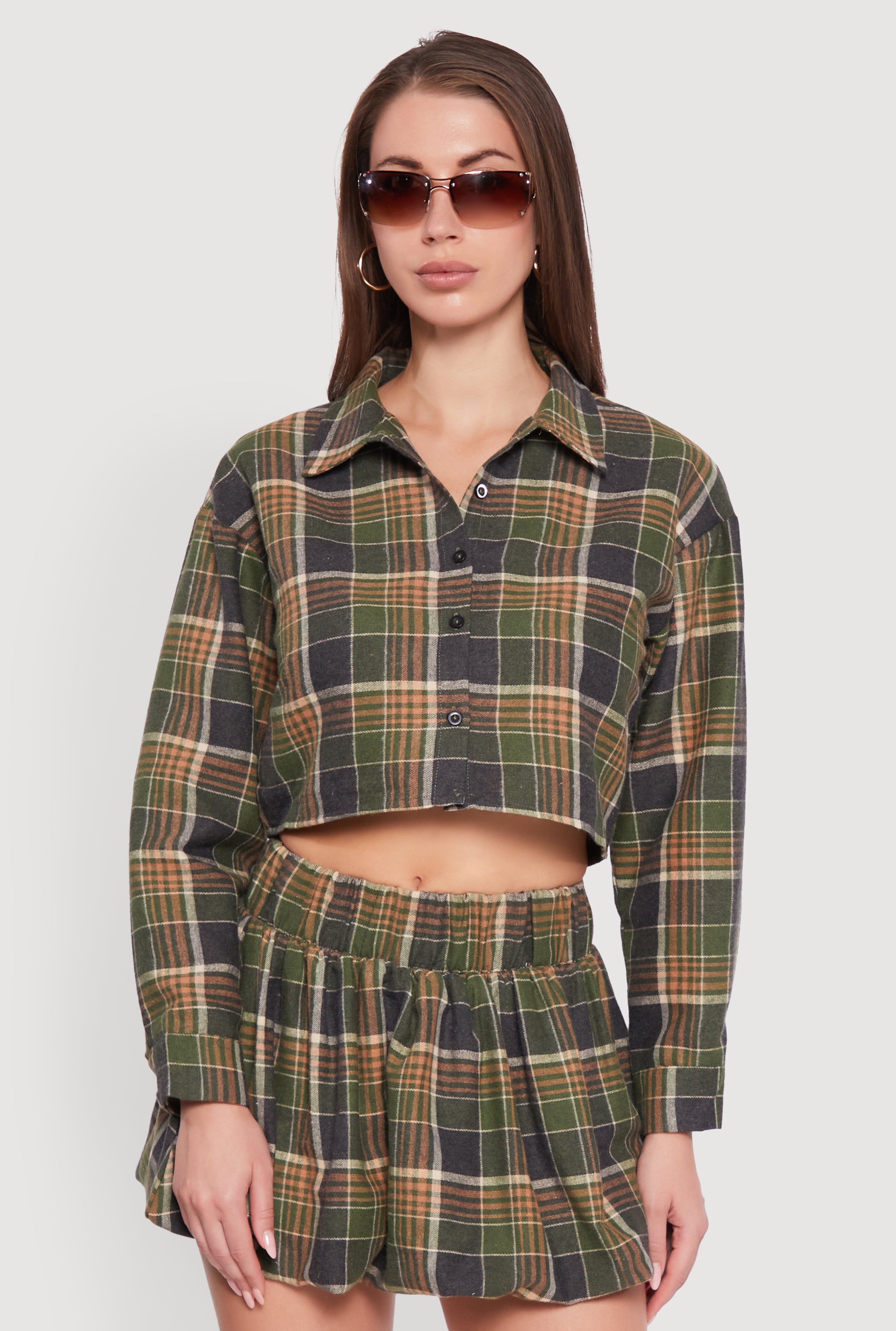 Plaid Flannel Cropped Long Sleeve Shirt