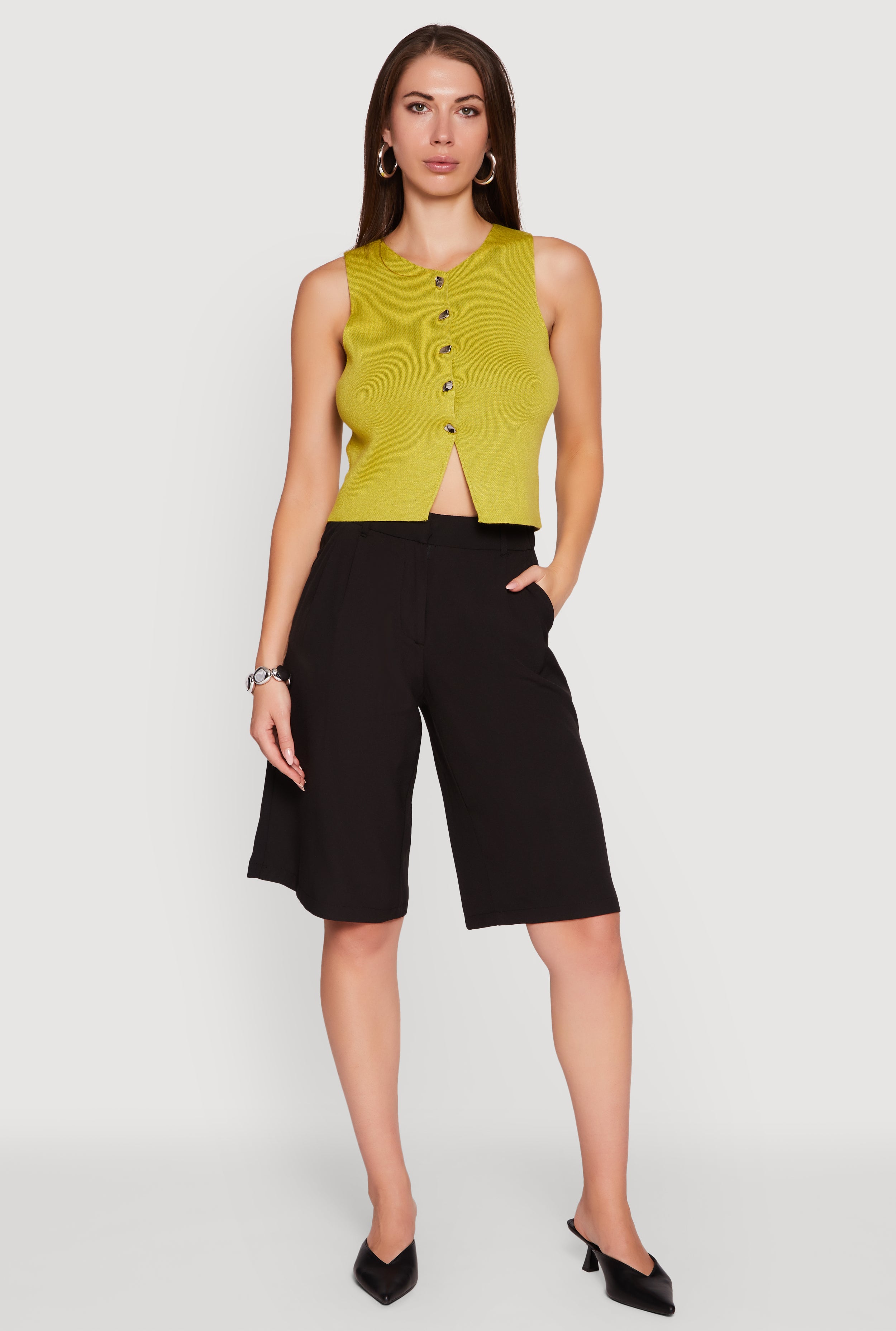 Metallic Button Front Sleeveless Sweater Vest