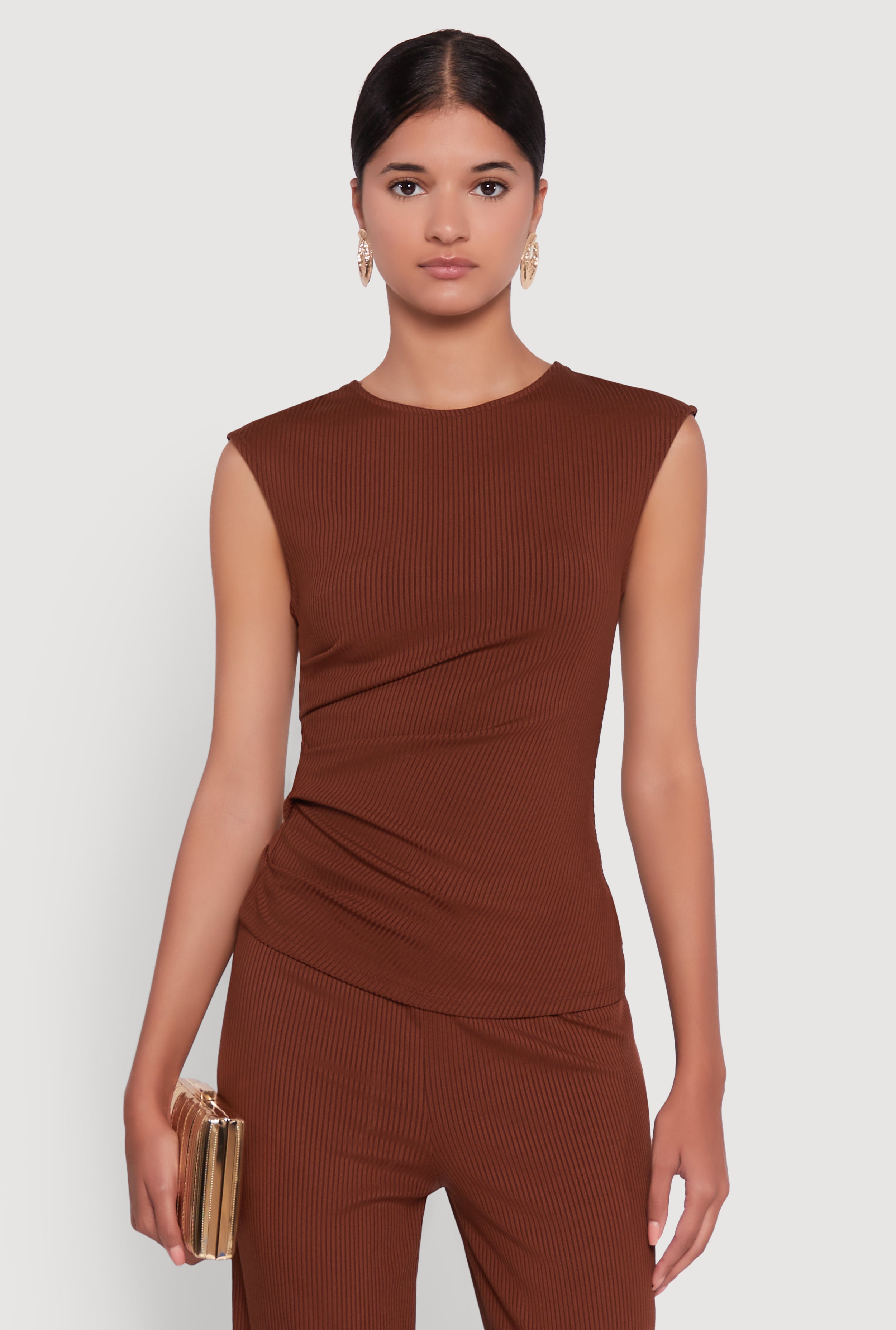 Ribbed Knit Sleeveless Solid Top