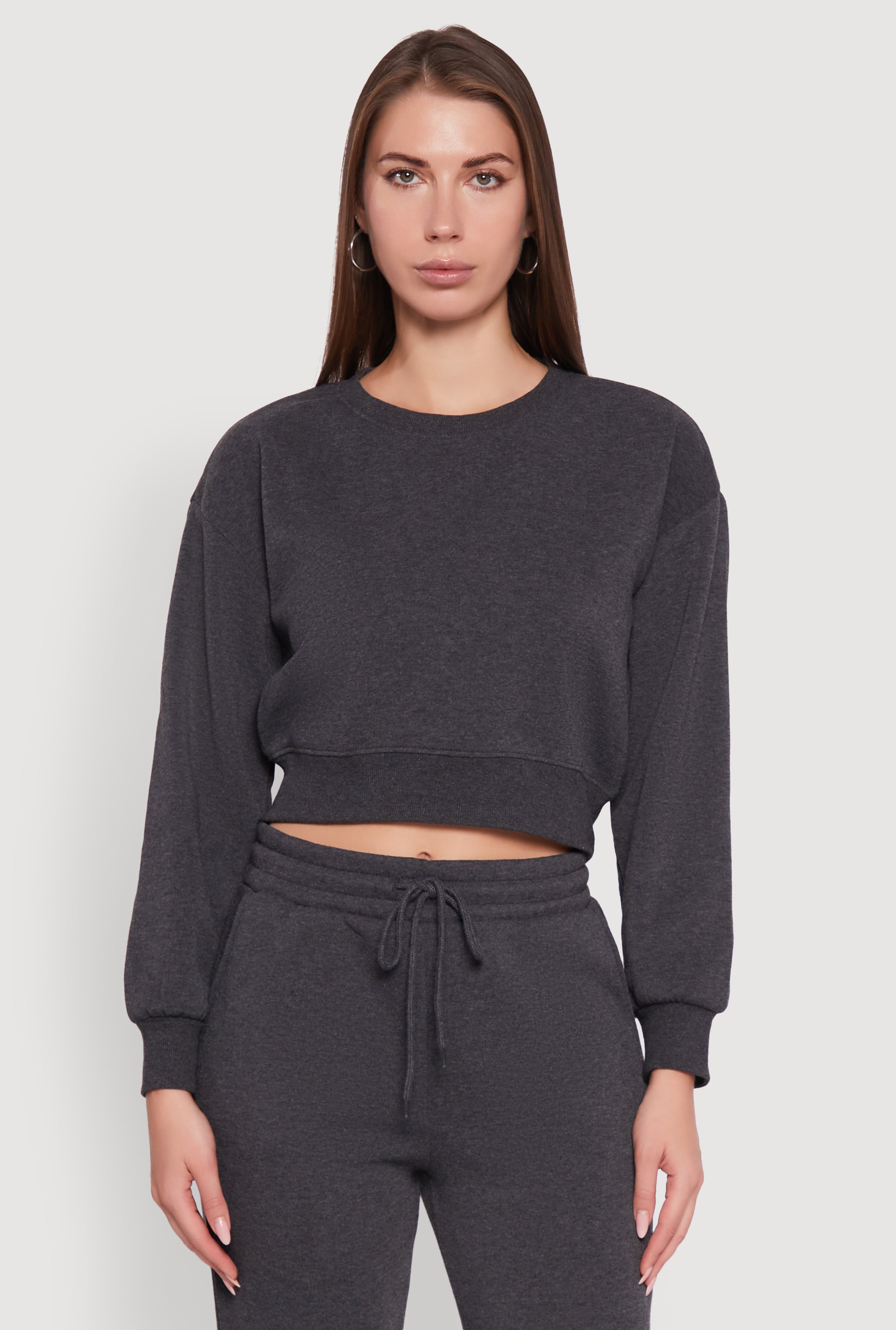 Fleece Long Sleeve Cropped Pullover Sweatshirt