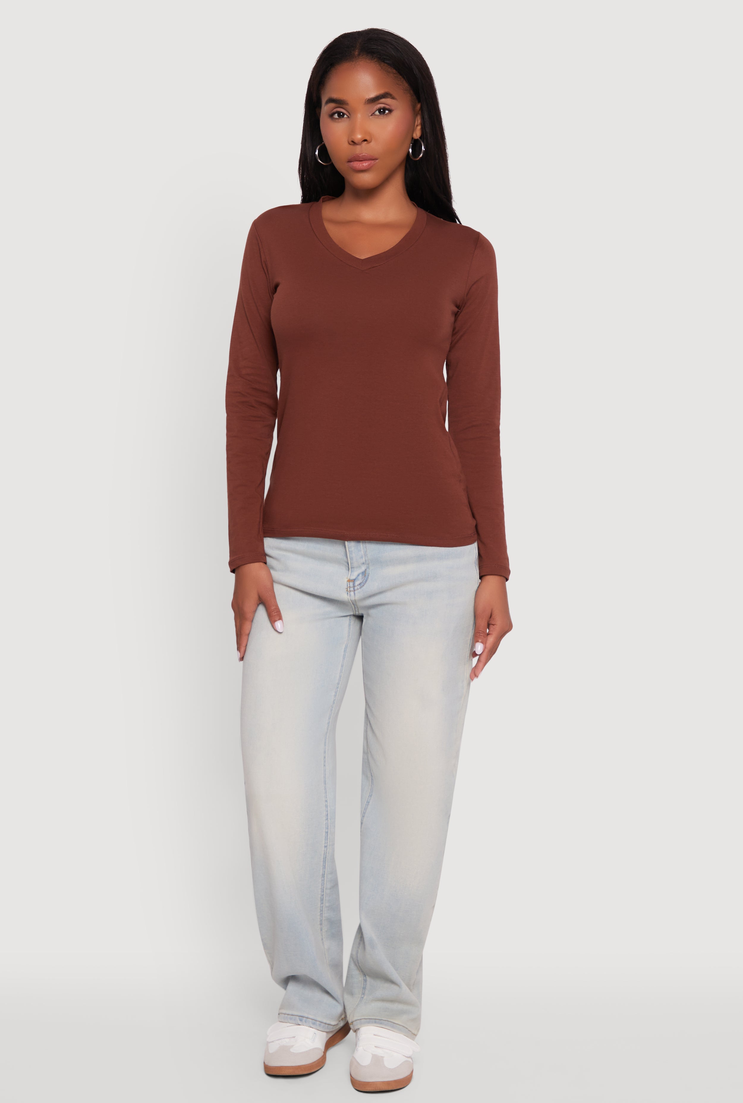 V-Neck Long Sleeve Solid T-Shirt