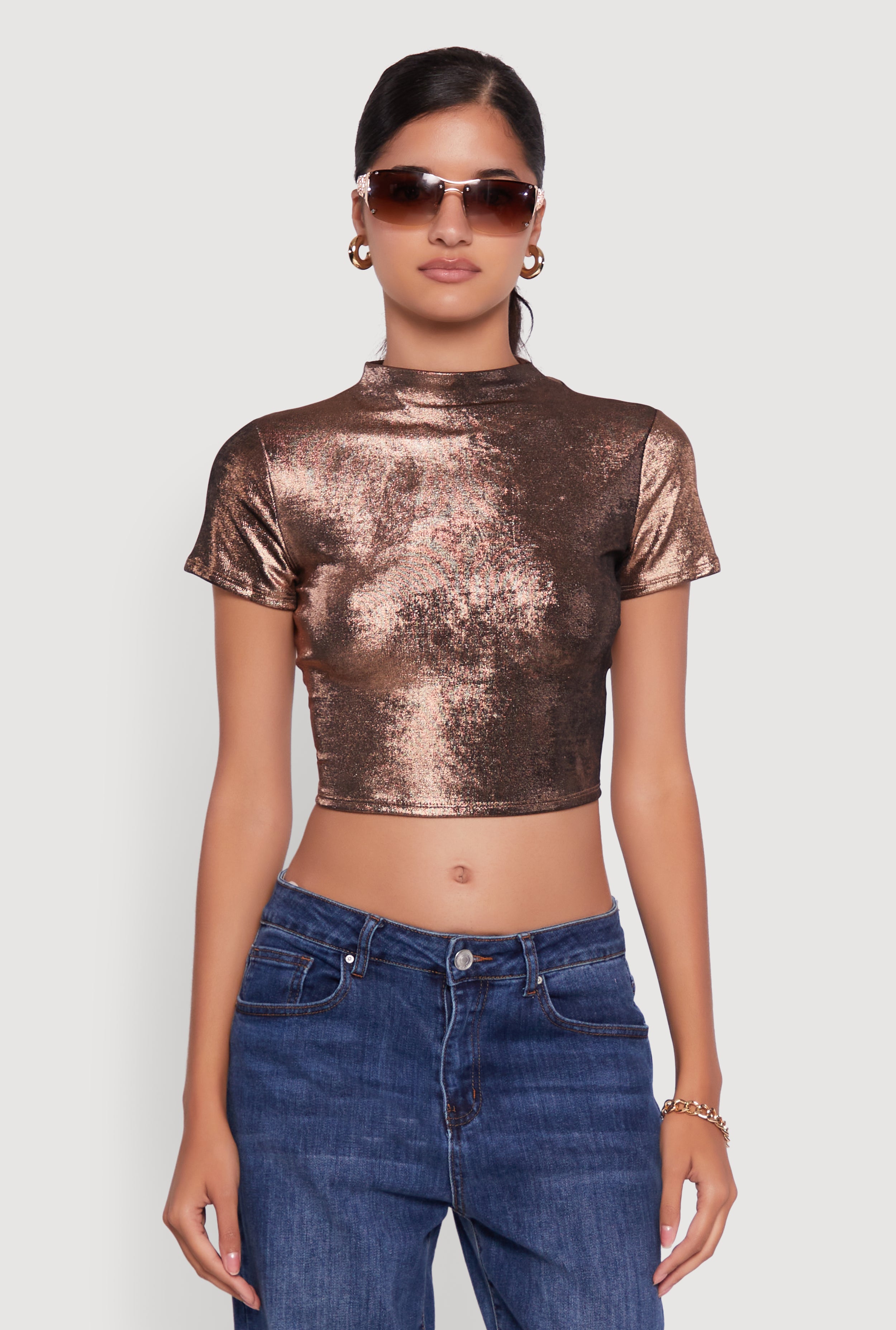 Metallic Short Sleeve Crop Top