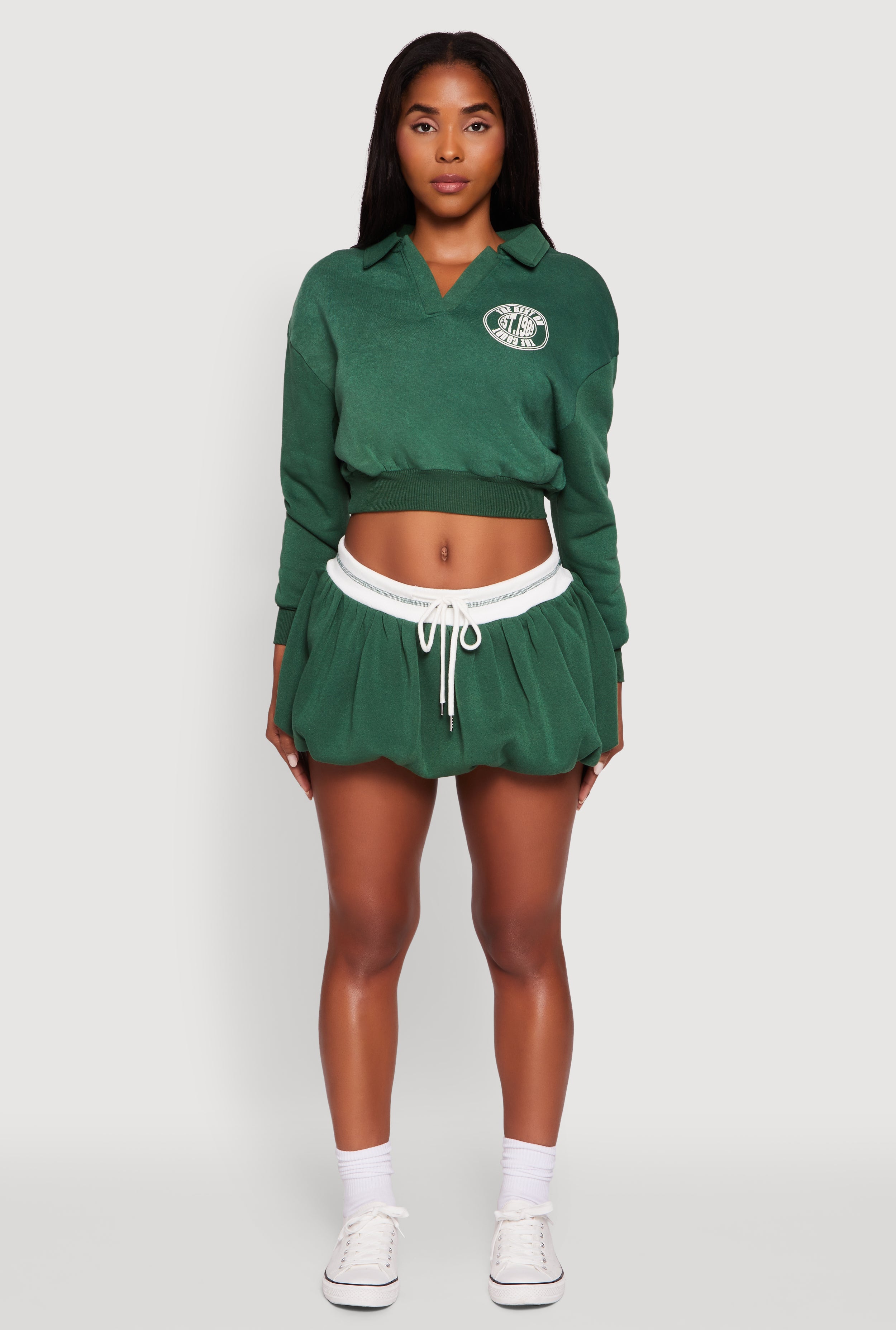 Collared Fleece Cropped Pullover Sweatshirt