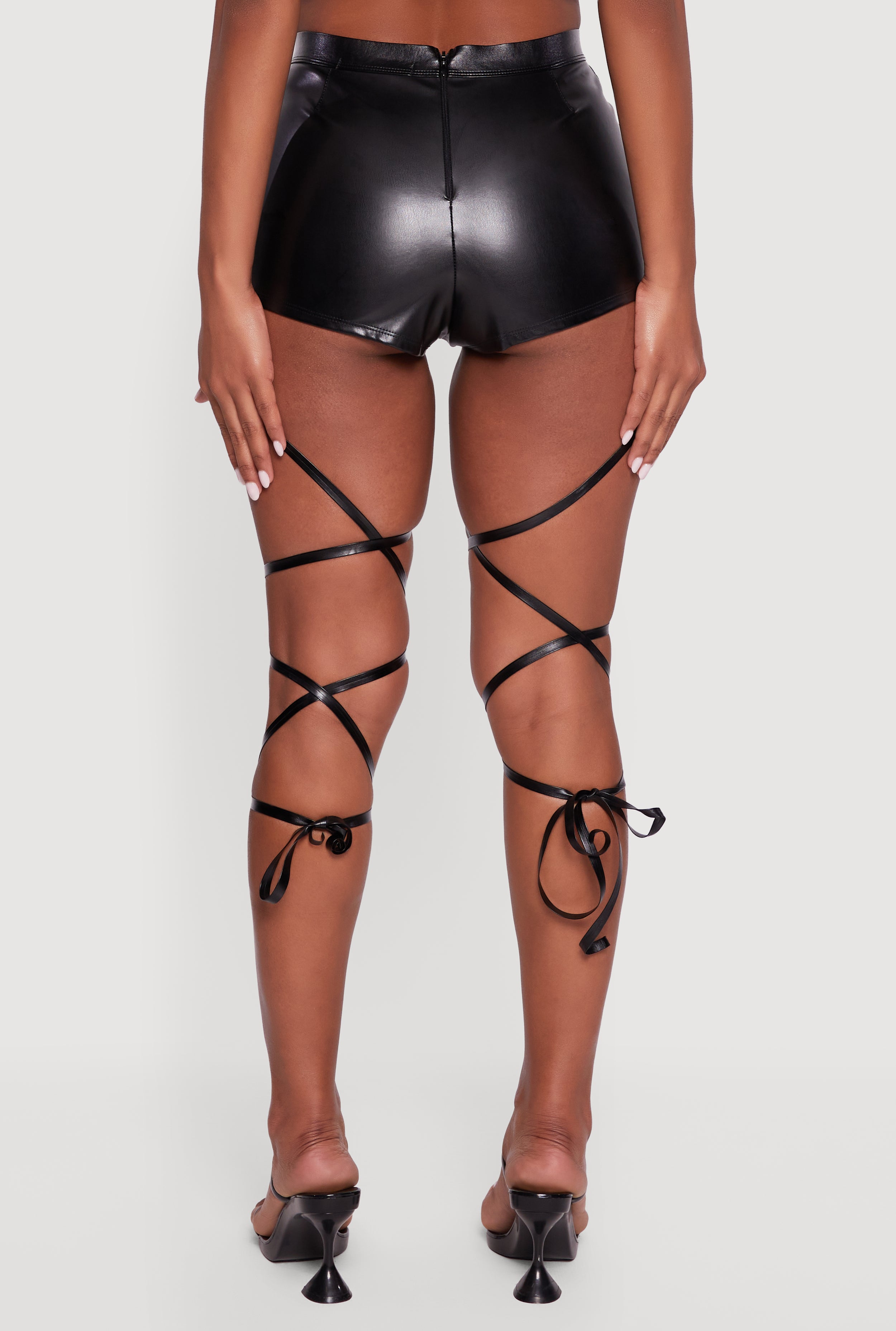 Turn heads and own the night in these Faux Leather Lace Up Micro Shorts. Designed with a sleek mid-rise and a bold lace-up front, these shorts bring edgy vibes to your party-ready wardrobe. The soft fleece lining keeps you comfy while the zip back closure ensures a perfect fit. Whether you’re hitting the club or a night out with friends, these solid black shorts are your go-to for instant cool and confidence.