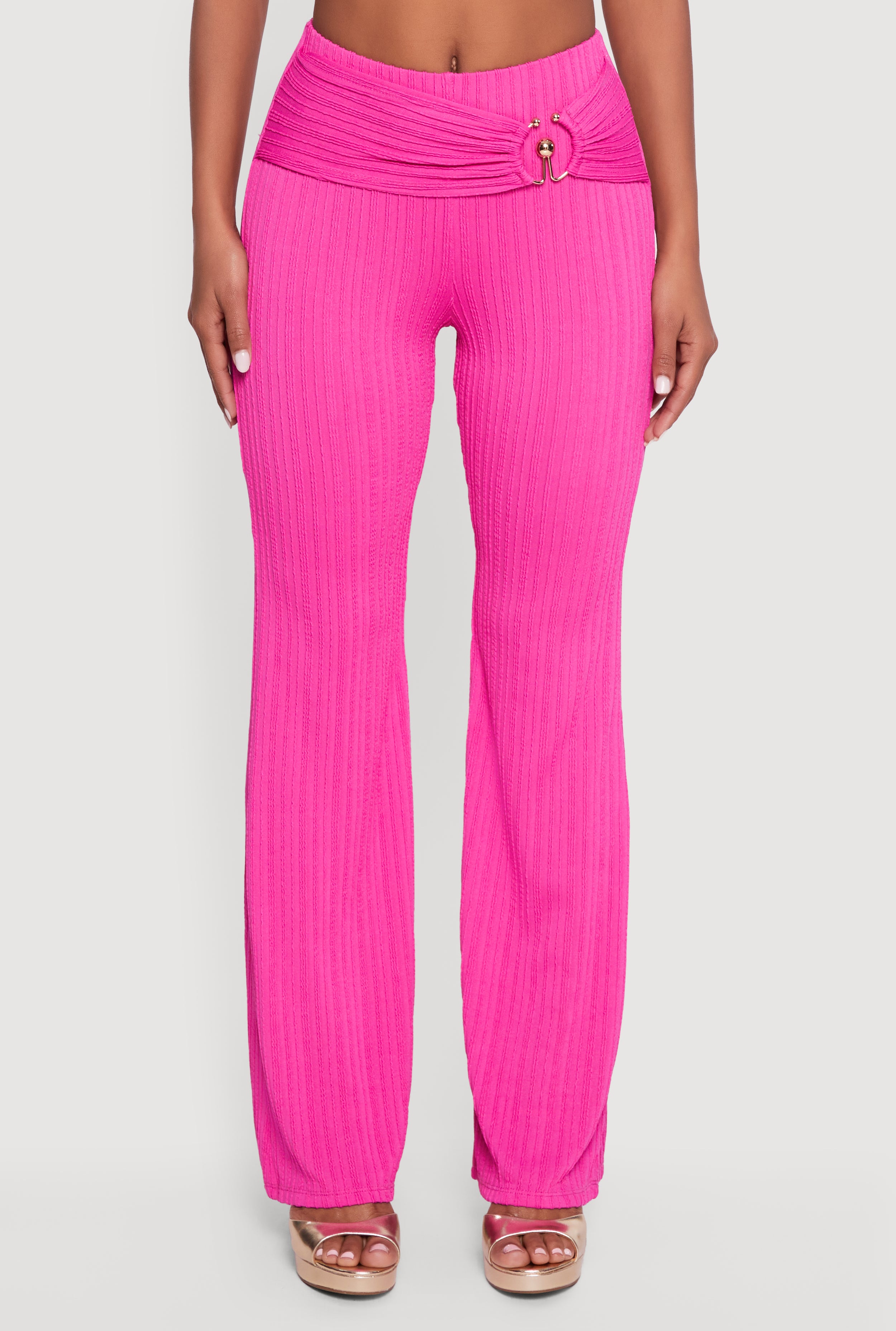 Step into the spotlight with these Metallic Detail Belted Front Flare Pants designed to elevate your night out look. Featuring a classic mid-rise fit and a flattering flare leg silhouette, these dressy pants combine ribbed and textured knit fabrics for a unique touch of shine and style. The belted front adds a trendy detail that cinches your waist, making these pants perfect for turning heads while staying comfortable. Whether you're hitting the dance floor or enjoying a chic dinner, these full-length flare pants bring effortless glam to your wardrobe.