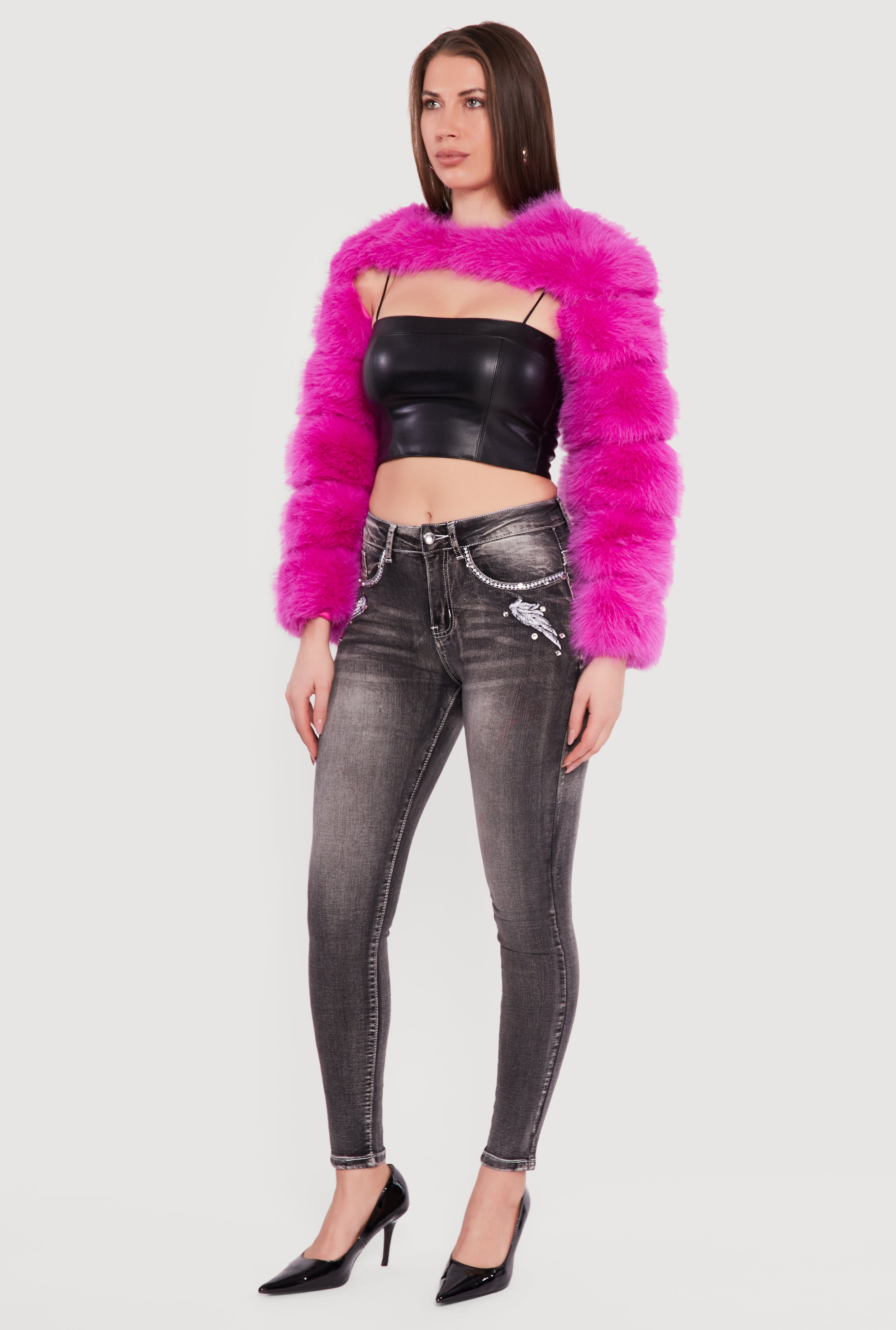 - Cropped length pairs perfectly with dresses and skirts