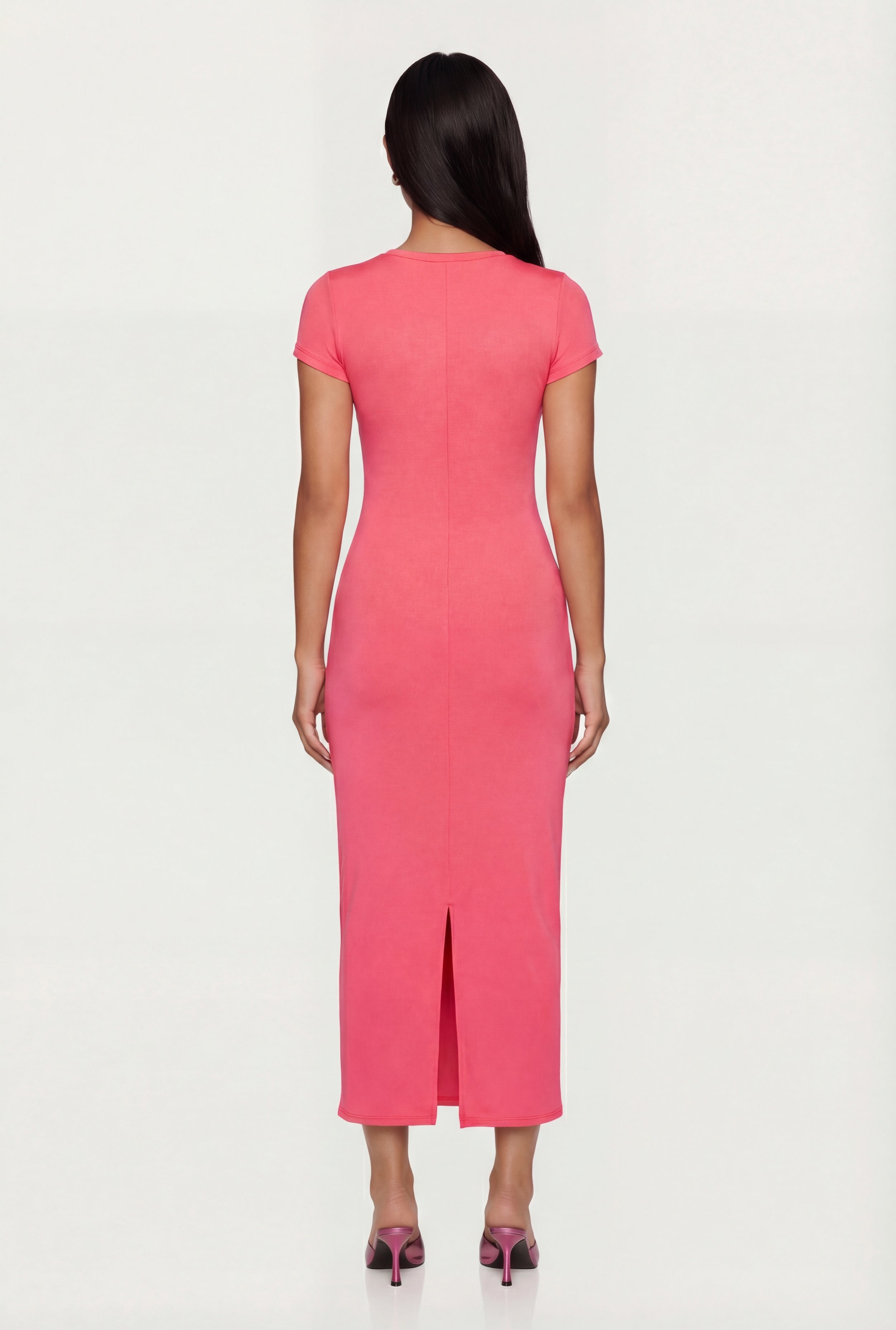 Short Sleeve Crew Neck Slit Back Maxi Dress