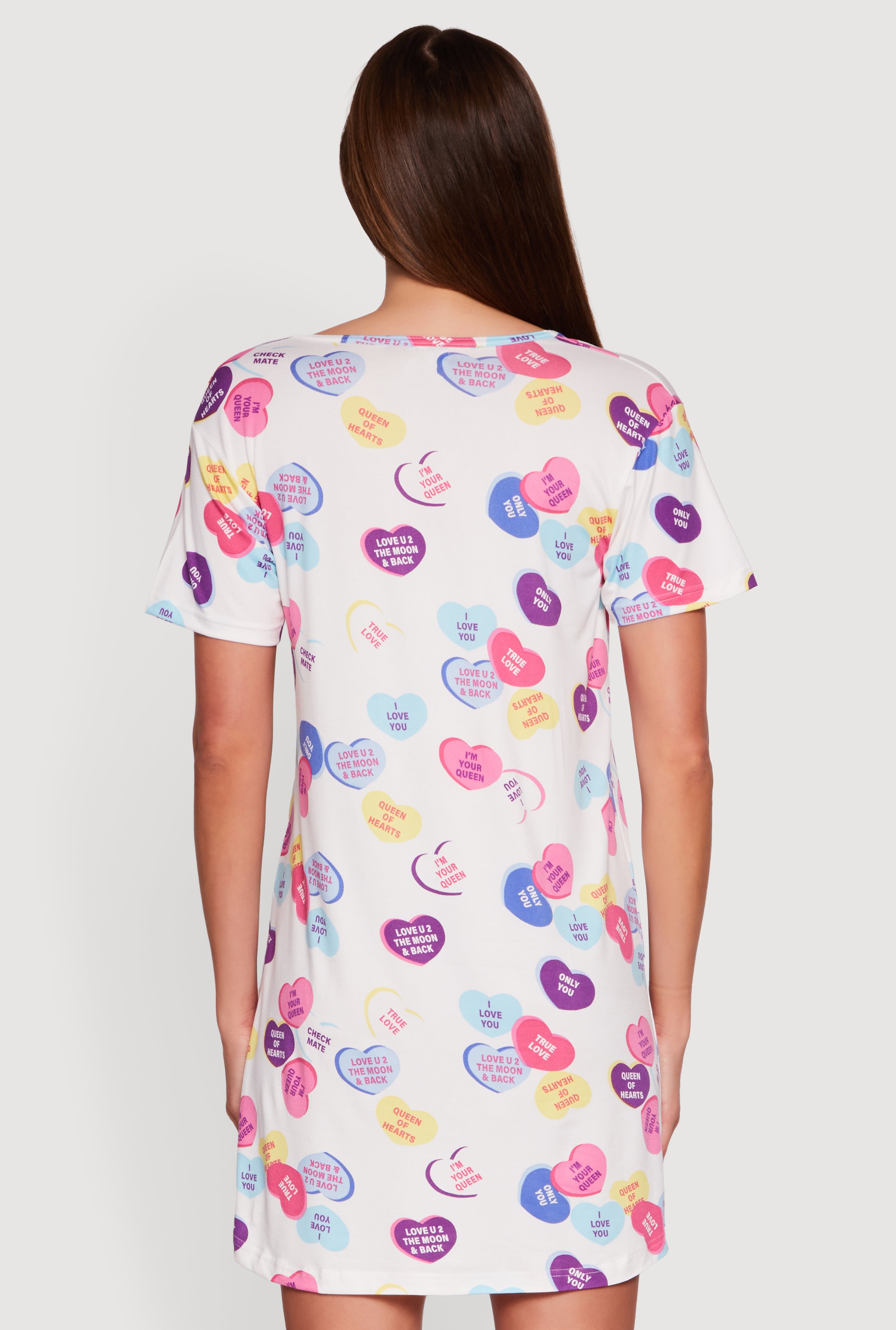 Slip into cozy confidence with the Im Your Queen Graphic Sleepshirt. Designed for ultimate comfort and effortless style, this classic fit sleep top features a flattering v-neck and short sleeves perfect for lounging or catching some Z's. The bold "I'm Your Queen" graphic adds a playful, empowering touch that makes bedtime a little more fun. Whether you’re winding down or just chilling at home, this printed pattern piece is your new go-to for relaxed vibes and easywear appeal.