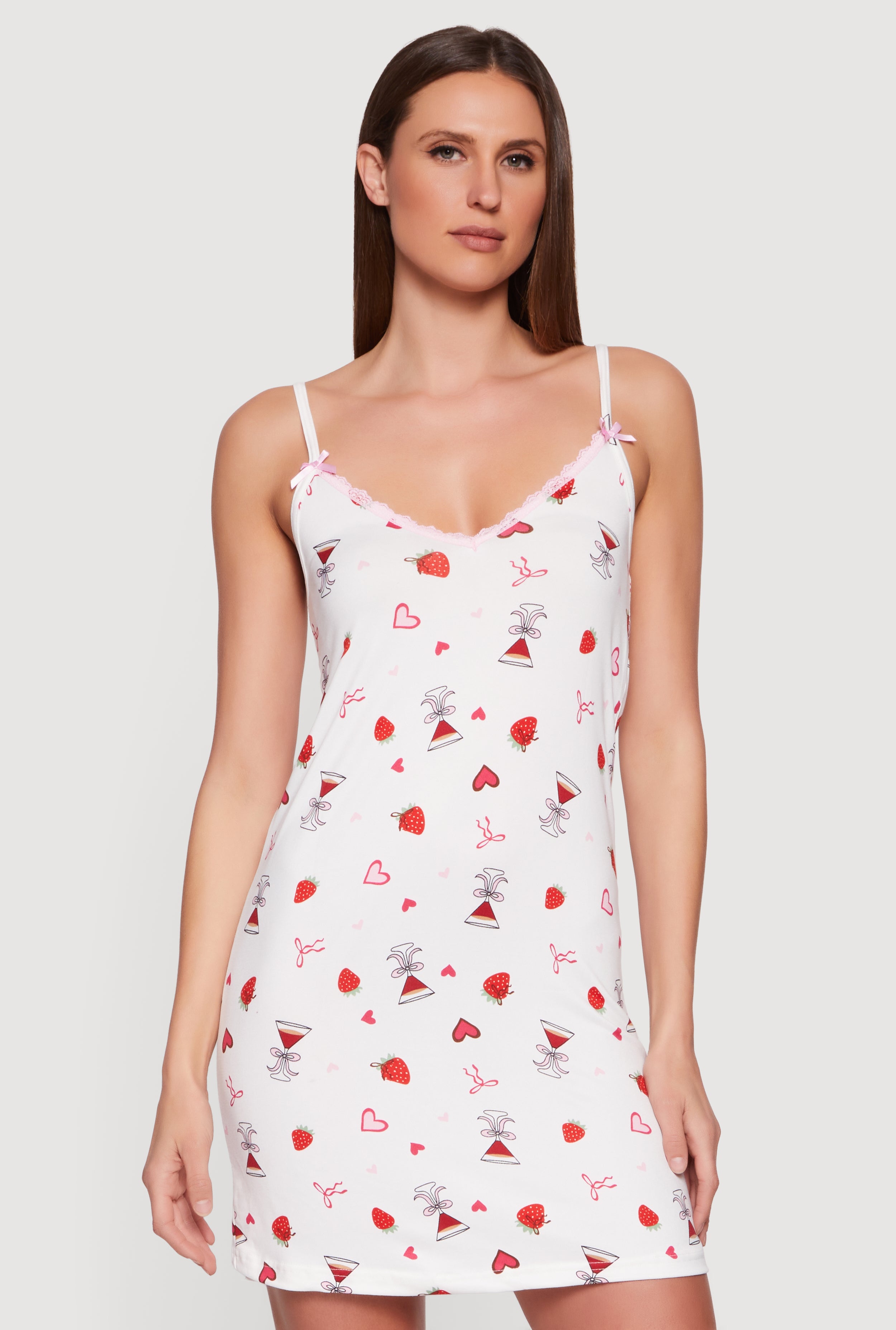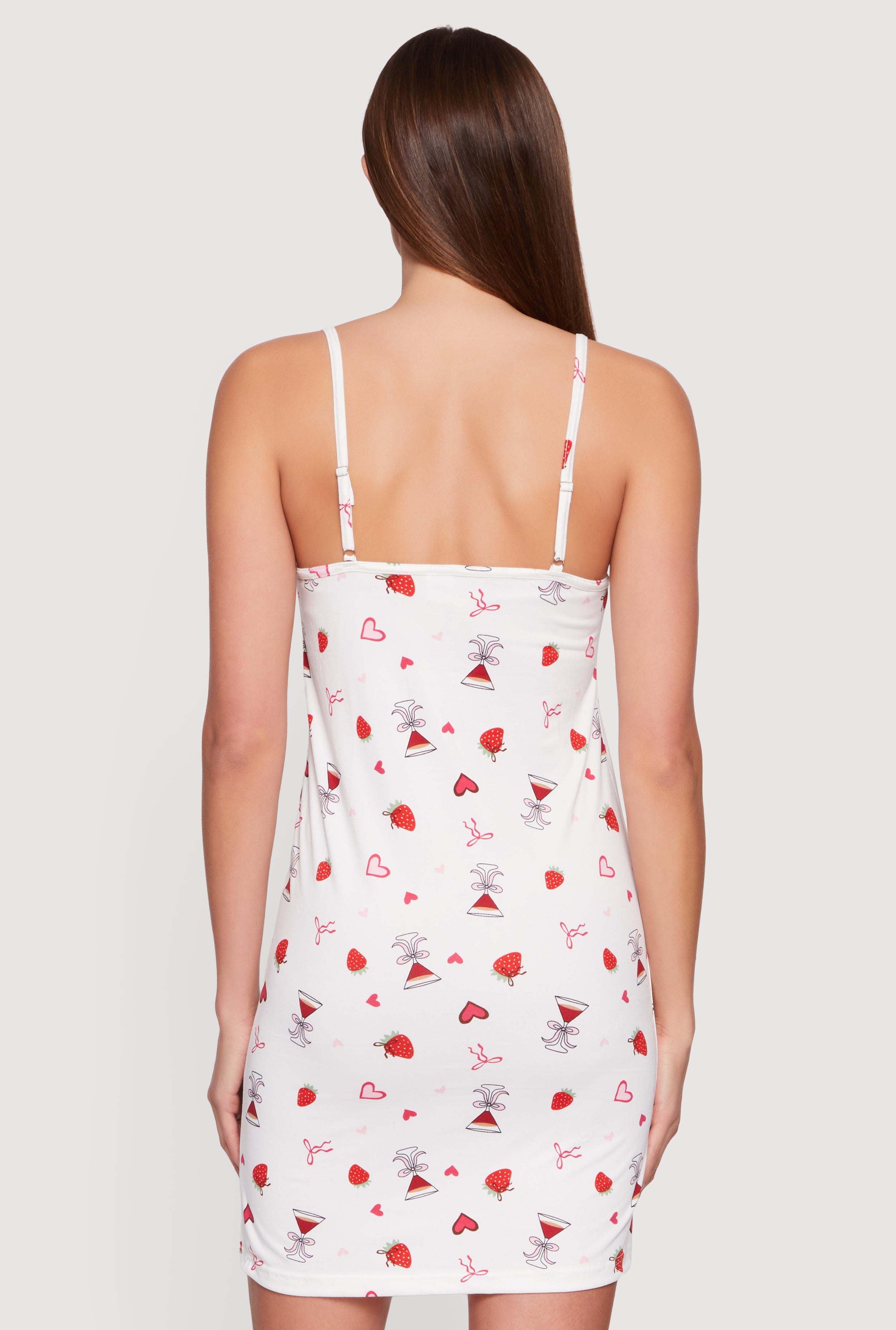 Slip into sweet dreams with the Strawberry Martini Print Cami Nightgown and Robe set. This playful two-piece features a flirty V-neck cami with adjustable straps, perfect for customizing your fit. The matching robe, complete with a tie waist belt and a 34 in. length, adds a cozy layer that’s as cute as it is comfortable. With charming strawberry martini and heart patterns, this sleeveless loungewear set brings a fun, fresh vibe to your nighttime routine.