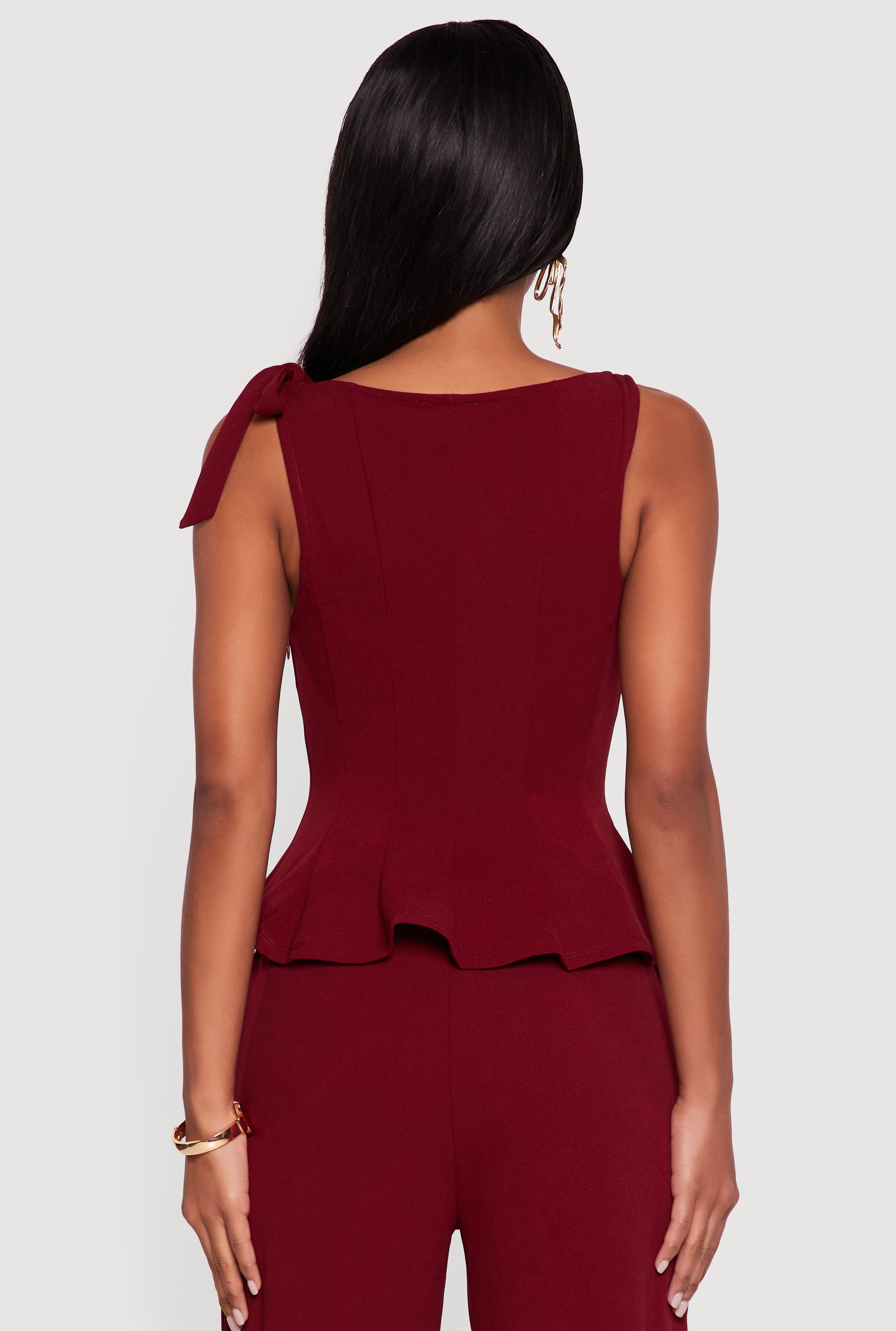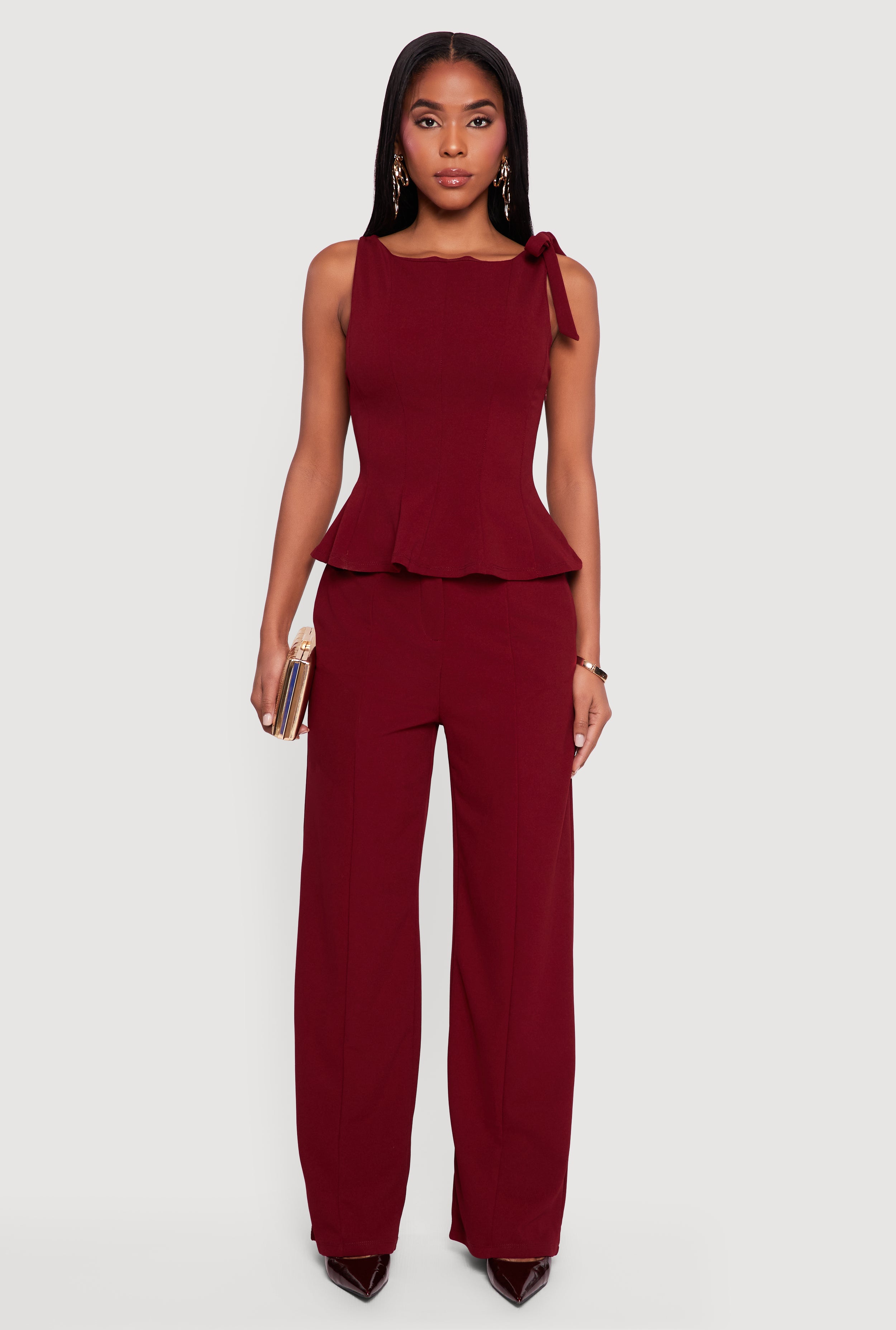 Step up your style game with this Bow Detail Sleeveless Boat Neck Peplum Top. Crafted from soft crepe knit, it features a timeless classic fit that flatters every figure. The elegant boat neckline and playful bow detail add a chic touch, while the peplum silhouette enhances your waist for a fun and flirty vibe. Perfect for nights out or parties, this top pairs effortlessly with your favorite jeans or skirts to create a standout look.