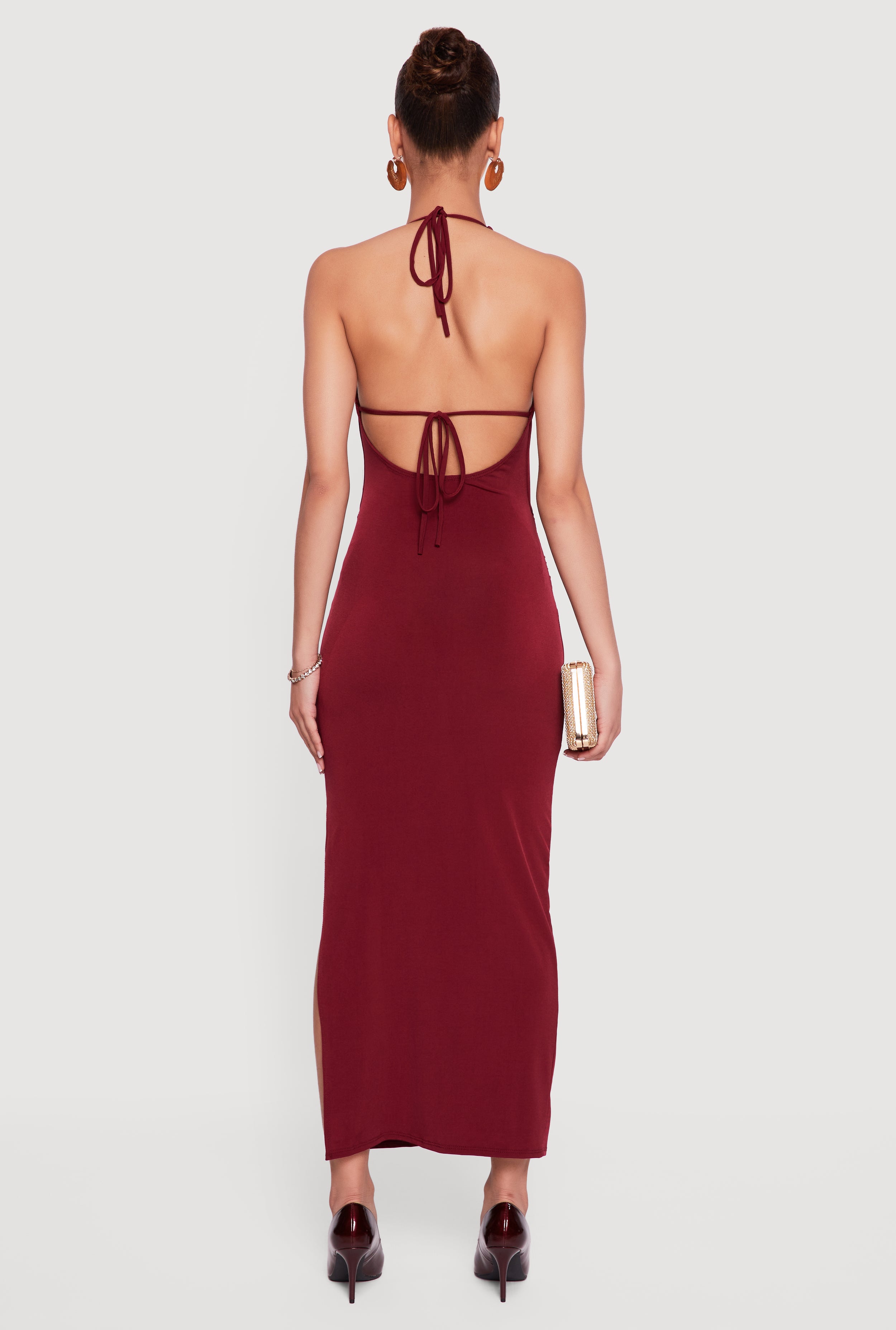 Step out in style with the Cowl Neckline Side Ruched Halter Dress, your new go-to for turning heads at every party and night out. This mid-length dress features a plunging cowl neck and side ruching that flatters your curves effortlessly. The open back with a chic tie-back strap adds a flirty touch while the crepe knit fabric keeps you comfortable and confident all evening long. Perfect for birthdays, cocktail parties, and any dressy occasion where you want to shine.