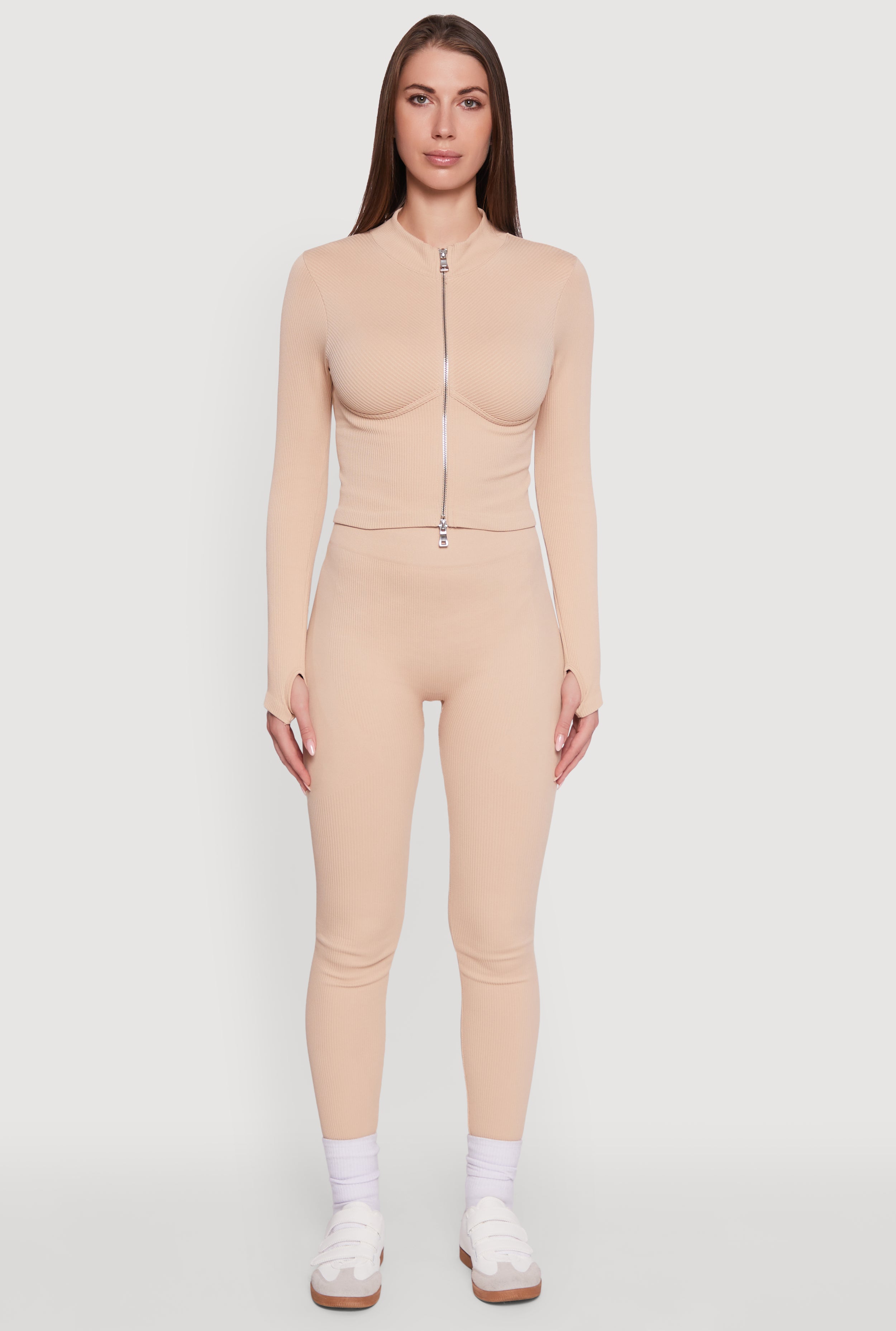 Seamless Ribbed Bustier Detail Cropped Track Jacket