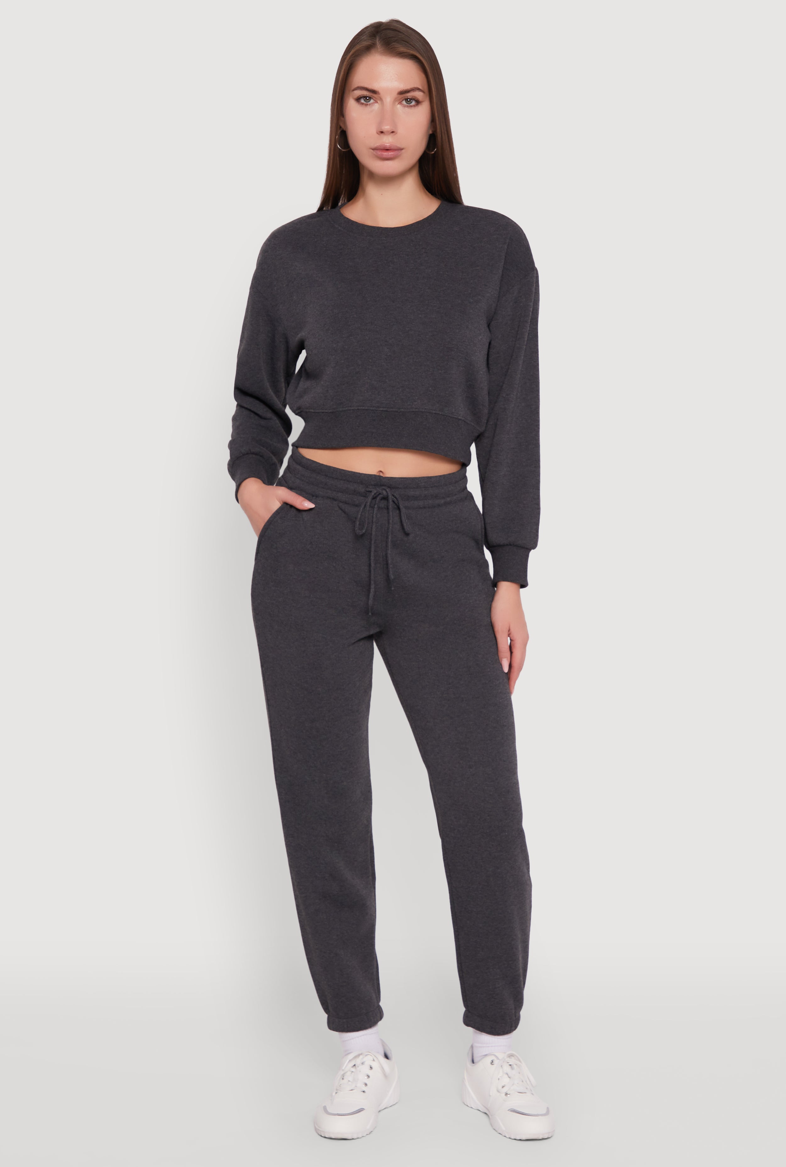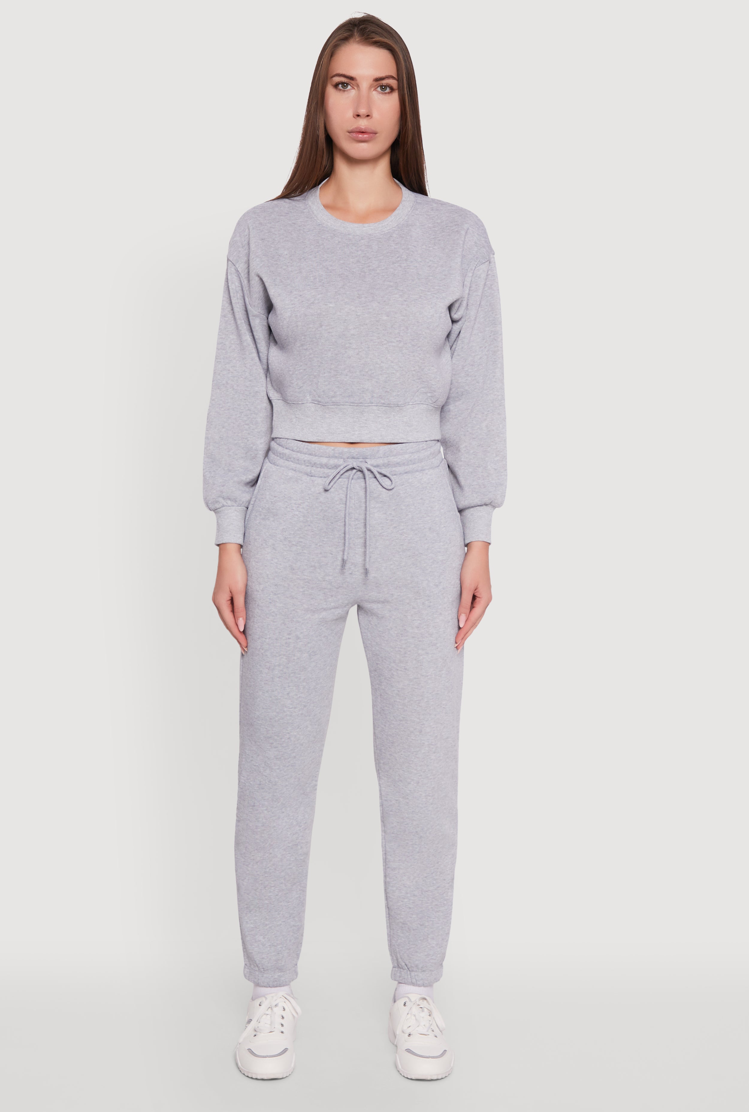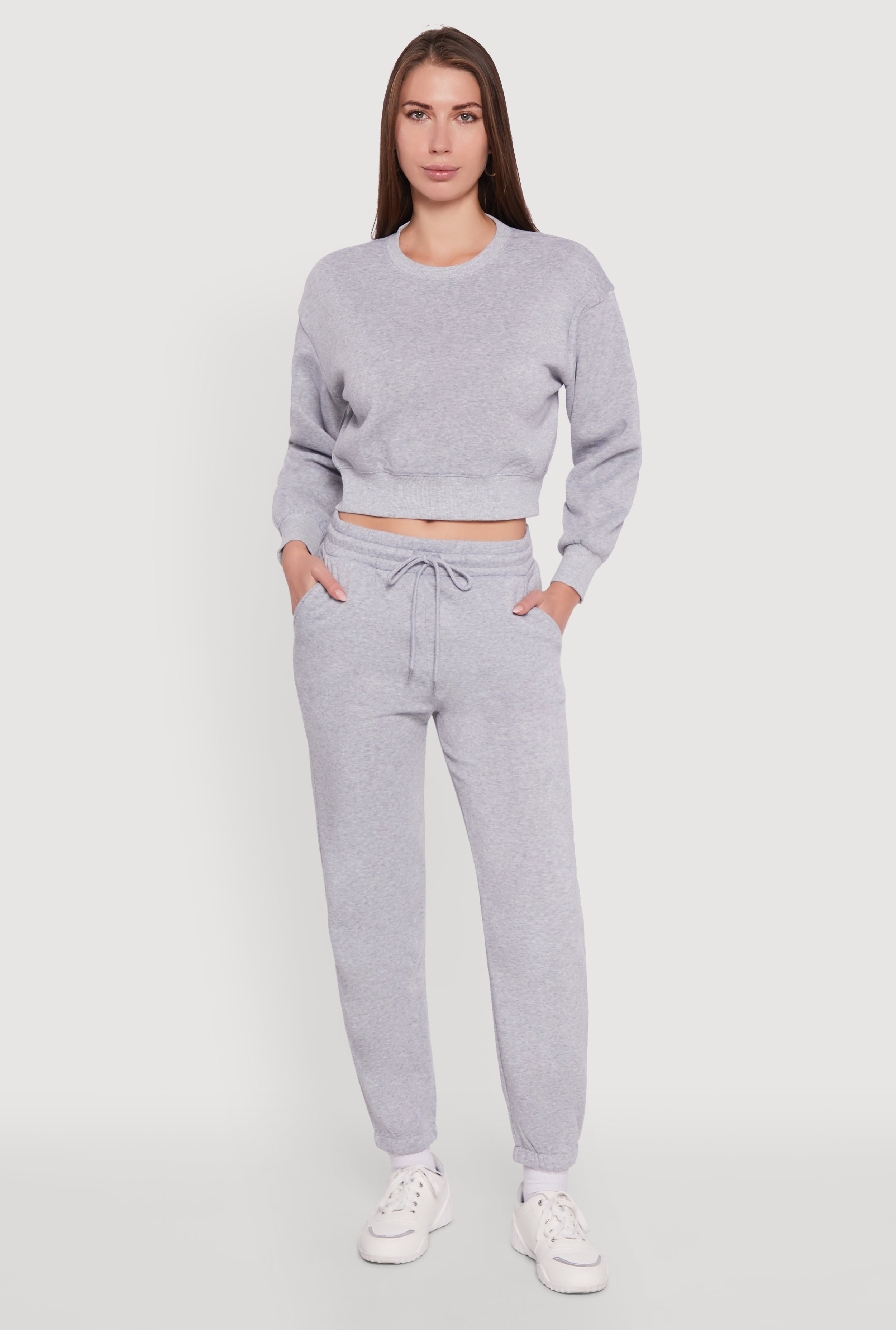 Fleece Long Sleeve Cropped Pullover Sweatshirt