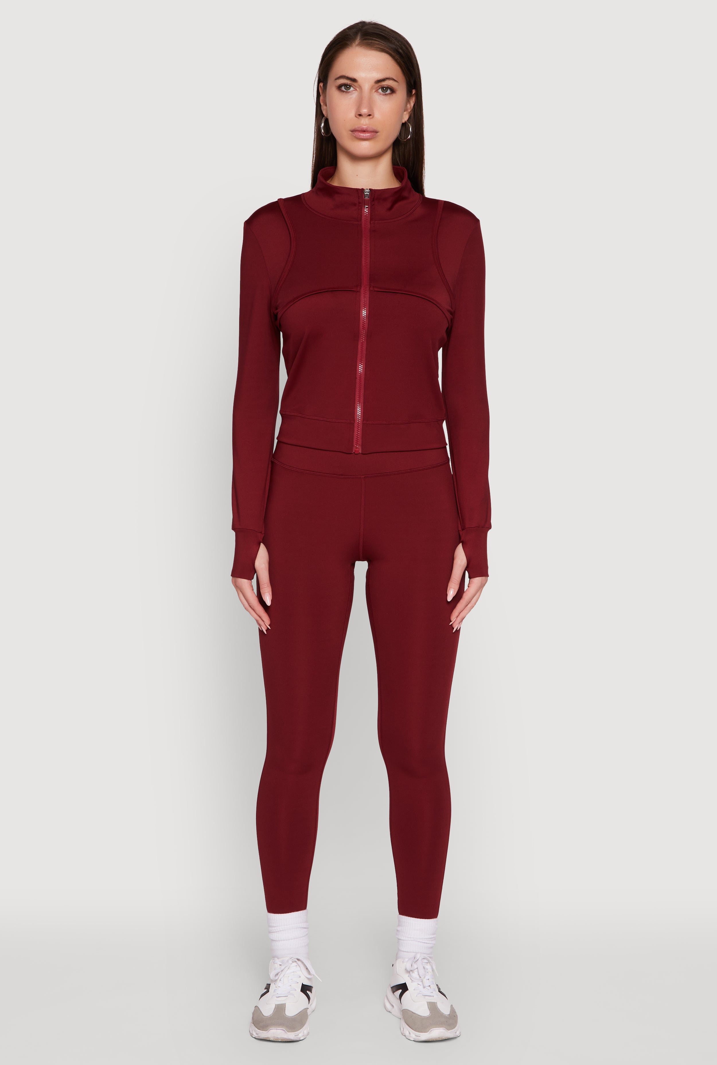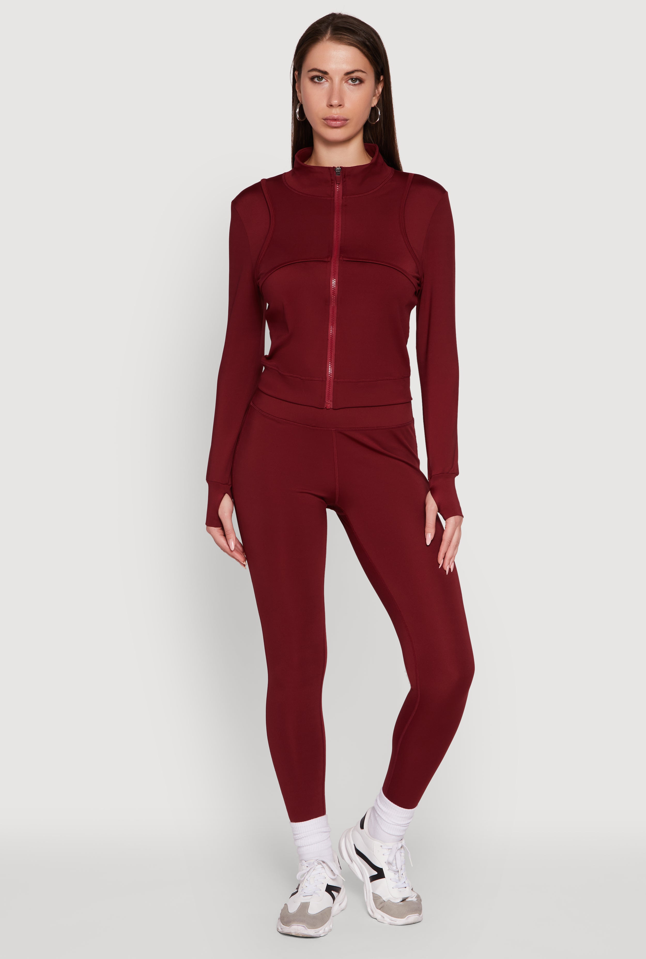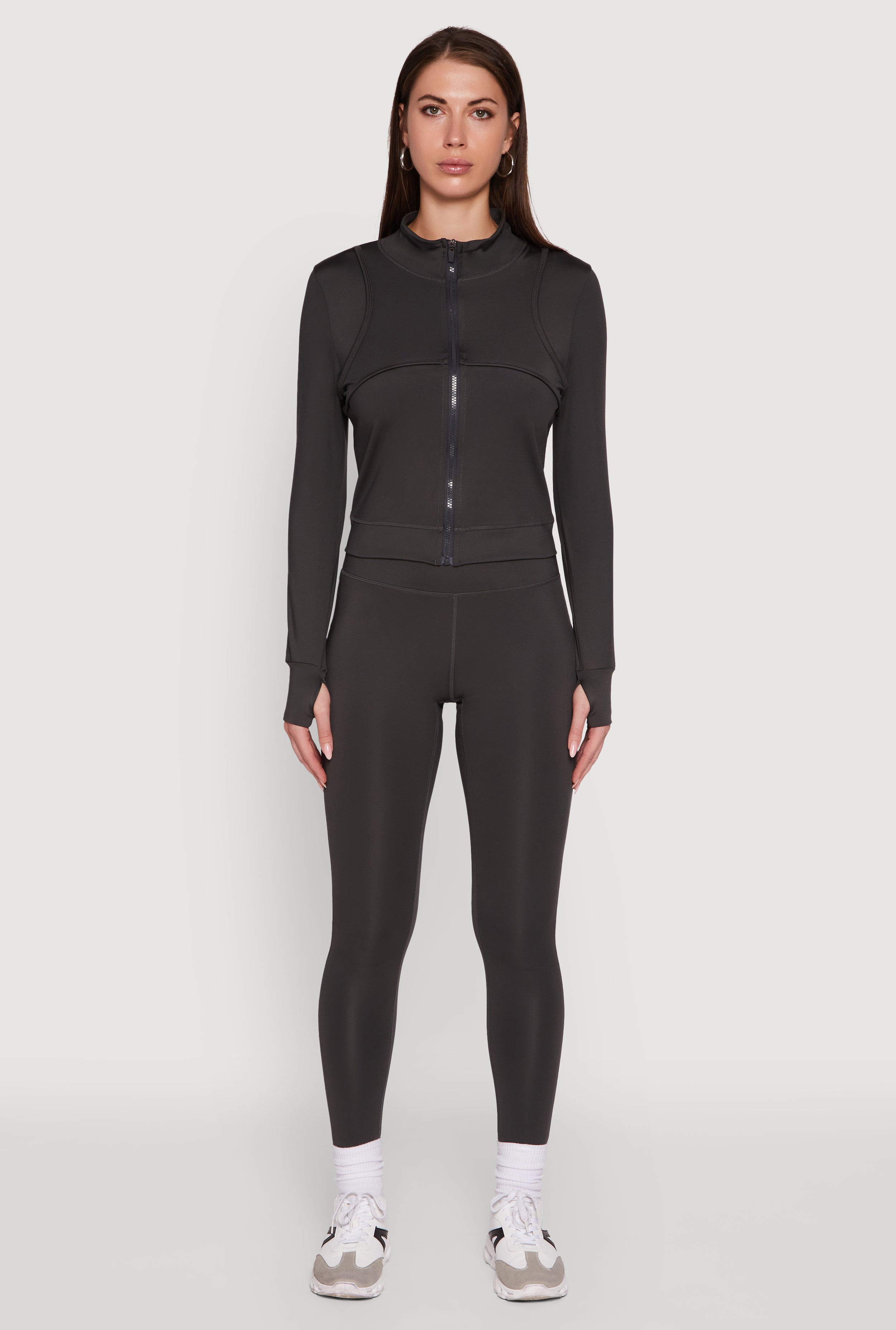 Mock Neck Long Sleeve Activewear Jacket with Thumb Holes