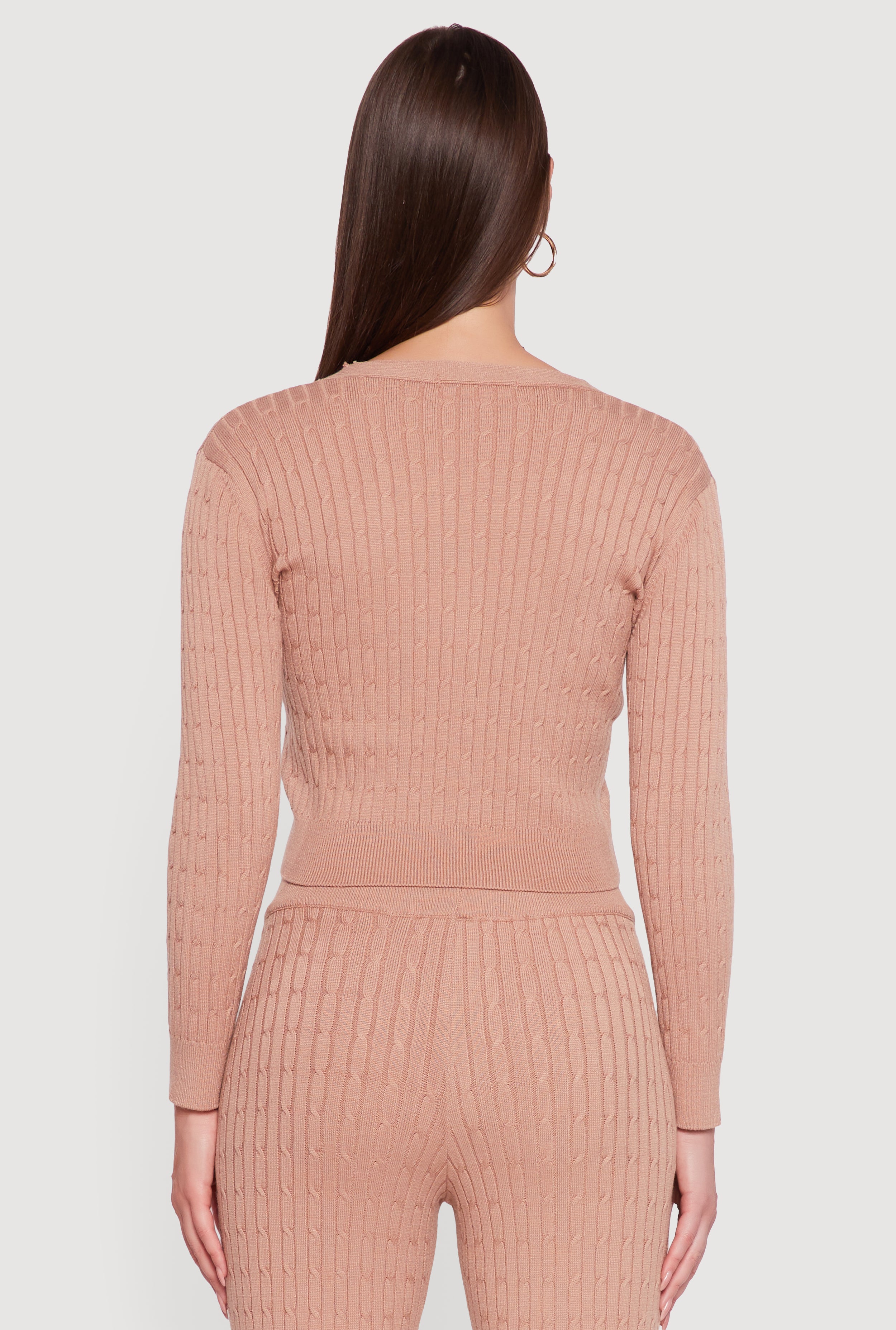 Cozy up your casual looks with this Cable Knit Cropped Button Front Cardigan from Love University. Featuring a timeless classic fit and a flattering V-neckline, this long sleeve cardigan brings a fresh twist to your everyday wardrobe. The soft cable knit texture and cropped length make it perfect for layering over your favorite tops or dresses, adding just the right amount of warmth and style. Whether you're heading out for coffee or chilling with friends, this solid-colored cardigan is your new go-to piece for effortless cool.