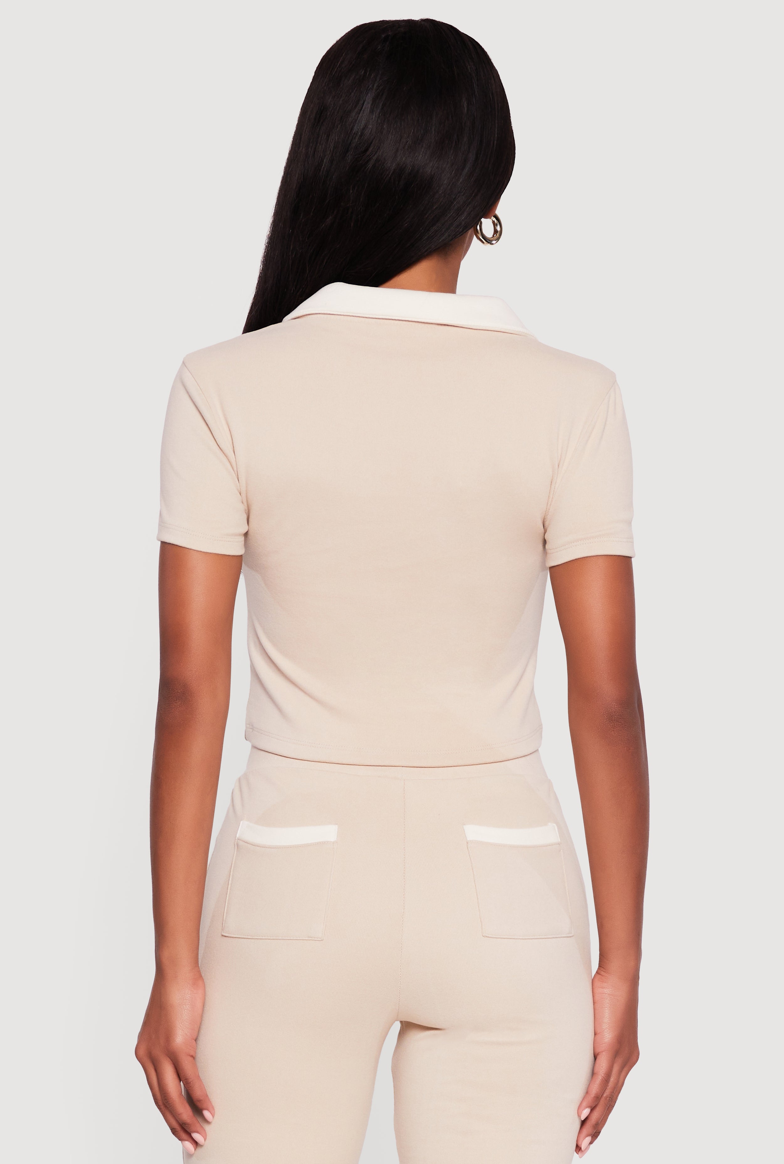 - Short sleeves keep the look casual and versatile for everyday wear