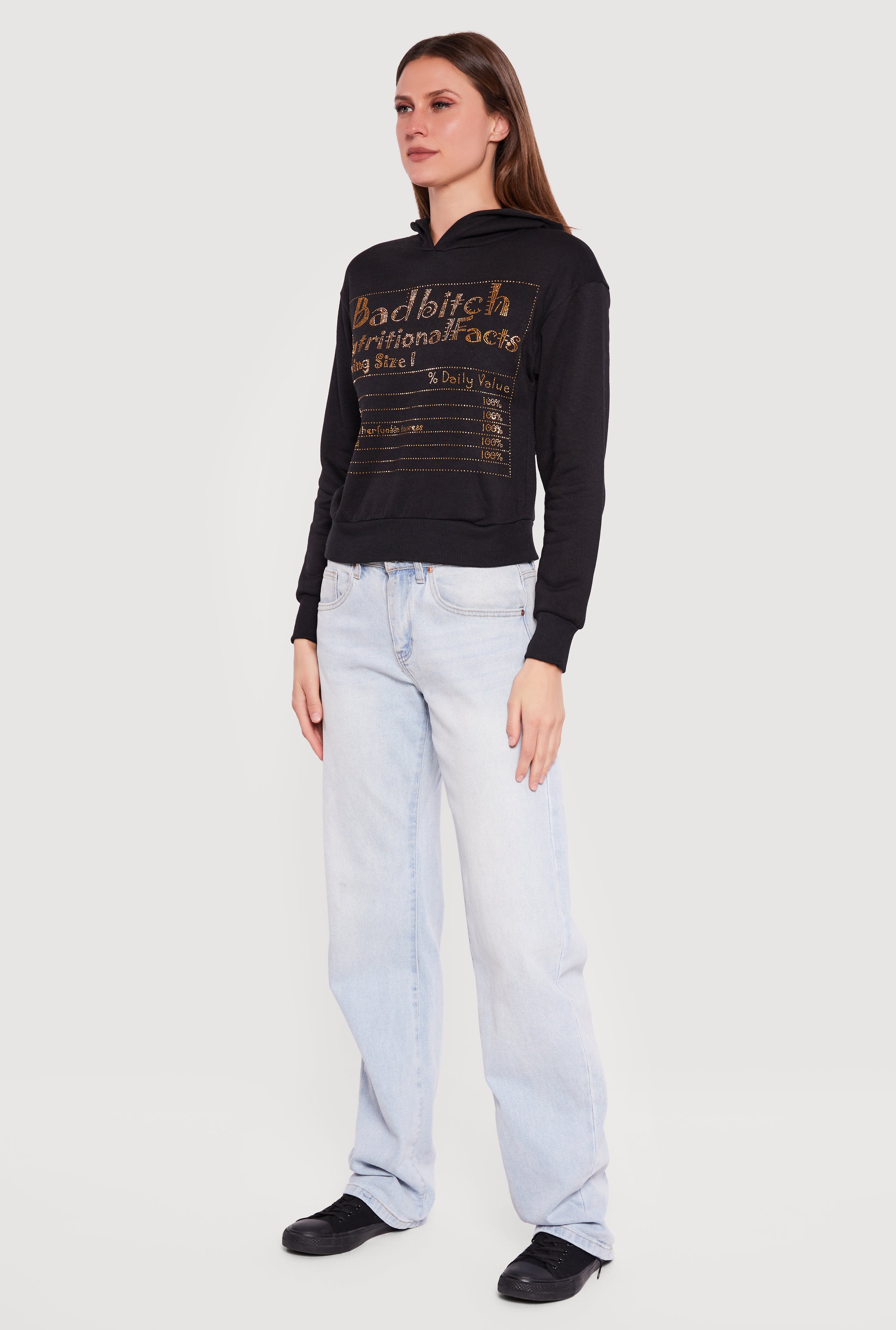 - Bold "Bad Bitch Nutritional Facts" graphic with rhinestone studs for extra edge
