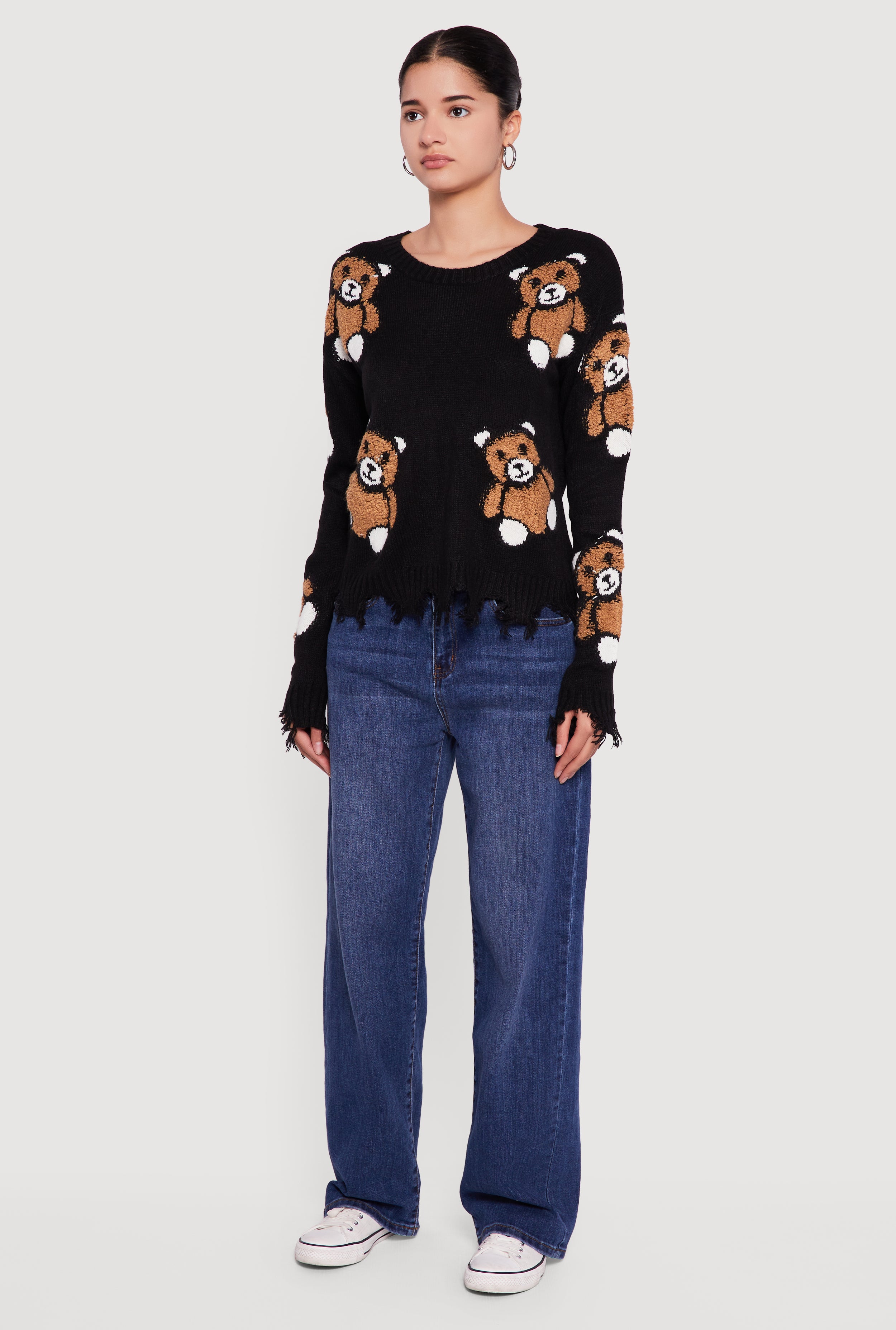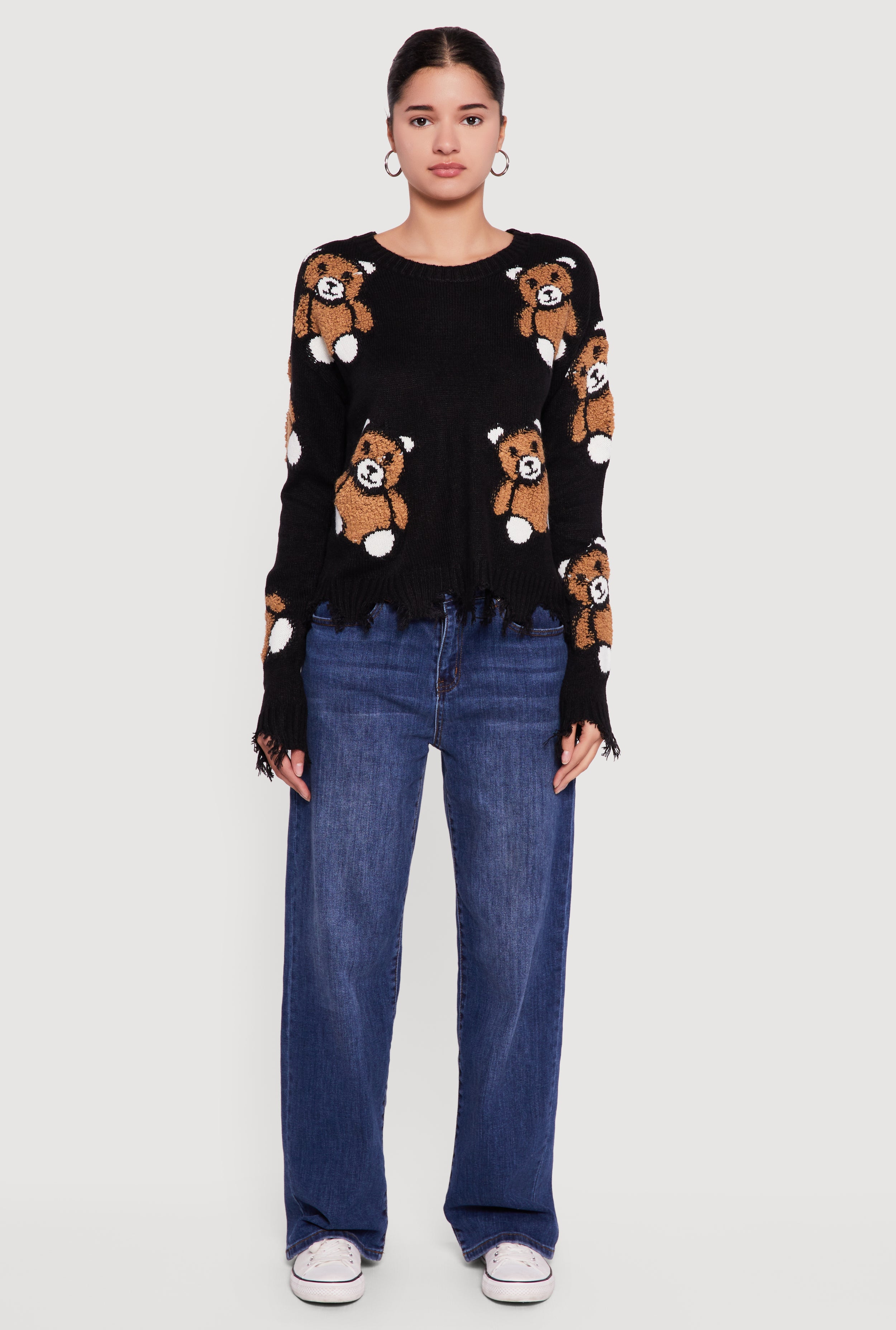 Stay cozy and effortlessly cool in this Boucle Teddy Bear Distressed Long Sleeve Crew Neck Sweater. Made from soft boucle fabric, this classic fit pullover features a trendy distressed look that adds a touch of edge to your casual wardrobe. Perfect for layering or wearing on its own, it’s your new go-to sweater for chill days and laid-back vibes.
