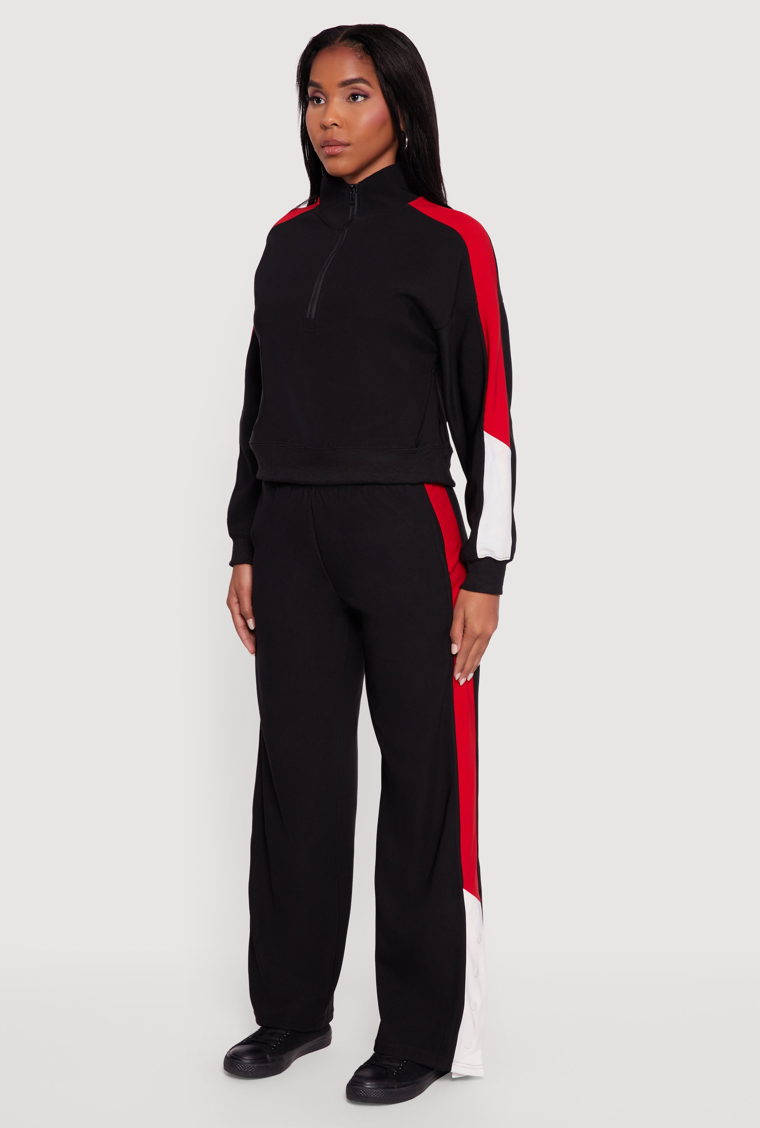 Step up your casual game with this Color Blocked Half Zip Mock Neck Active Top. Designed for those who want to blend sporty vibes with everyday comfort, this classic fit pullover features a trendy half zip front and a chic mock neck to keep you looking fresh from morning errands to evening hangouts. The long blouson sleeves add a playful touch, while the color blocked pattern keeps things bold and fun. Perfect for athleisure lovers who want to stay stylish without sacrificing comfort.