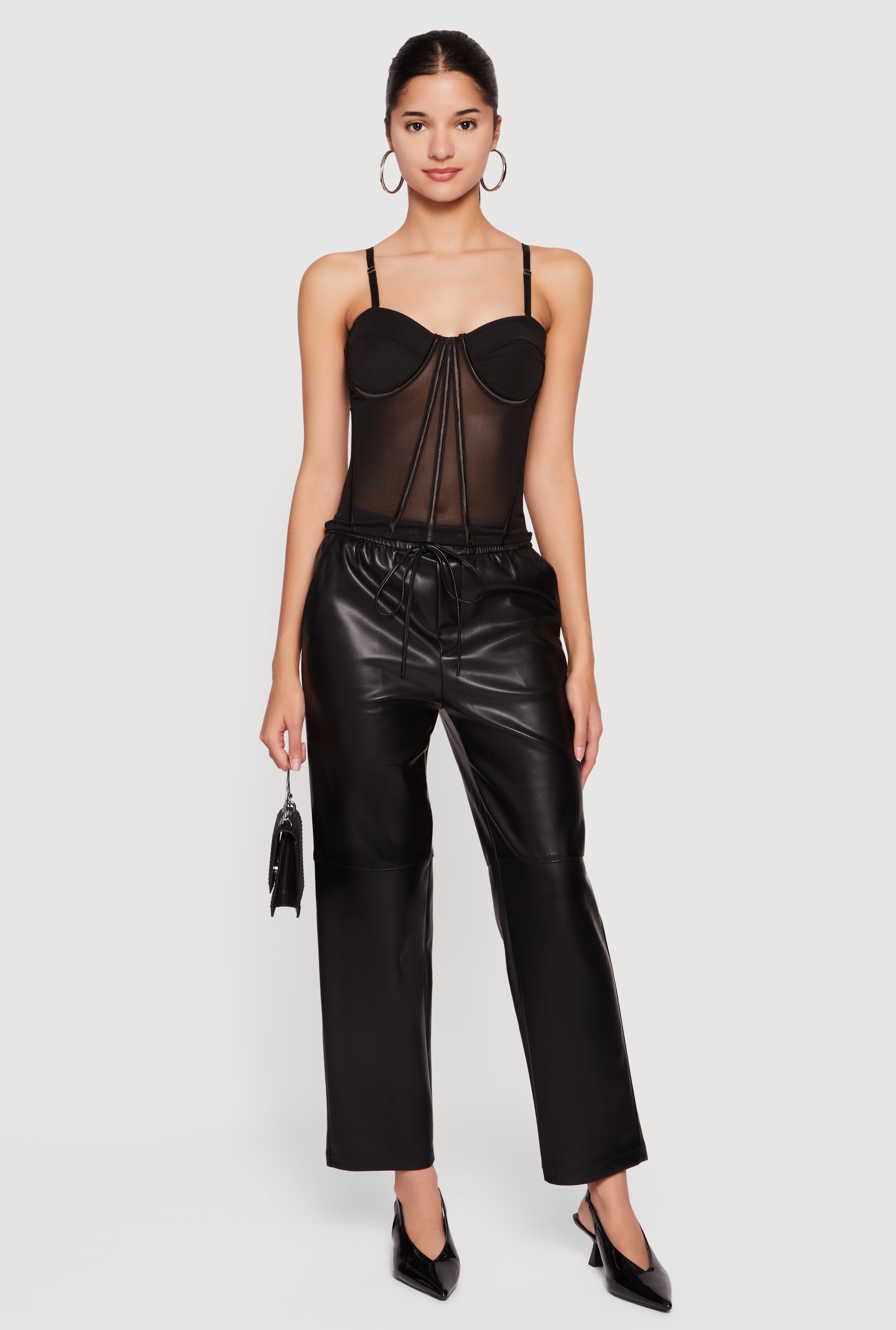 - Sheer mesh fabric adds a touch of sexy sophistication