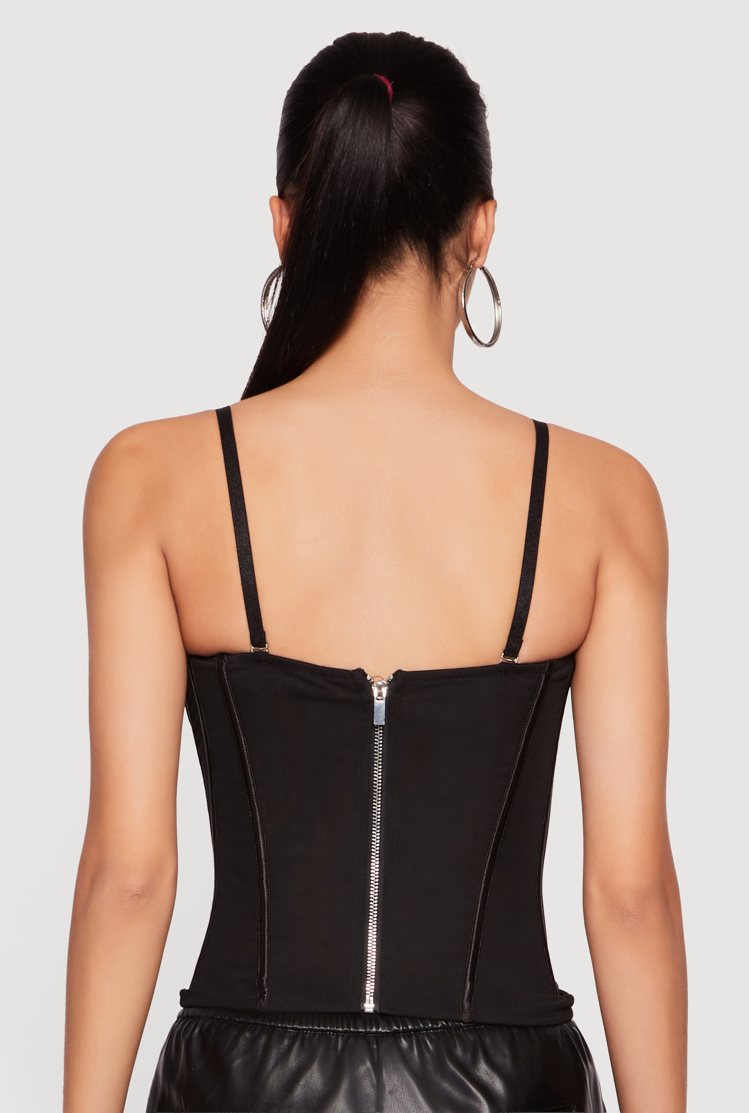 Turn heads effortlessly in this Convertible To Strapless Boning Detail Mesh Bustier Top from Love University. Designed to hug your curves with a sleek, shaped silhouette, this mesh bustier features a sweet heart neckline and underwire support for a flattering fit that stays put. Whether you rock the adjustable straps or go strapless, the zipper back closure makes it easy to slip on and off. Perfect for casual days, parties, or special nights out, this top adds a flirty and edgy vibe to any outfit.